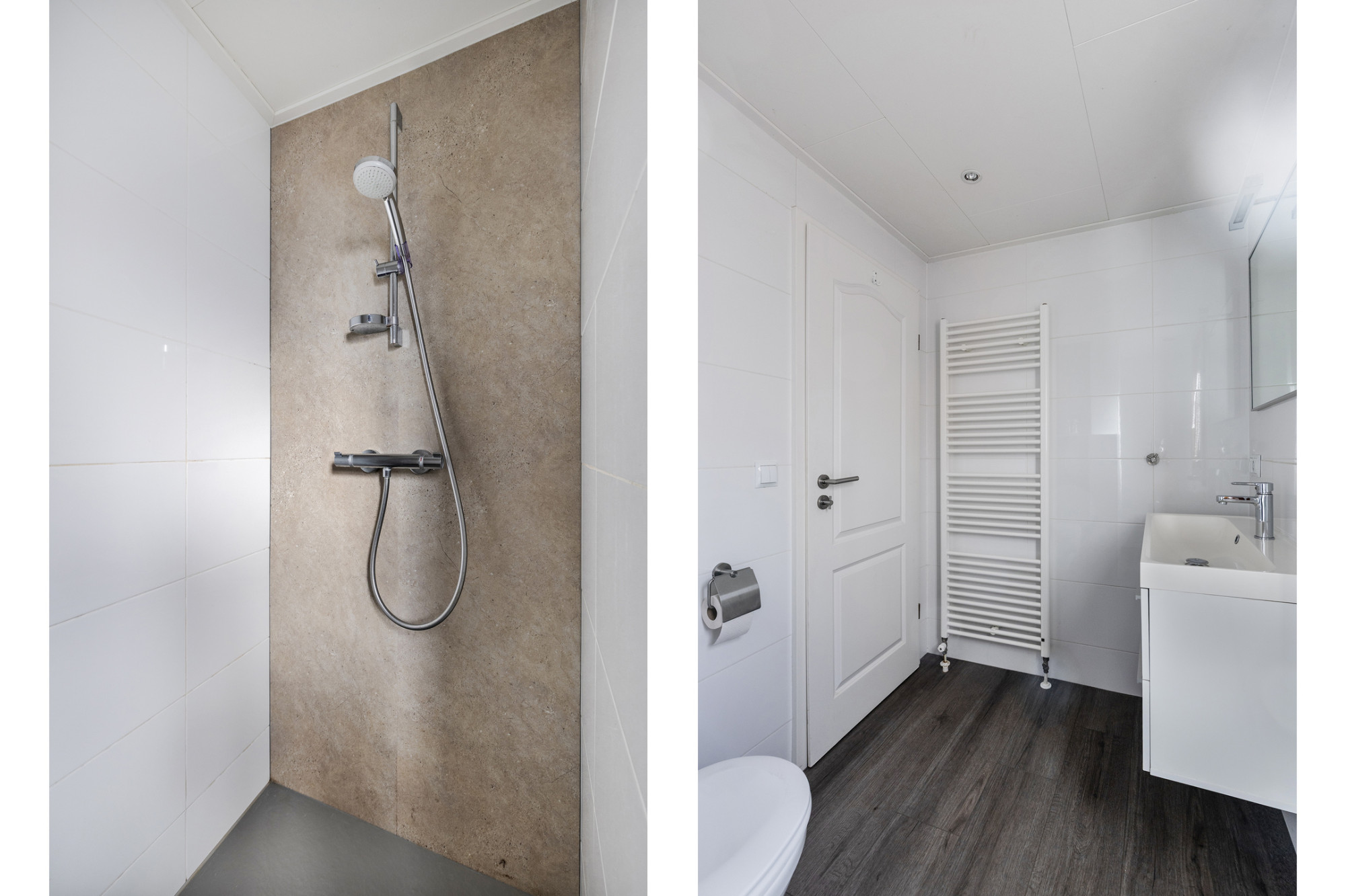 De twee badkamers zijn geheel betegeld en voorzien van een inloopdouche, wastafelmeubel en een toilet en een designradiator. Ventilatie kan via de mechanische ventilatie en een raam voor natuurlijke ventilatie.
