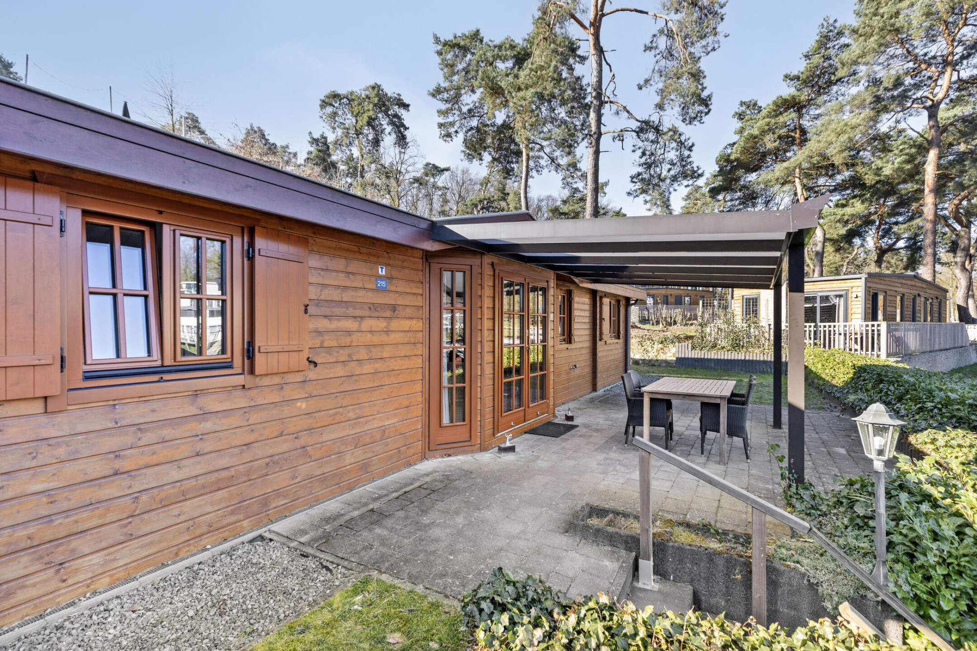 Op een rustige locatie op Resort Brunssumerheide in Brunssum staat deze mooie houten recreatiewoning. Een fijne plek vlakbij het water en de Brunssumerheide. De vrijstaande recreatiewoning nr.215 type Boekhorstlinde is gelegen op een eigen perceel van 200 m² (eigen grond) en beschikt over een tuin met privacy, bestraat terras aan de voorkant, gedeeltelijk overkapt en een klein gazon.