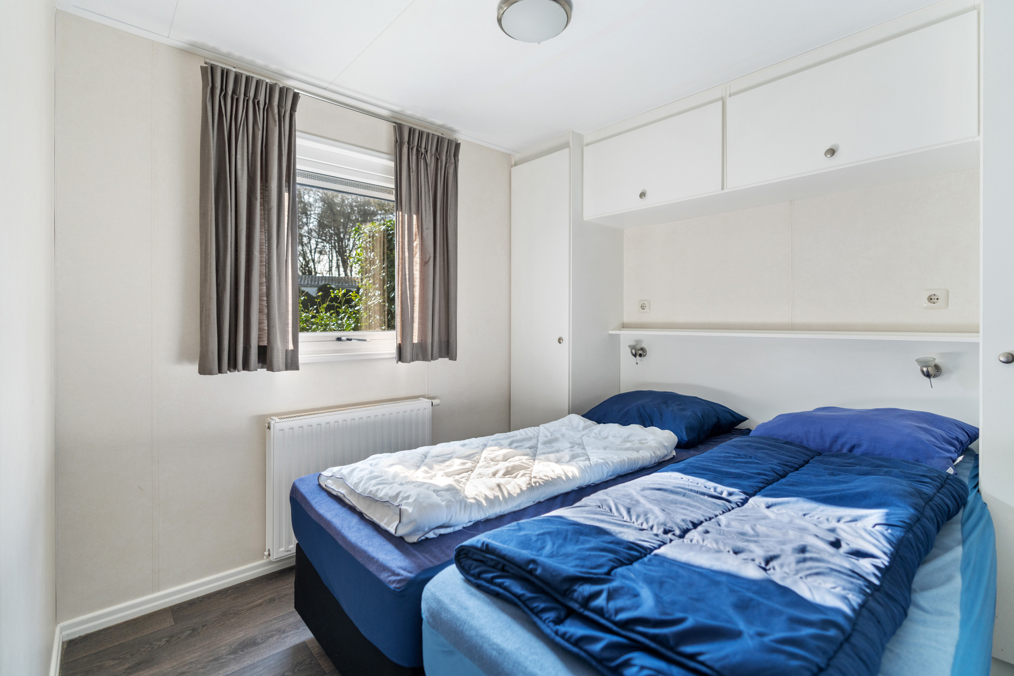 De bungalow beschikt over twee comfortabele slaapkamers, beide met een fijn formaat. De eerste slaapkamer heeft een afmeting van 2,62 m bij 2,66 m, ideaal als hoofdslaapkamer. De tweede slaapkamer meet 2,08 m bij 2,62 m en biedt voldoende ruimte voor gasten of een extra familielid.