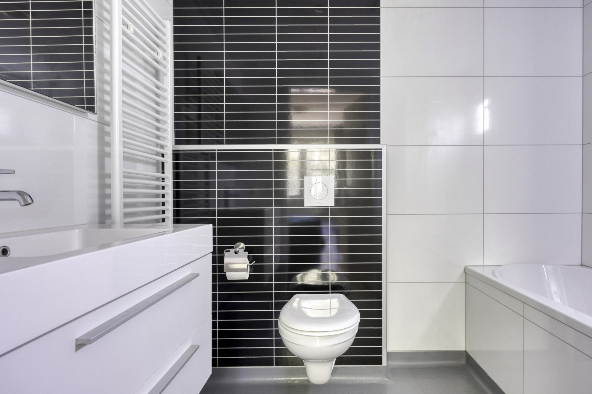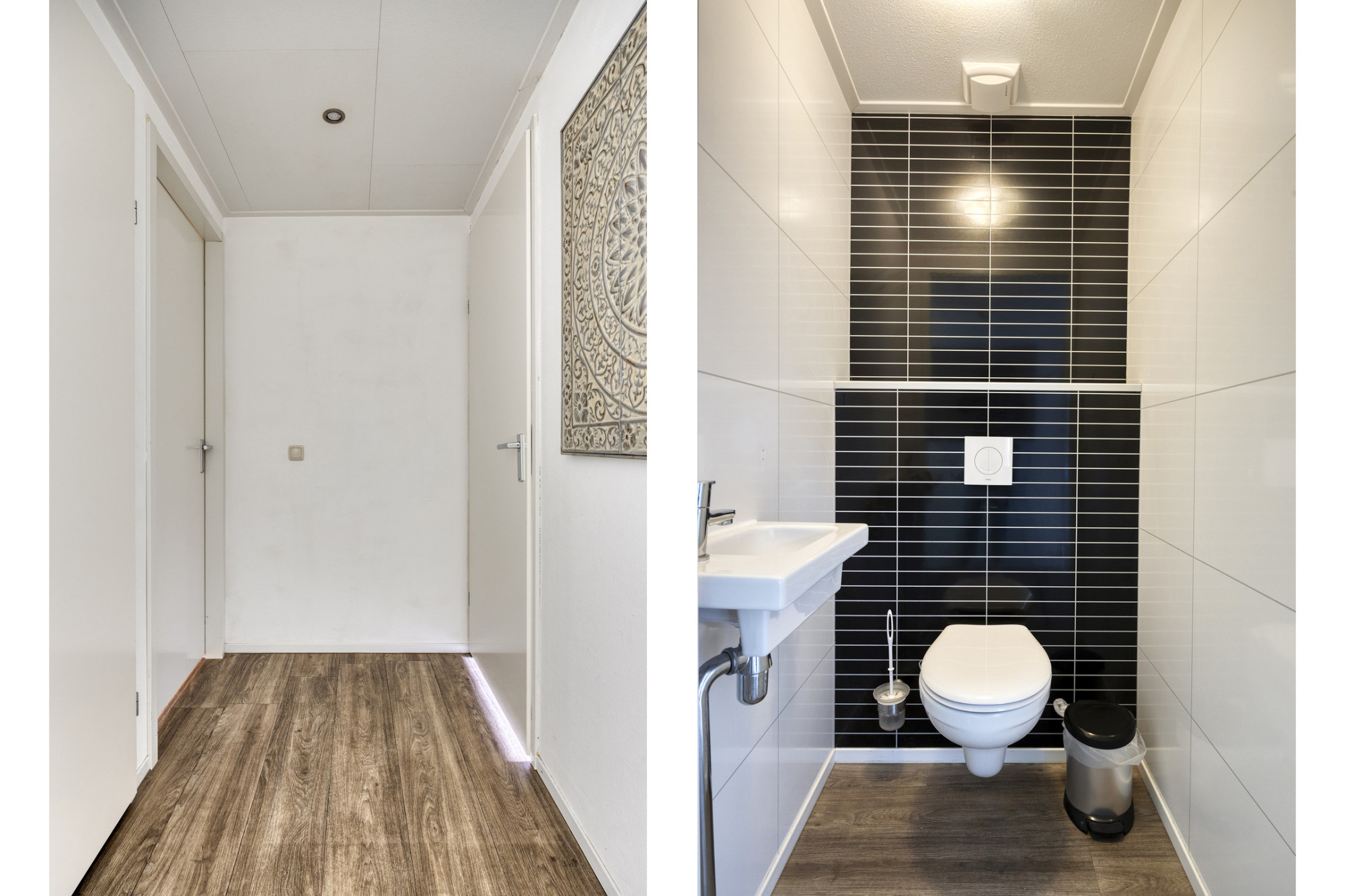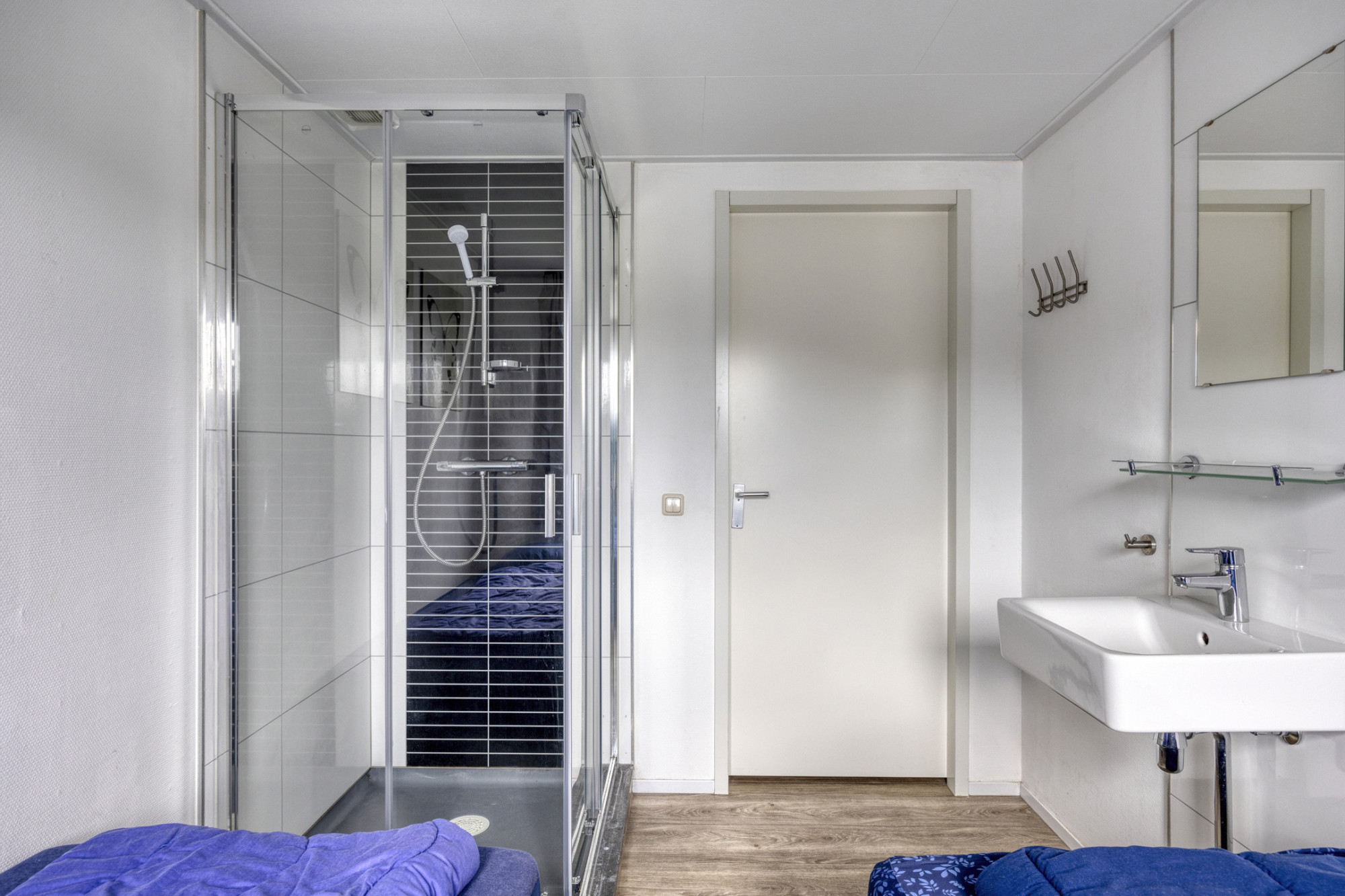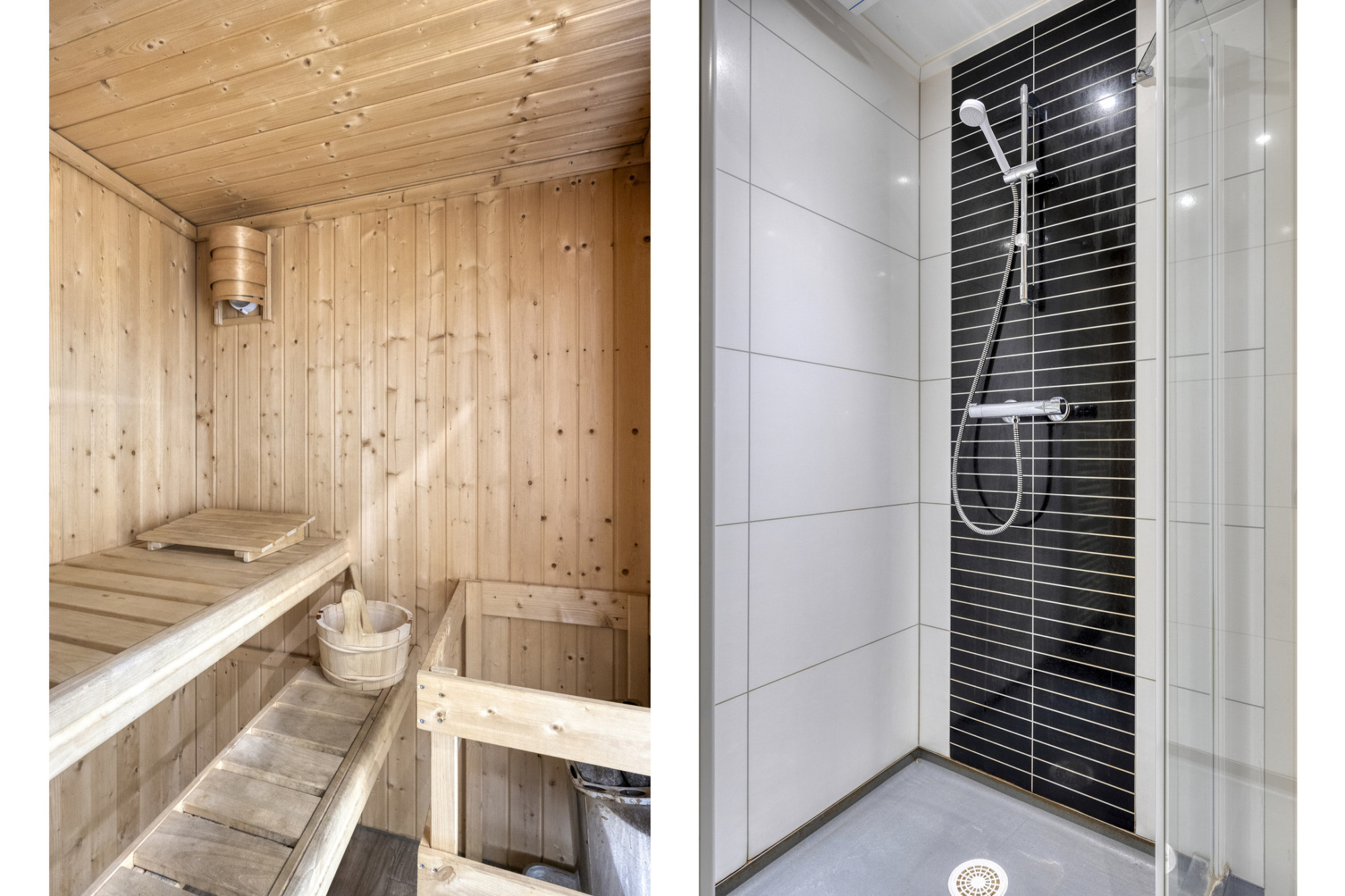 De badkamers zijn geheel betegeld en voorzien o.a. van een inloopdouche, wastafelmeubel en een toilet en een badkamer met bad en een designradiator. Op de eerste verdieping bevindt zich tevens de separate saunaruimte met douche was gelegenheid.