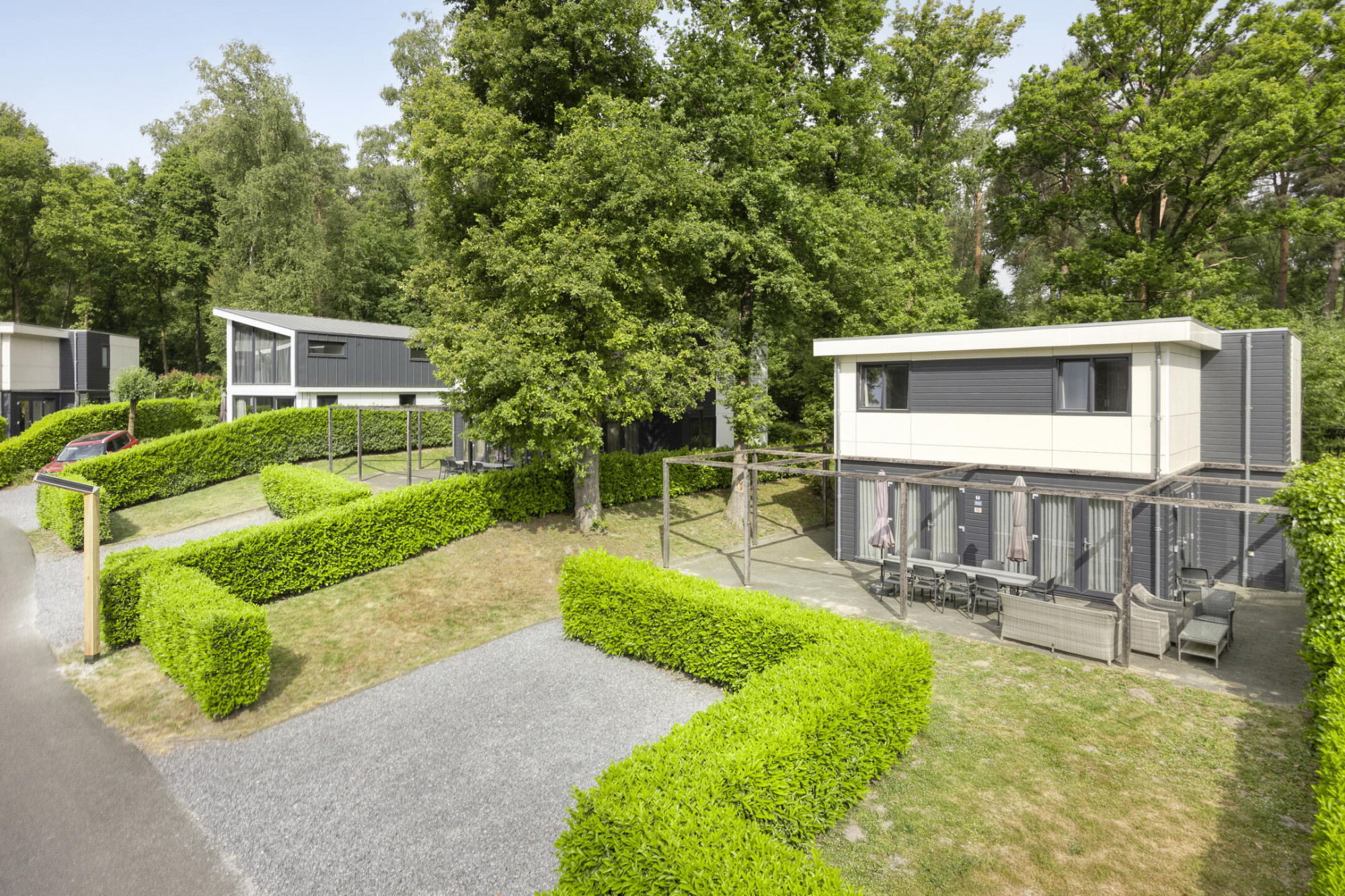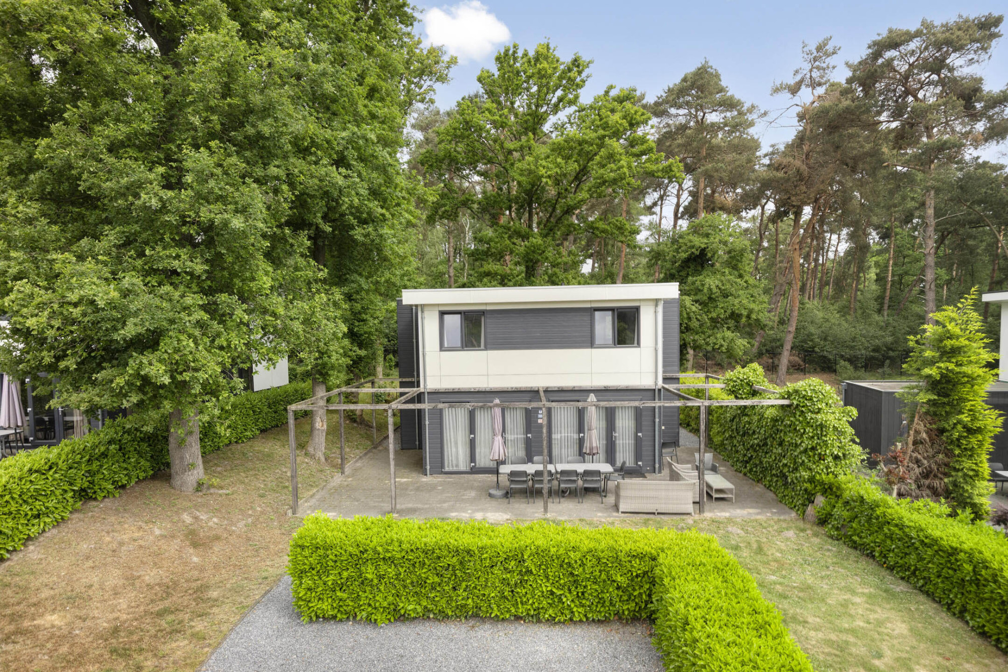 De recreatiewoning is op het prachtige hoog gedeelte van het park gelegen met prachtig uitzicht en met oog voor de rust. Het geheel is omsloten tuin door meerdere hagen. Daarnaast is de tuin voorzien van gazon, diverse sierbeplanting en een heerlijk terras aan de achterzijde en aan de voorzijde op het zuidoosten een plek om te genieten!