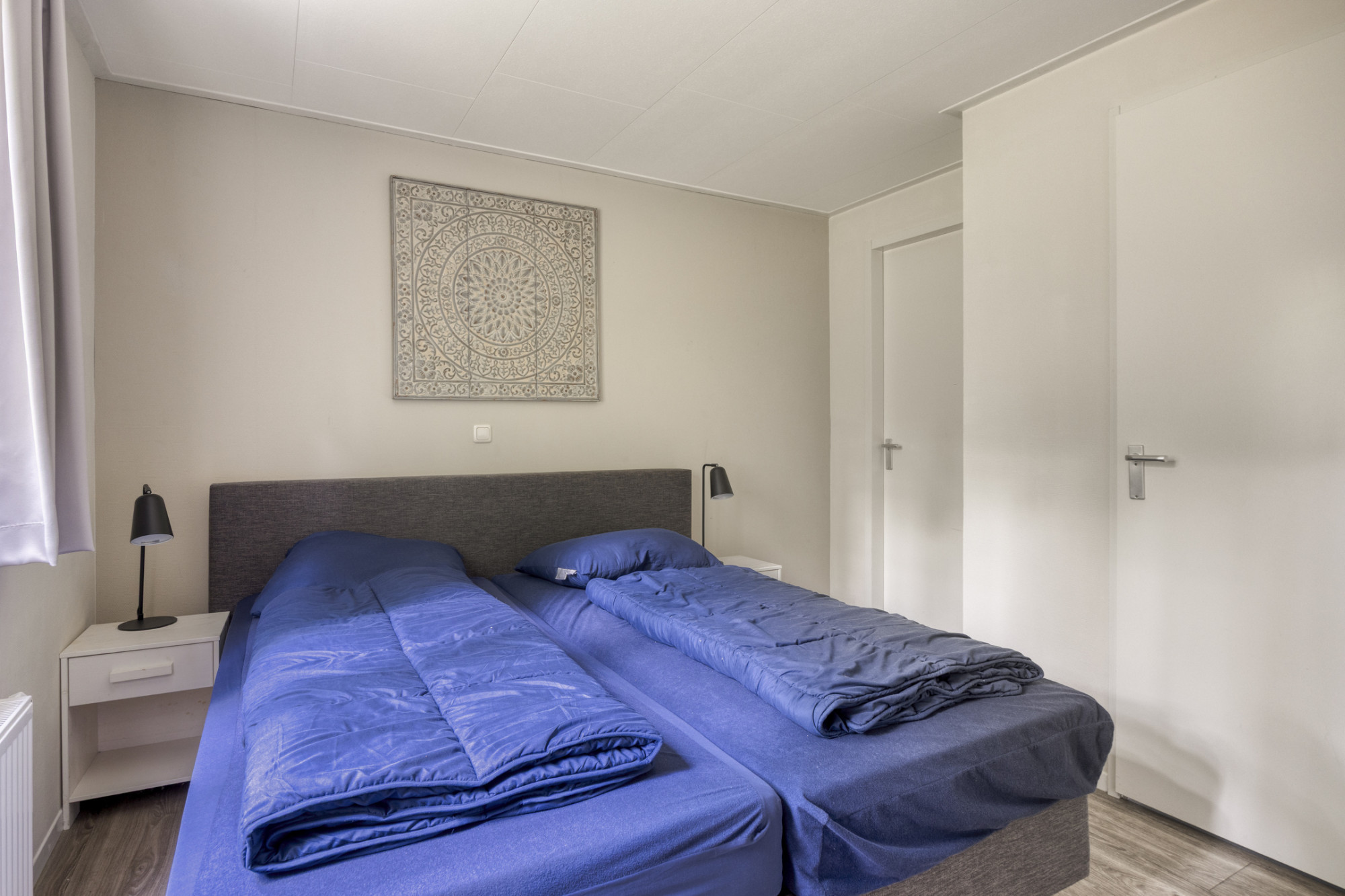 De woning beschikt over vijf slaapkamers met in totaal tien slaapplekken. De hoofdslaapkamer op de begane grond is voorzien van een tweepersoonsbed en een vaste inbouwkast. De andere vier slaapkamers zijn gelegen op de eerste verdieping en beschikken over eenpersoonsbedden.