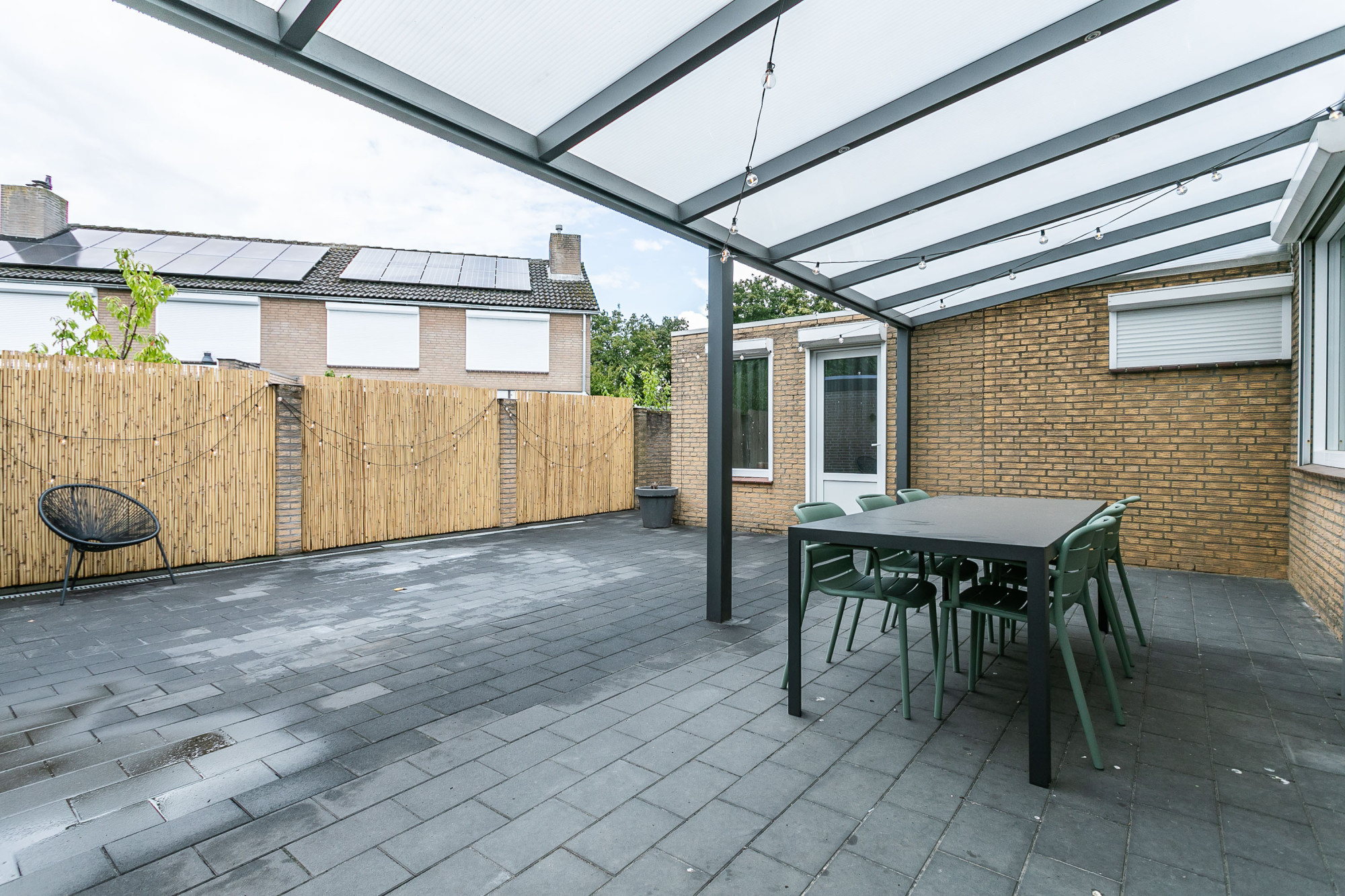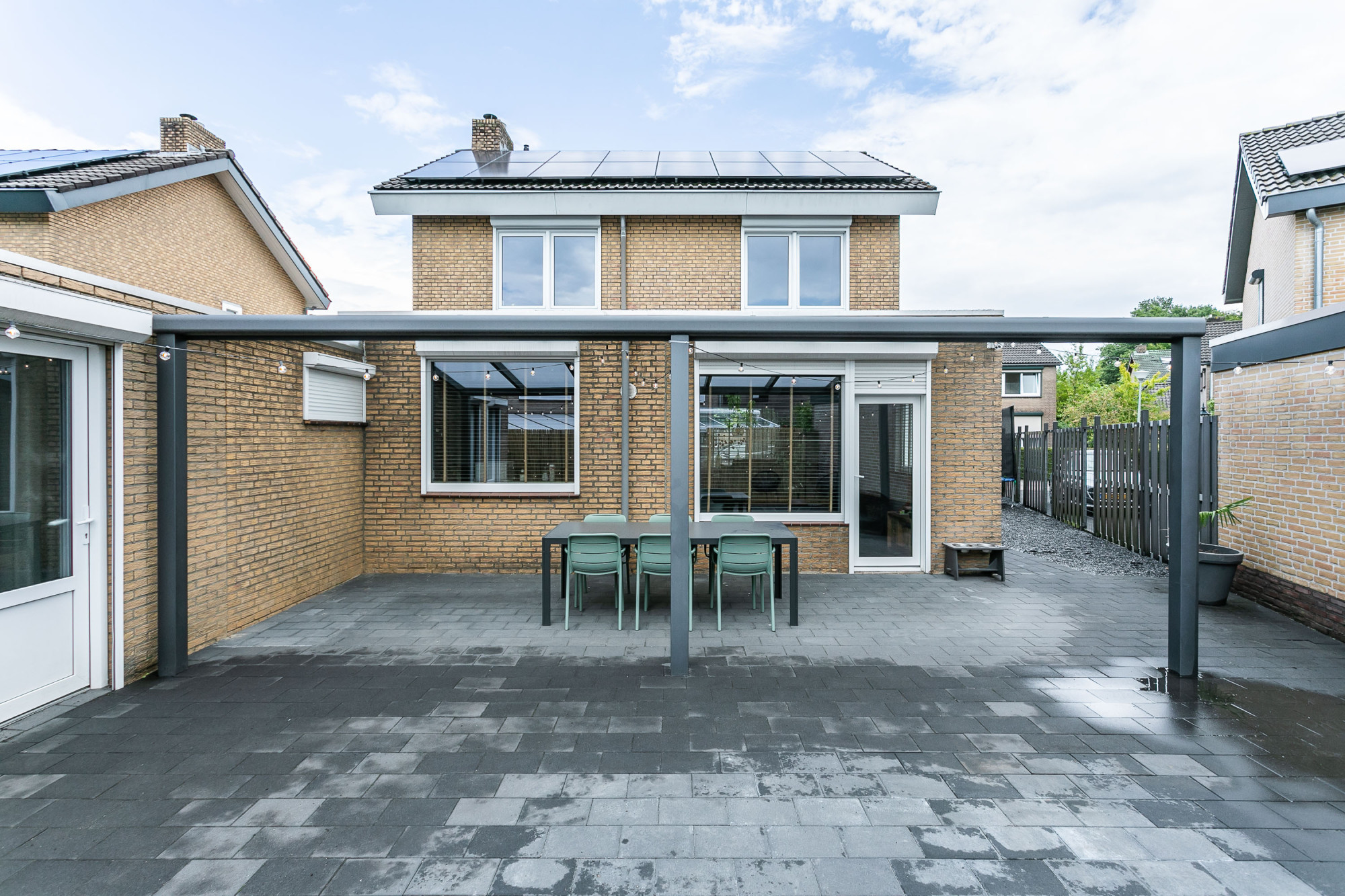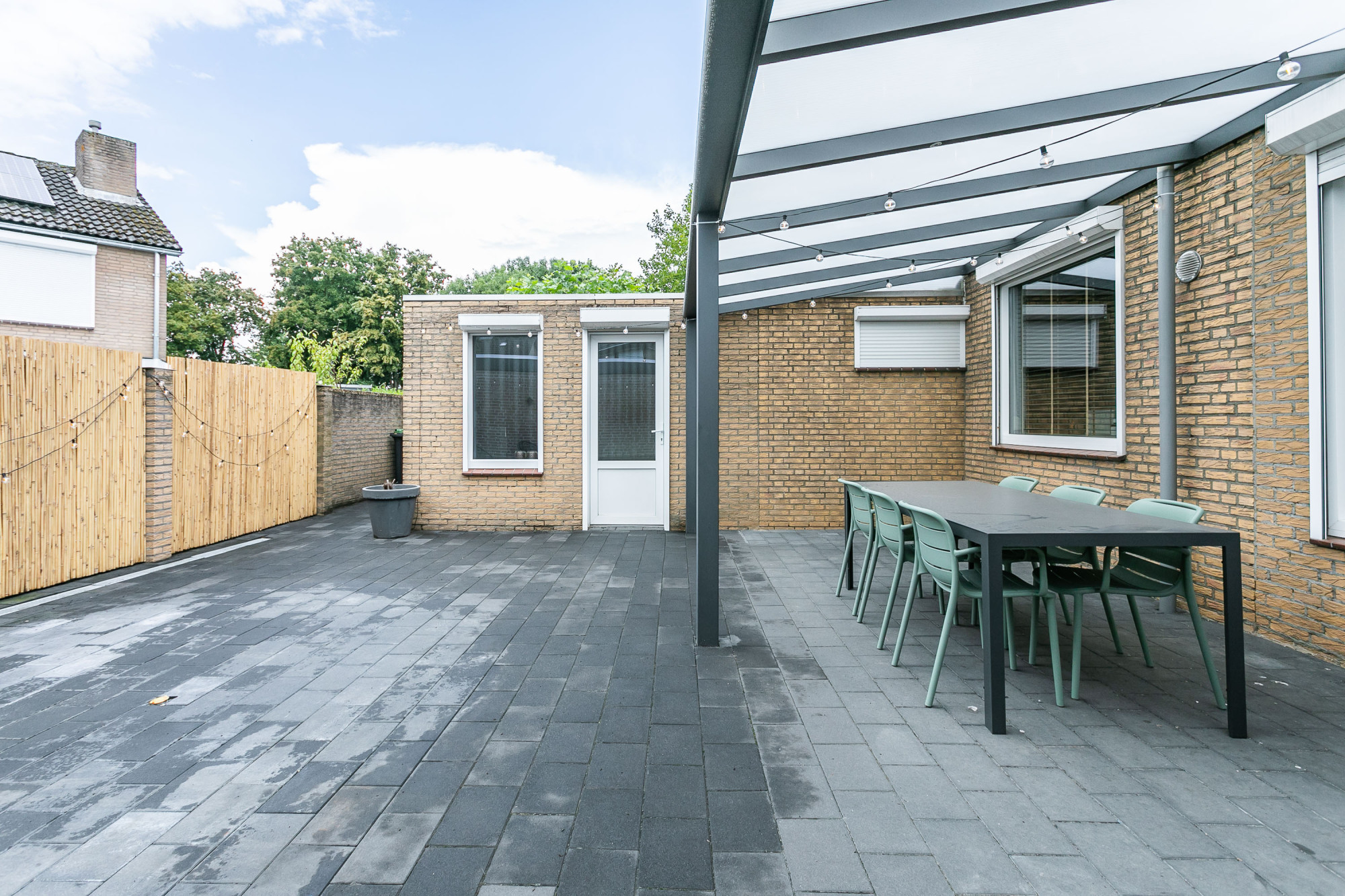 * ONDERHOUDSVRIJE ACHTERTUIN MET TERRAS, GROTE OVERKAPPING EN ZIJINGANG