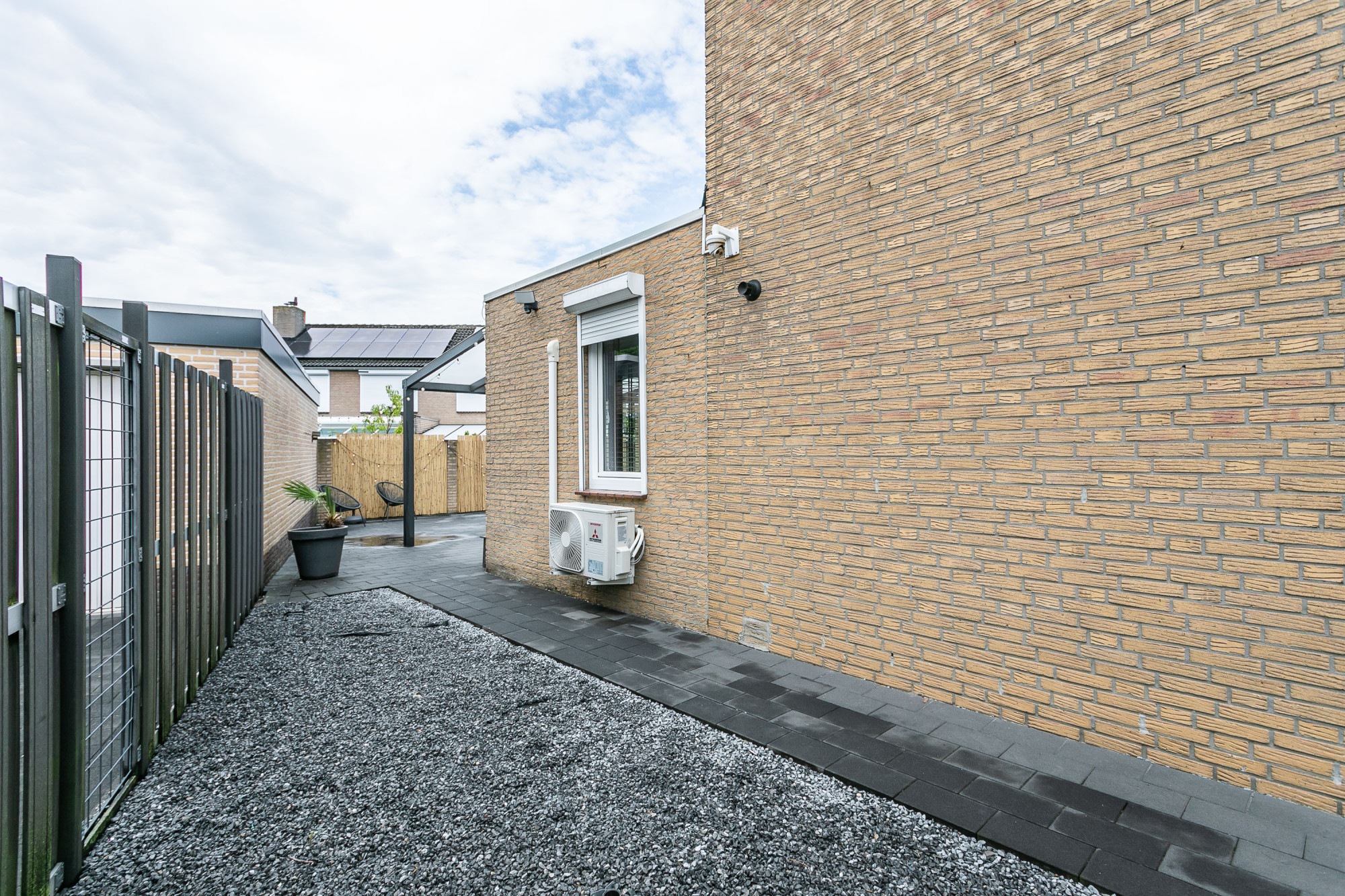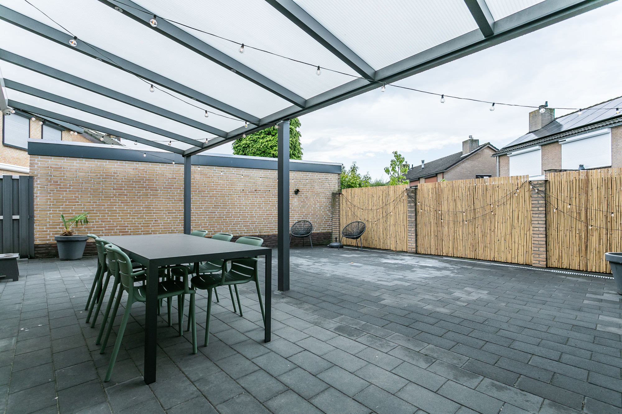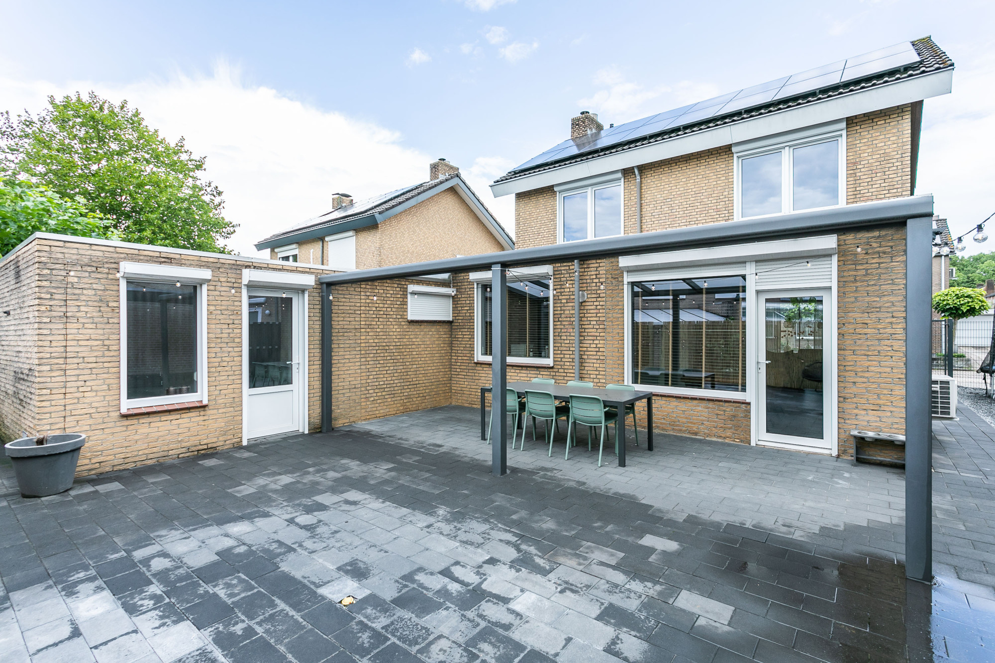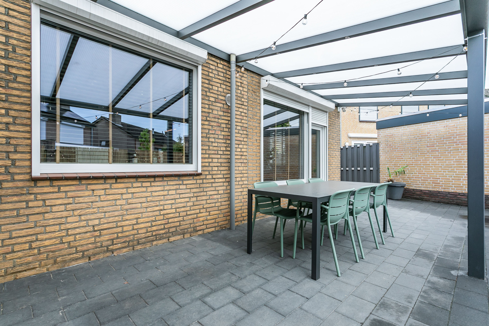 * ONDERHOUDSVRIJE ACHTERTUIN MET TERRAS, GROTE OVERKAPPING EN ZIJINGANG
