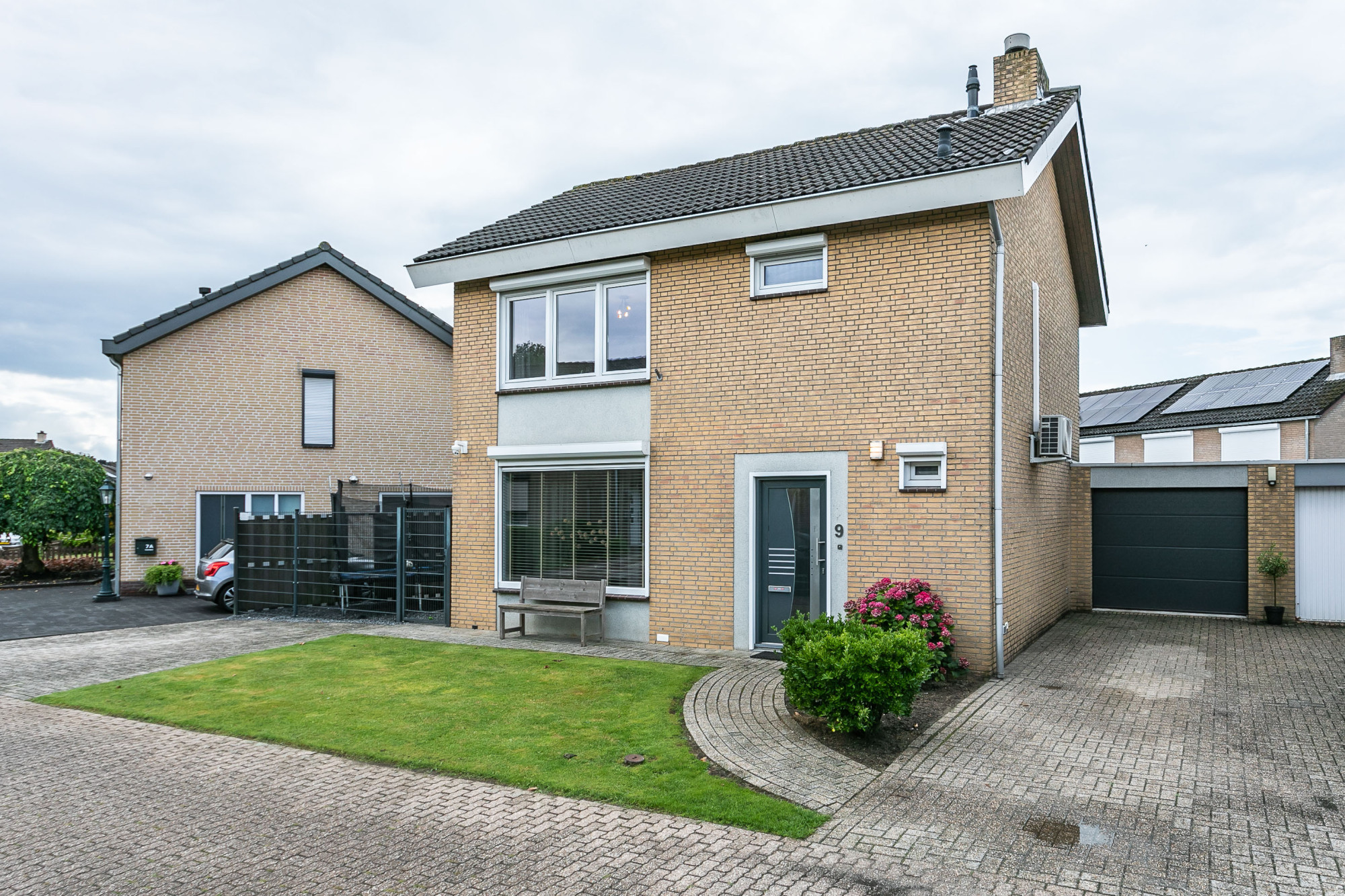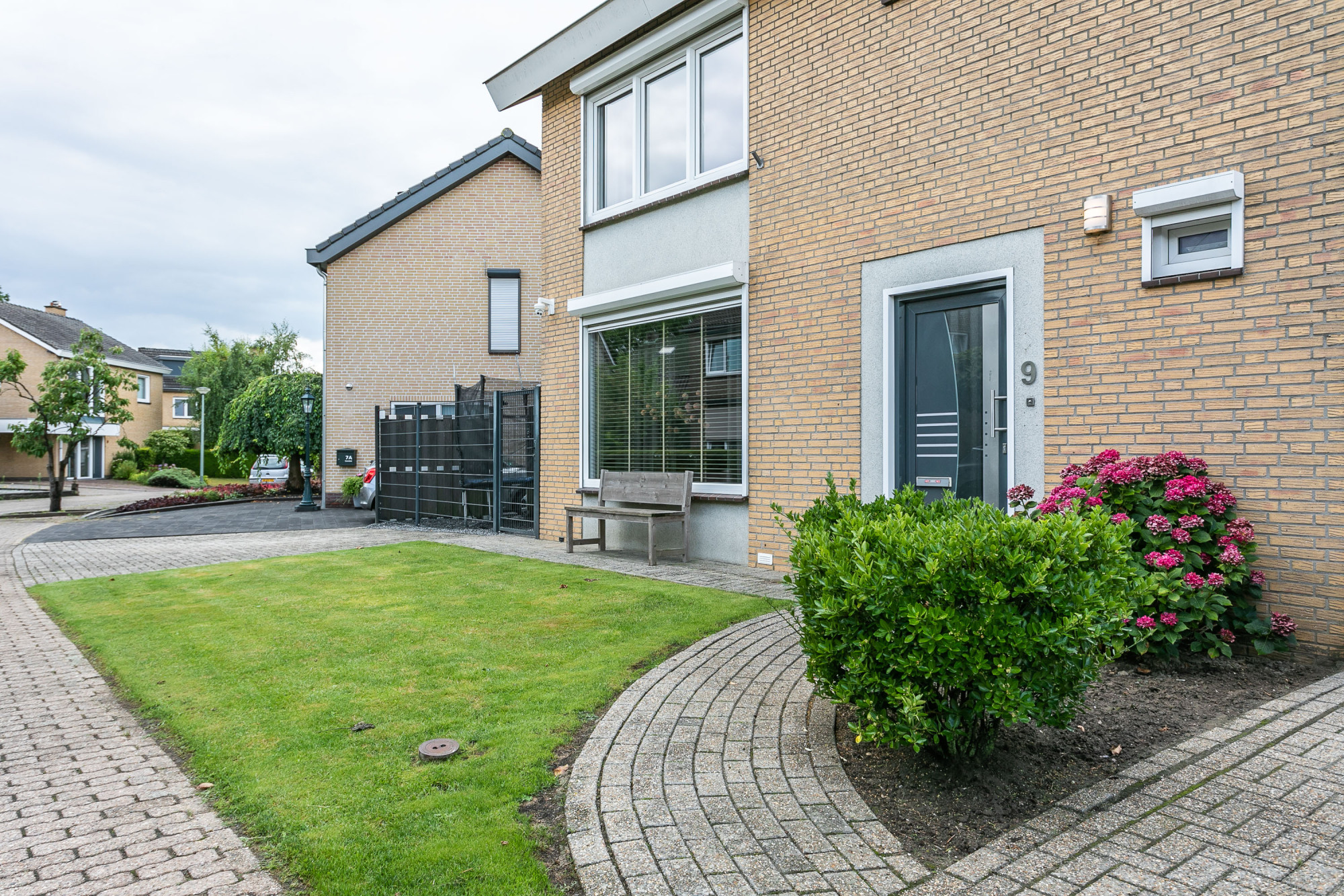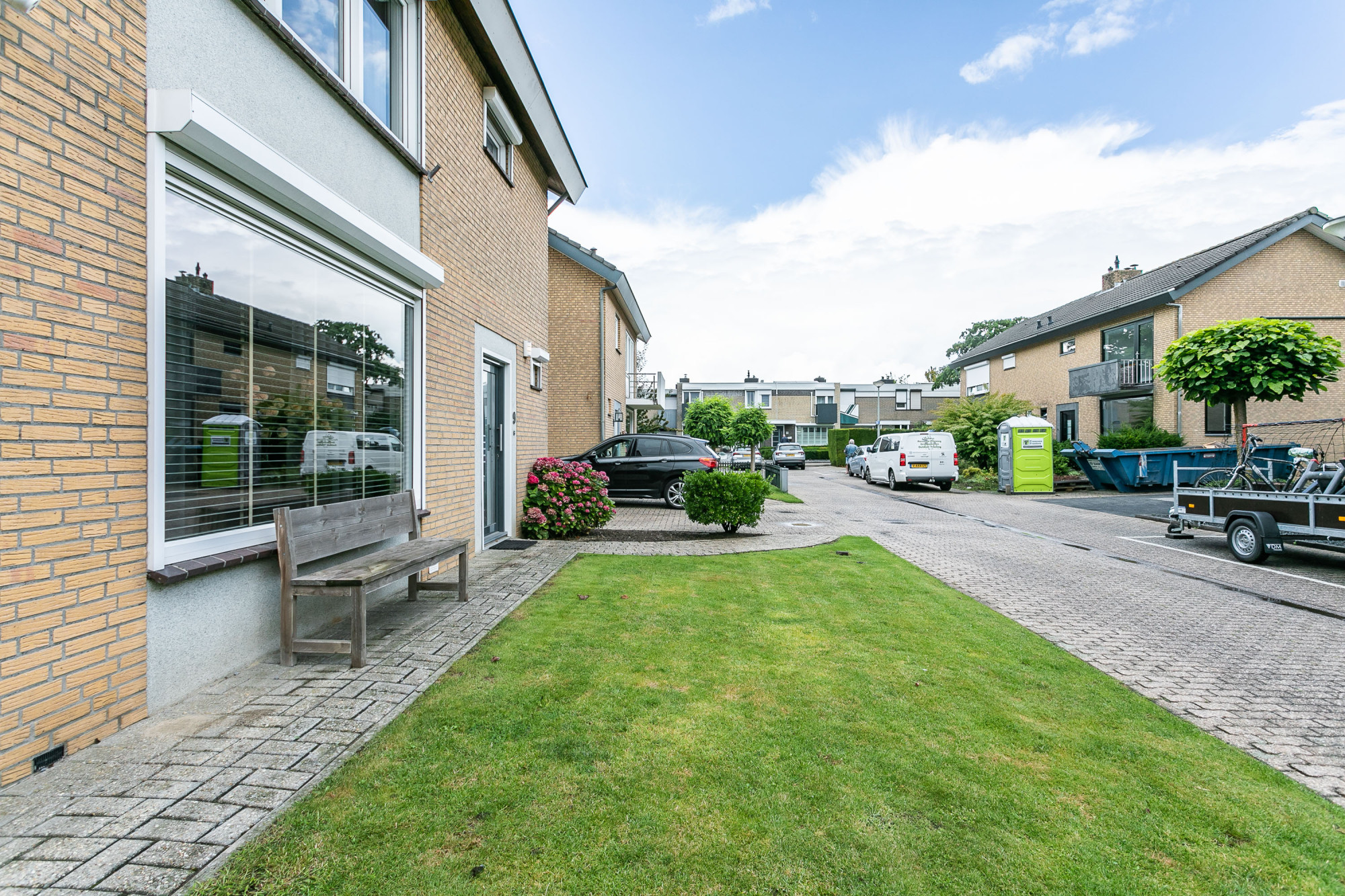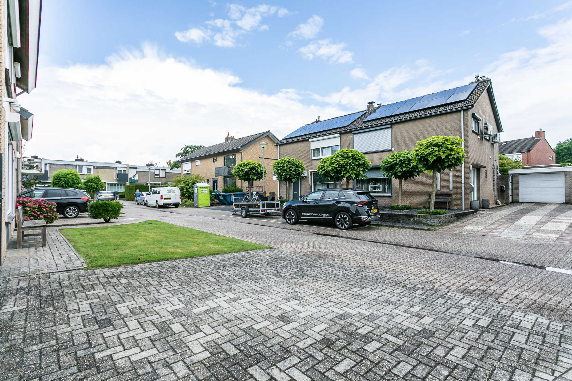 De oprit biedt parkeergelegenheid aan meerdere voertuigen op eigen terrein.