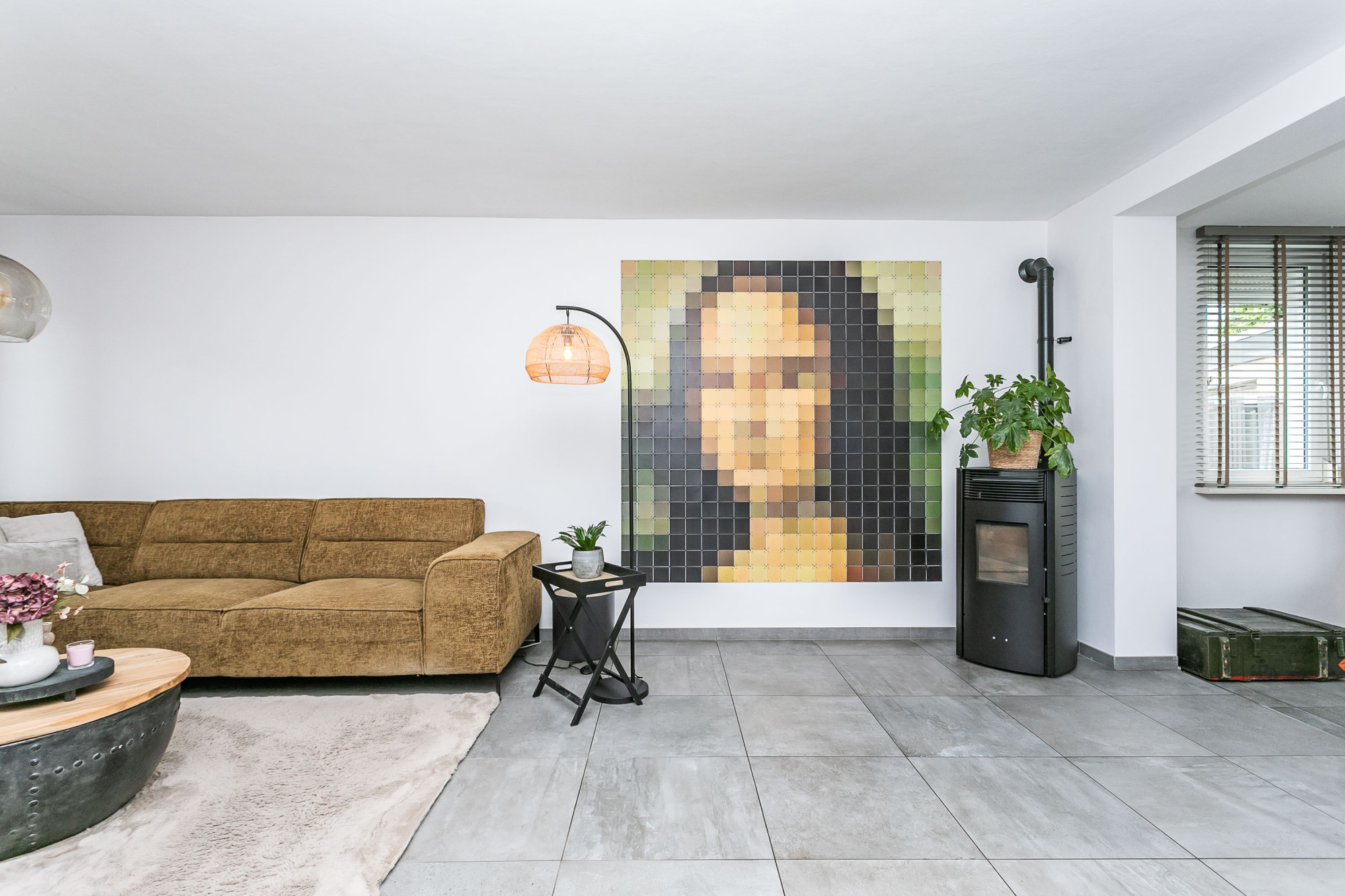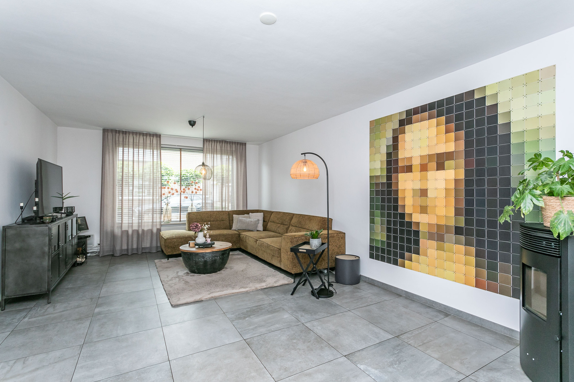 * WOONKAMER VOORZIEN VAN SFEERVOLLE PELLETKACHEL