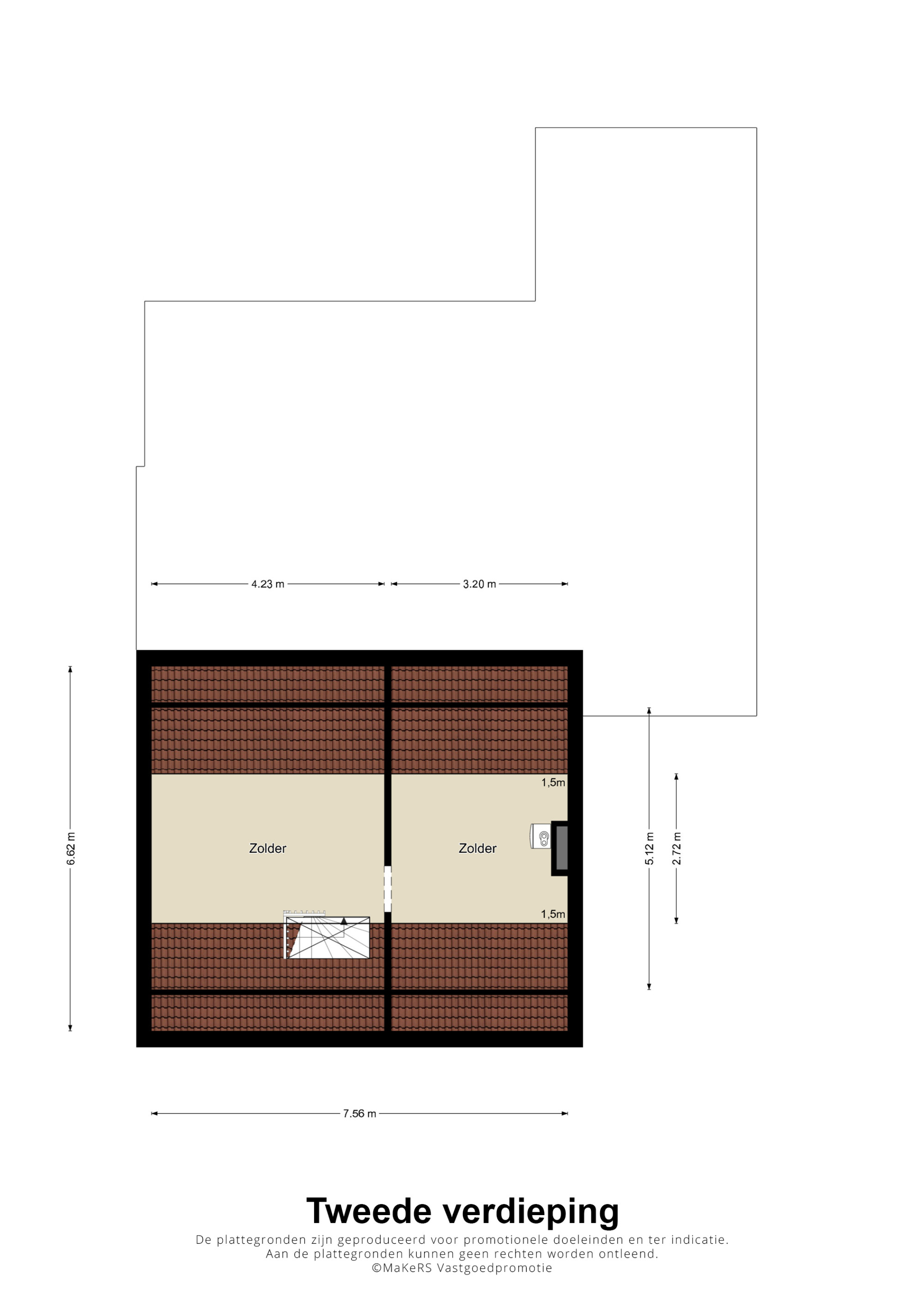 * RUIME BERGZOLDER BEREIKBAAR MIDDELS EEN VASTE TRAP, 4E SLAAPKAMER MOGELIJK