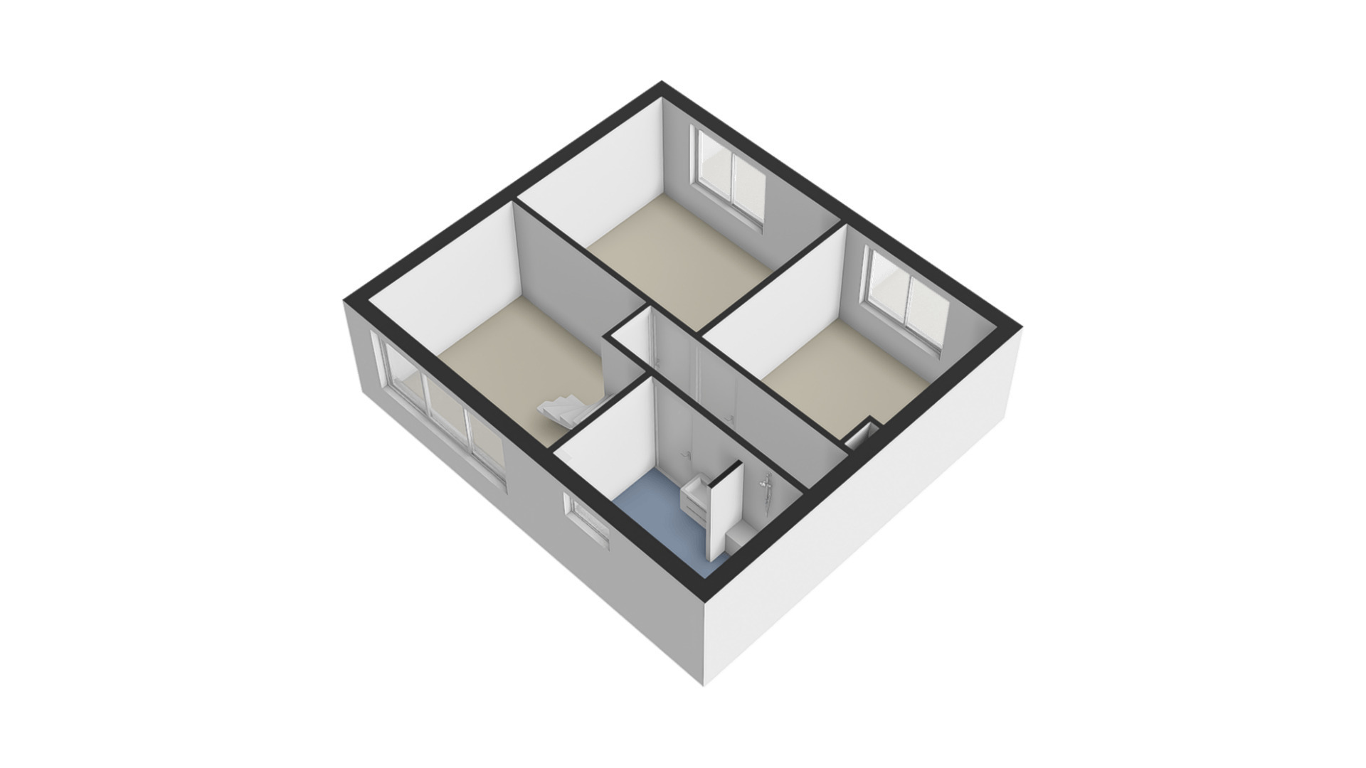 De derde slaapkamer bevindt zich linksvoor.