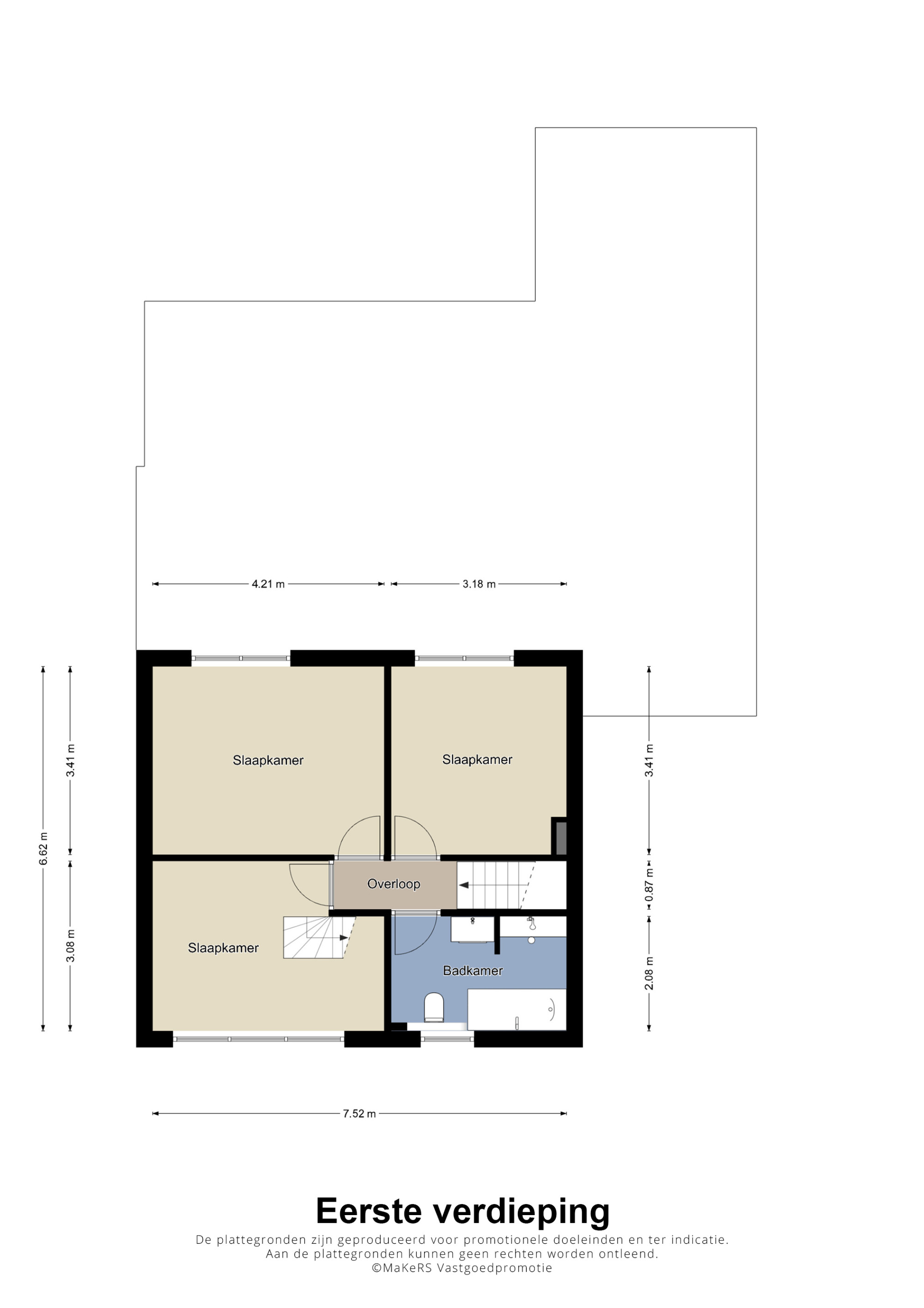 Hier is op eenvoudige wijze een vierde slaapkamer te realiseren.