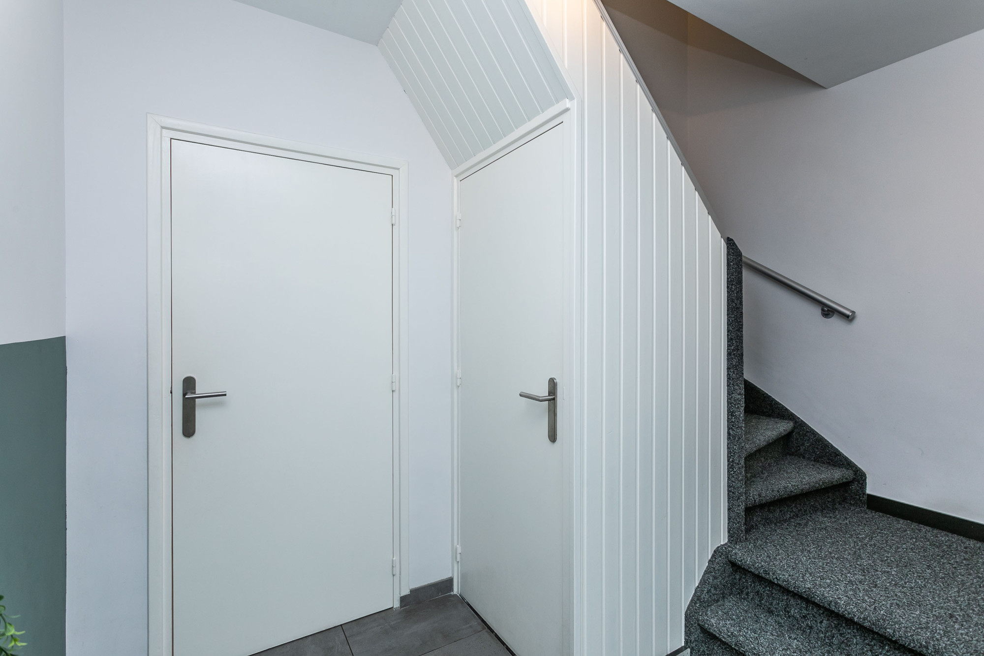 Hal/entree, trappenhuis naar de verdieping en trapkast met bergruimte. Meterkast voorzien van 10 groepsinstallatie / 2x aardlekschakelaar / separate groep voor de zonnepanelen / digitale meters met dag- en nachtstroomaansluiting. Modern gastentoilet met zwevend wandcloset. Toegang tot de woonkamer, eetkamer en keuken.