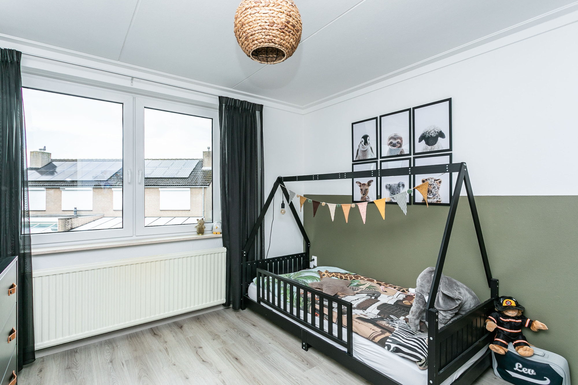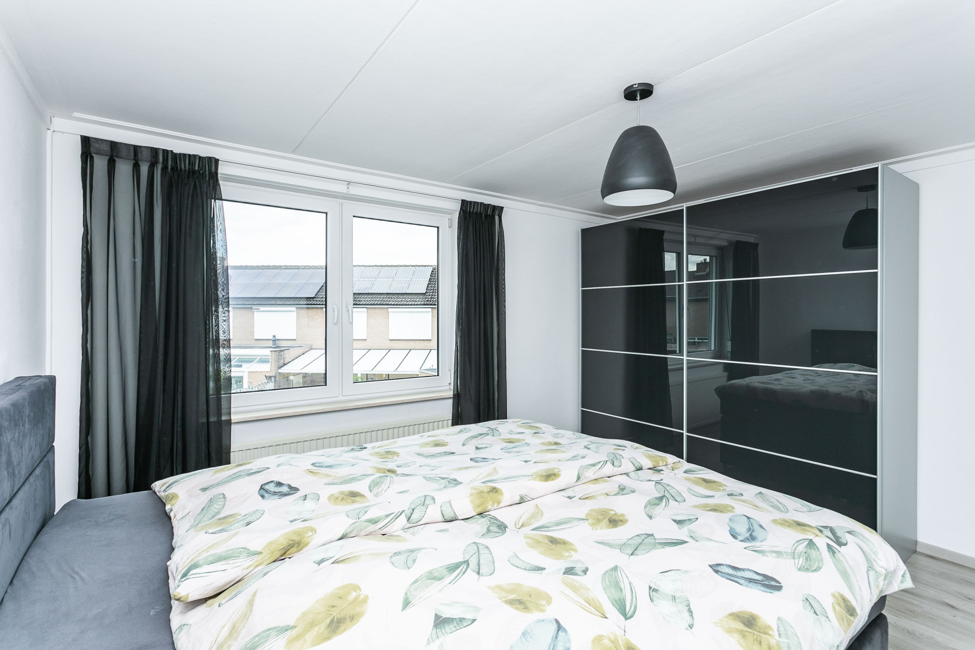 Linksachter gesitueerde ruime hoofdslaapkamer en naastgelegen kinderkamer.