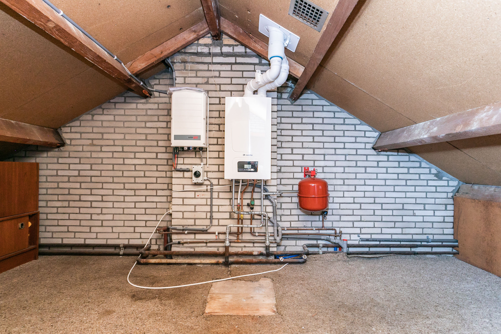 De vaste trap leidt naar de zolder, waar zich de Remeha CV-combiketel, de omvormer van de 16 zonnepanelen en royale bergruimte bevinden. Indien gewenst kan hier eenvoudig een vierde slaapkamer worden gerealiseerd.