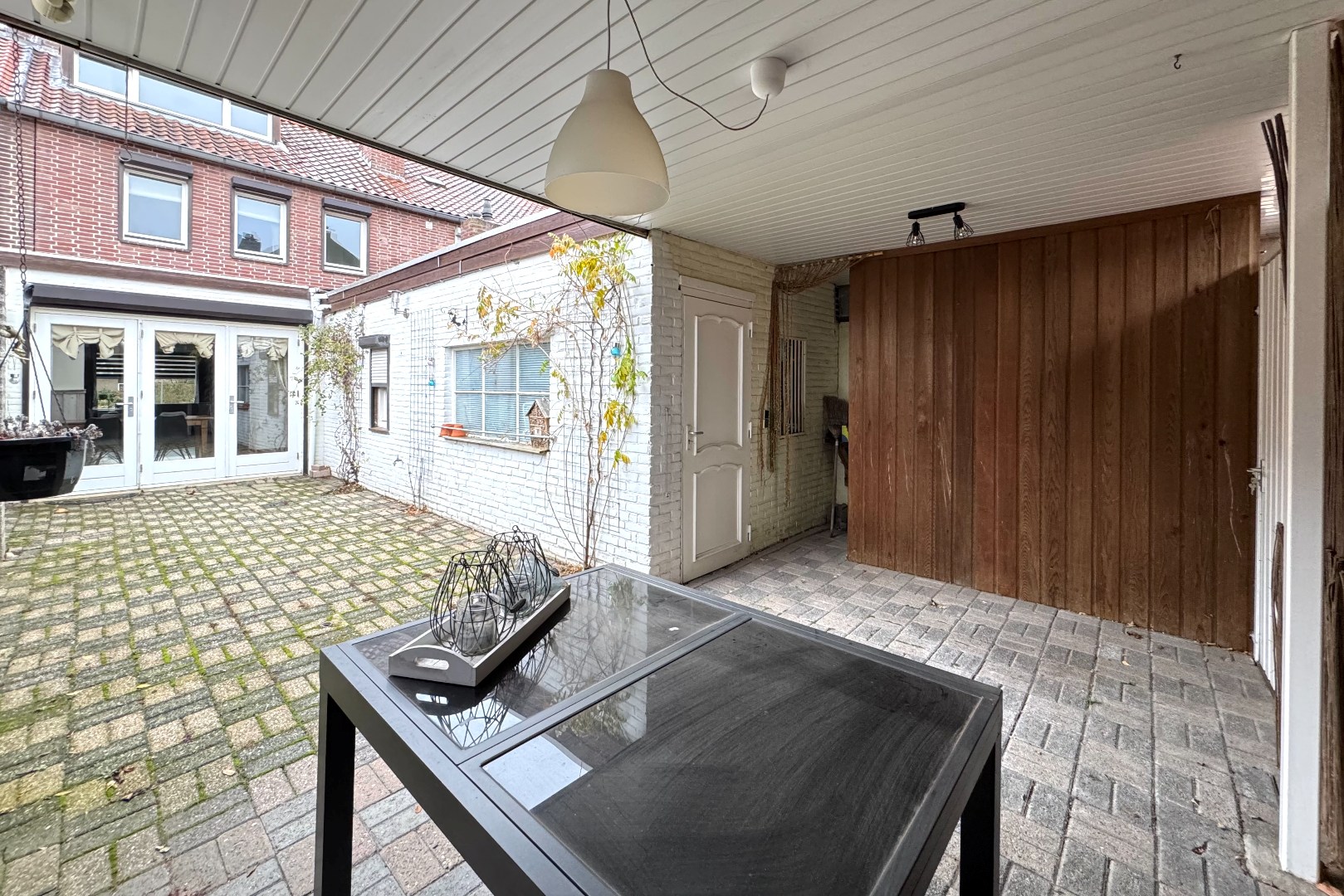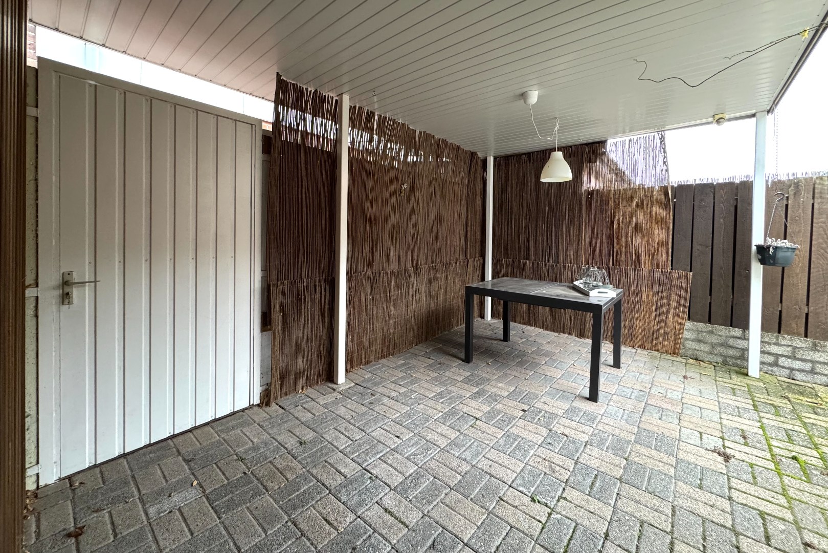 Deze woning beschikt over een fijne achtergelegen tuin die voorzien is van een terras, achterom, stenen buitenberging (3.94m x 2.53m) en een overkapping. Deze achtergelegen tuin is op het westen gesitueerd.