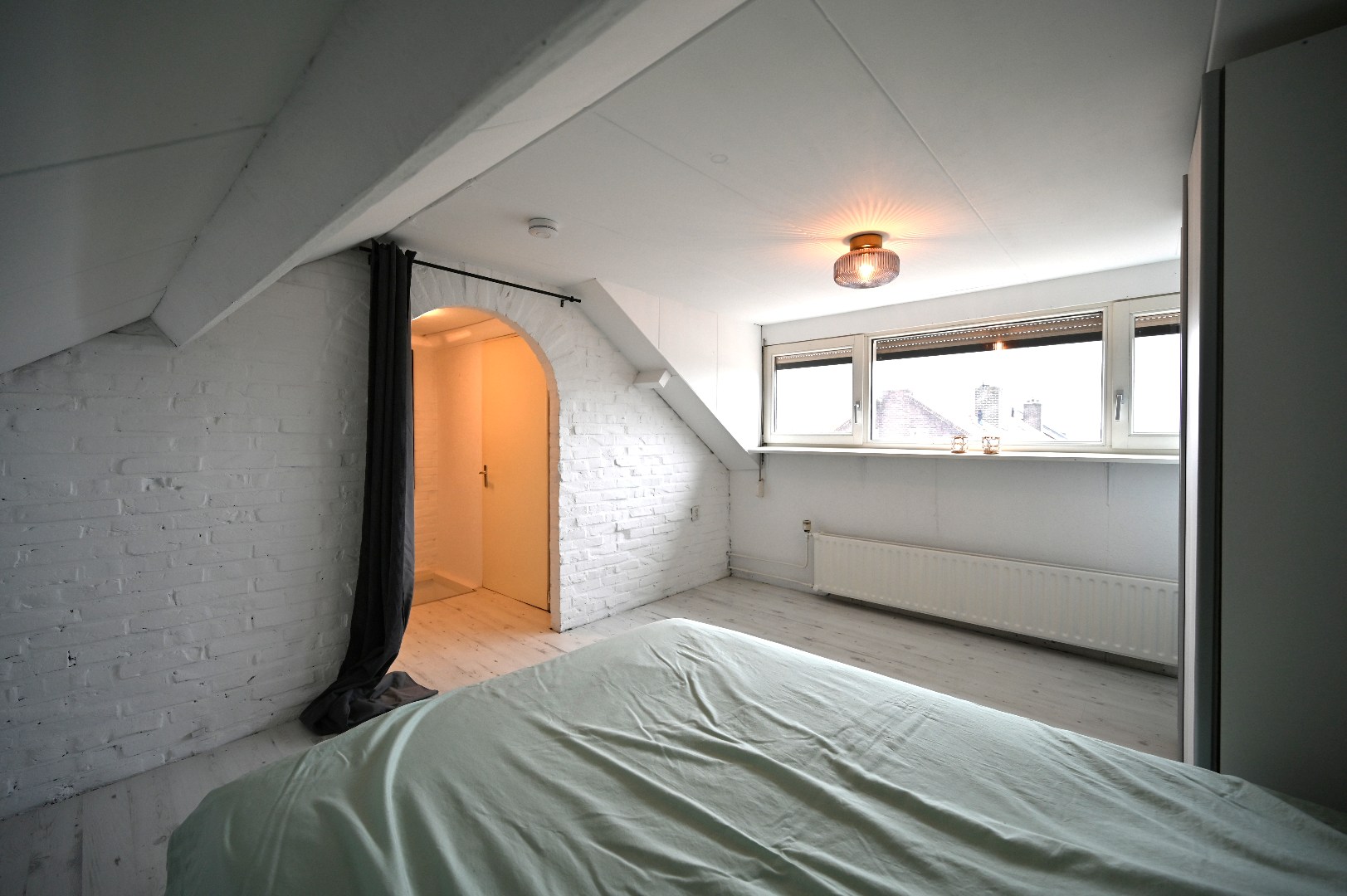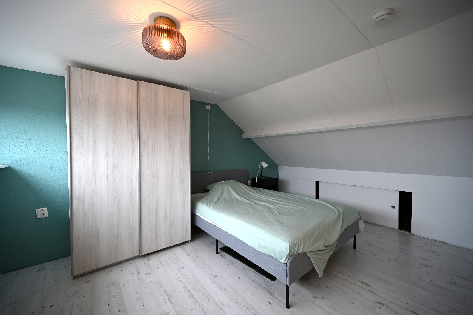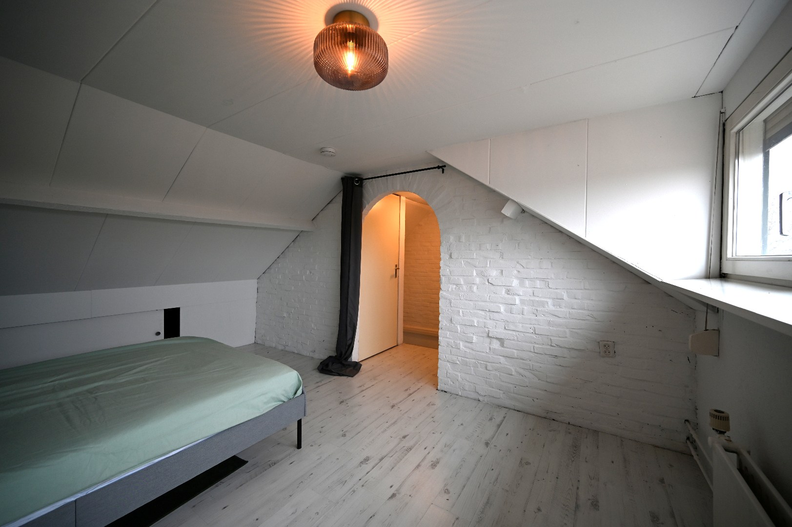 Middels de vaste trapopgang bereikt men de overloop van de tweede etage. De gehele tweede etage is afgewerkt met een laminaatvloer. Deze overloop biedt toegang tot de twee bergruimten en tot de slaapkamer. De slaapkamer (3.28m x 4.03m) beschikt over een dakkapel aan de achterzijde van de woning.