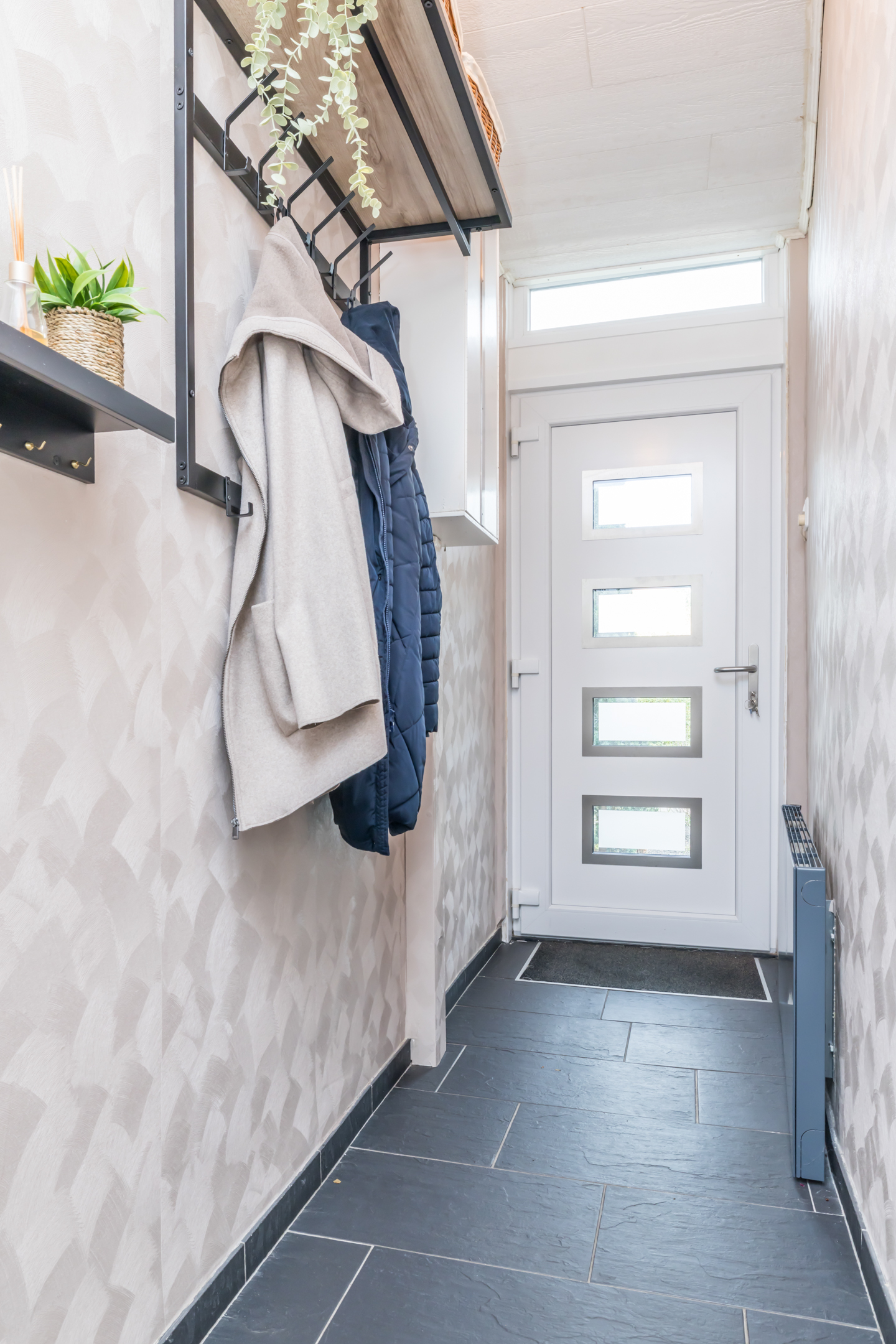 Hal / Entree toegang tot de woonkamer en de kelder. Meterkast voorzien van 7 groepsinstallatie / 2x aardlekschakelaar / aparte groep voor de zonnepanelen en digitale meters.