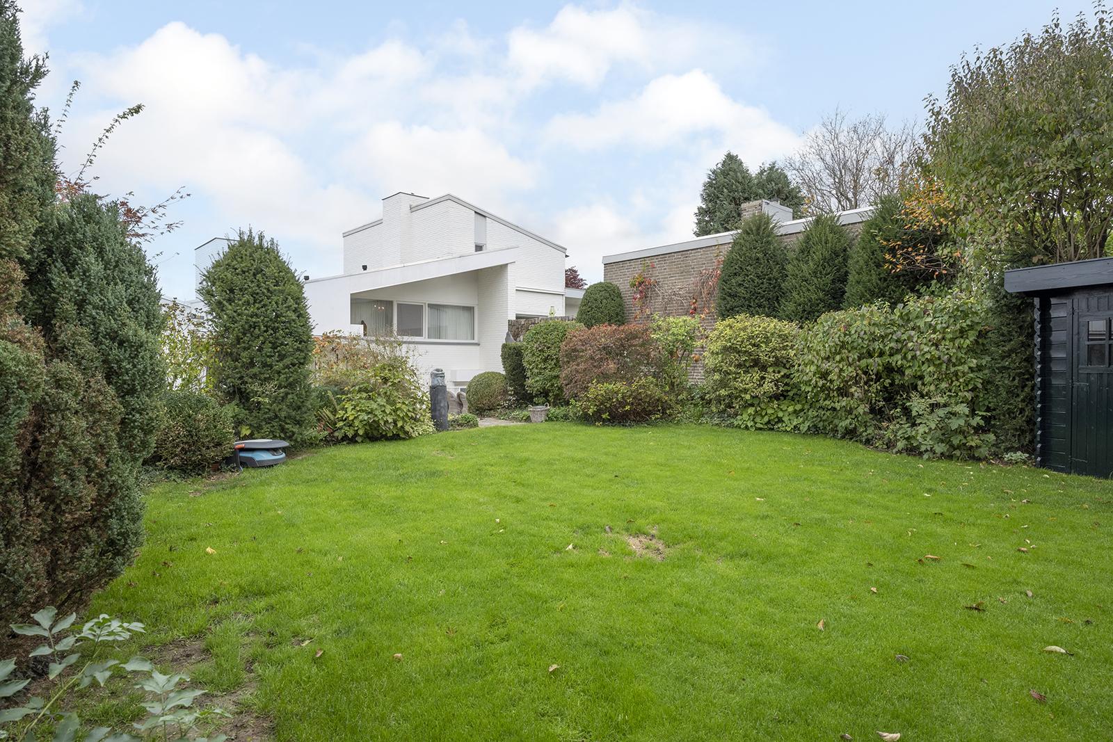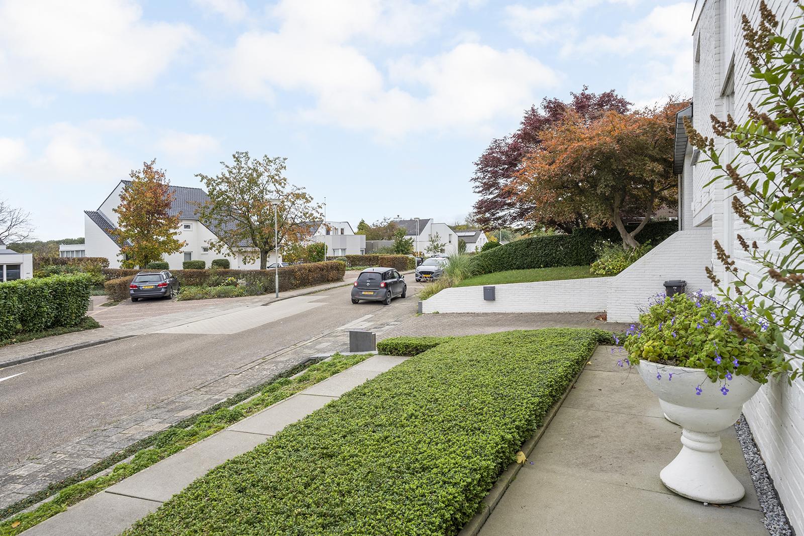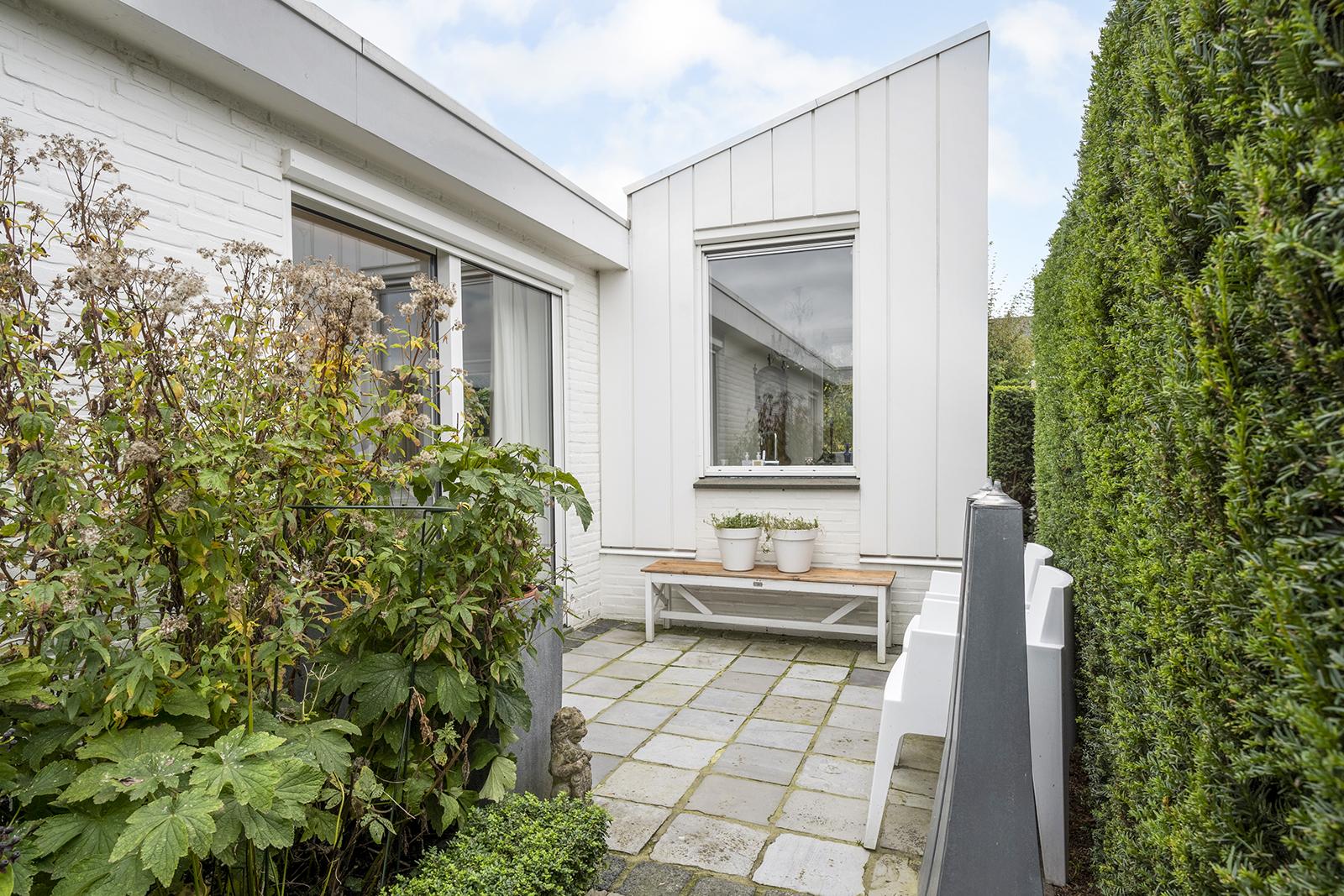 De woning staat op een perceel van 461 m², waarbij de achtertuin op het zuiden gesitueerd is. Aan de voorzijde is parkeergelegenheid voor twee auto’s en de gehele tuin is onder architectuur aangelegd. Aan de rechterzijde is een sfeervol terras op het westen, te bereiken vanuit de woonkamer.