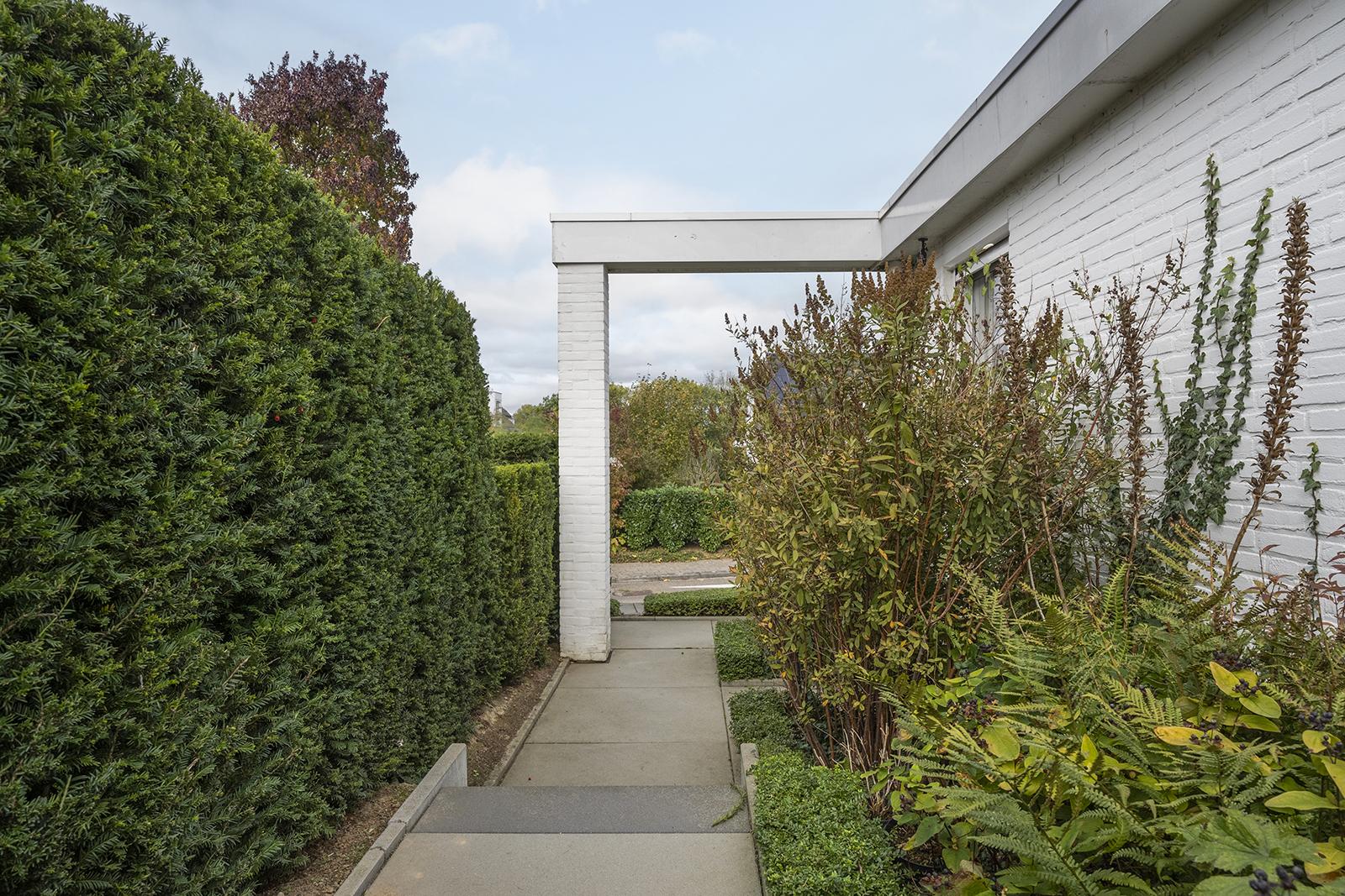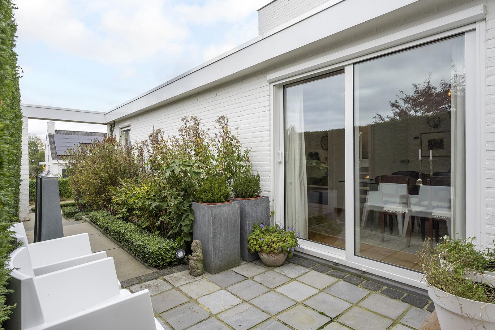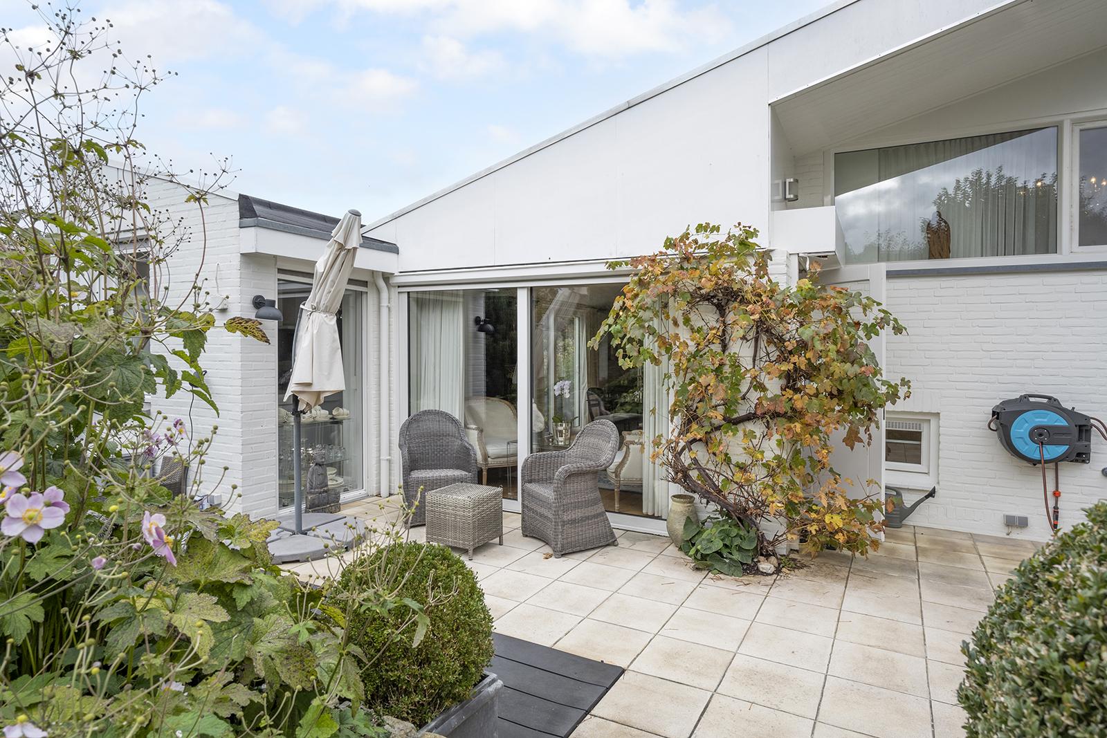 De woning staat op een perceel van 461 m², waarbij de achtertuin op het zuiden gesitueerd is. Aan de voorzijde is parkeergelegenheid voor twee auto’s en de gehele tuin is onder architectuur aangelegd. Aan de rechterzijde is een sfeervol terras op het westen, te bereiken vanuit de woonkamer.