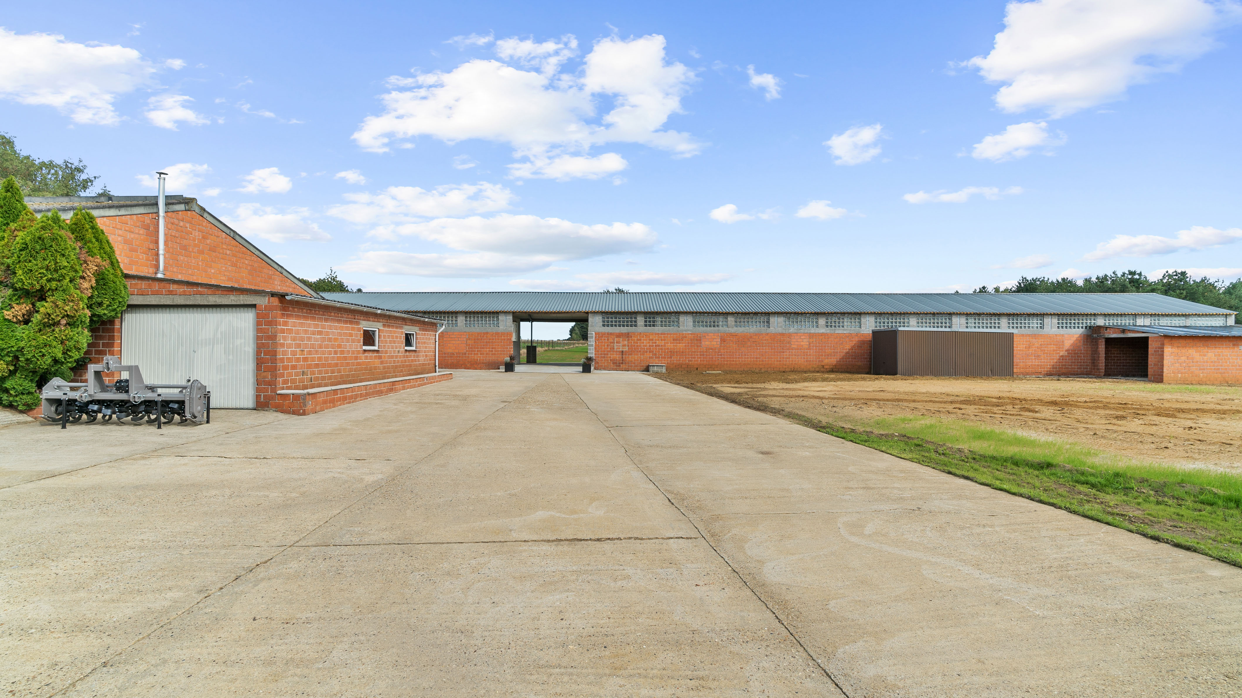Buiten is er een varkensstal van circa 500 m² met vijf compartimenten, ideaal voor diverse landbouwdoeleinden. De grote troef is een volledig gerenoveerd stalgebouw dat perfect is uitgerust voor paardenliefhebbers of een professionele fokkerij. Het gebouw beschikt over drie ruime boxen van 4,5 x 4 m, één grote box van 9 x 4 m, acht boxen van 4 x 3 m en twee grote boxen van 3 x 7,5 m. Alle stalwanden zijn gemaakt van degelijk materiaal en kunnen volledig geopend worden om machinaal uit te mesten.