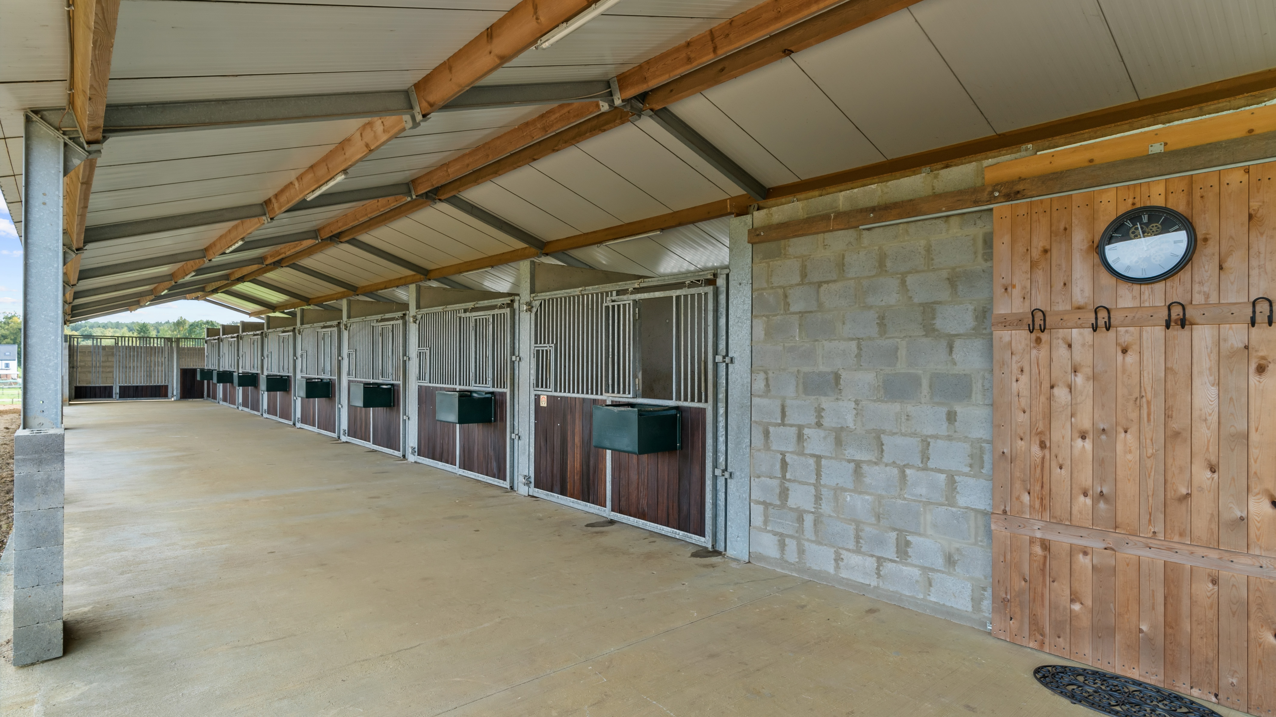 De stallen grenzen rechtstreeks aan zes hectare weiland, volledig omheind en perfect onderhouden. De eigendom ligt rustig achterin, met uitstekende bereikbaarheid en prachtige wandelmogelijkheden in de omgeving. Dankzij de aaneengesloten weides en de functionele indeling is dit een uitzonderlijke kans voor wie zoekt naar een combinatie van wonen en professioneel houden of fokken van paarden.