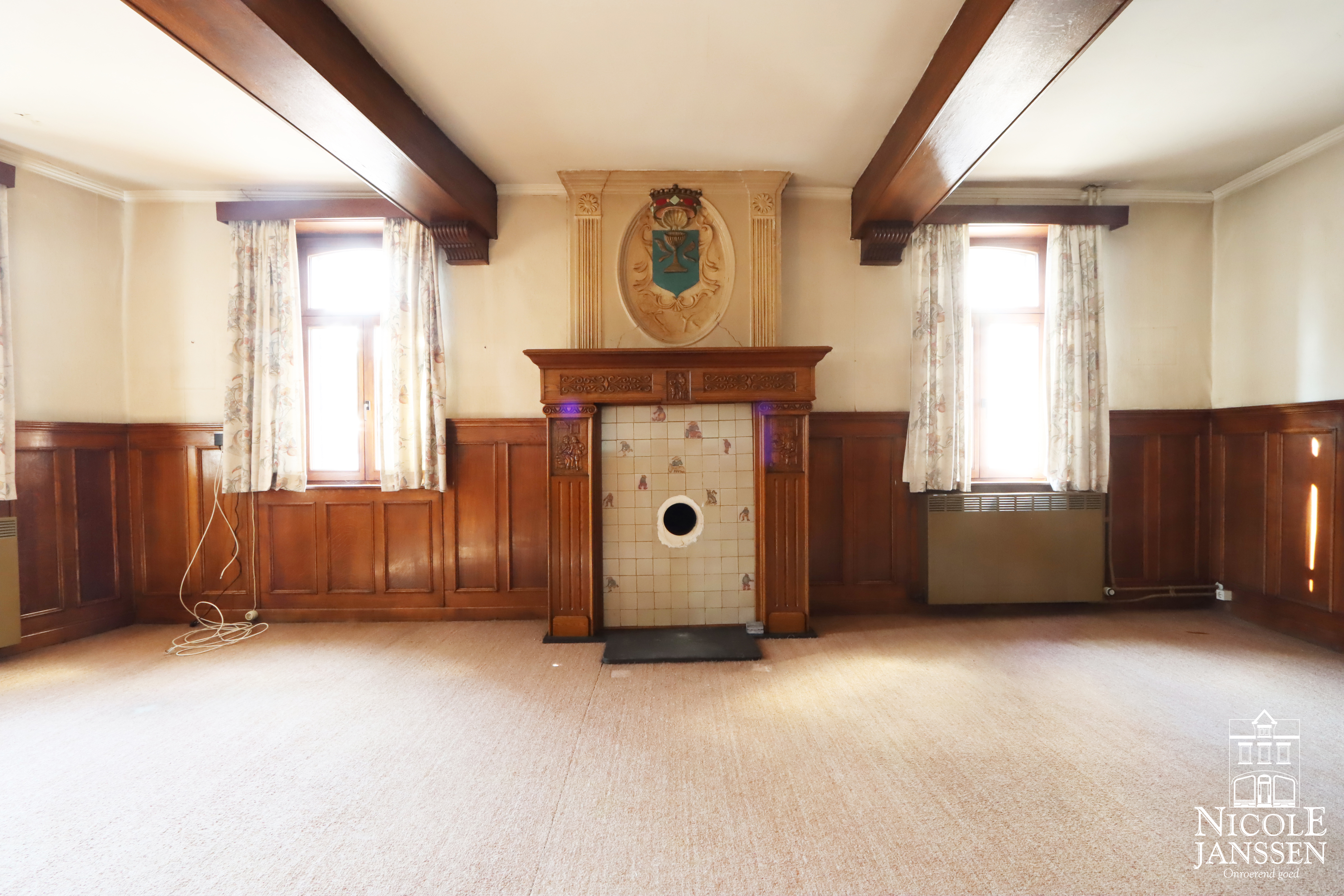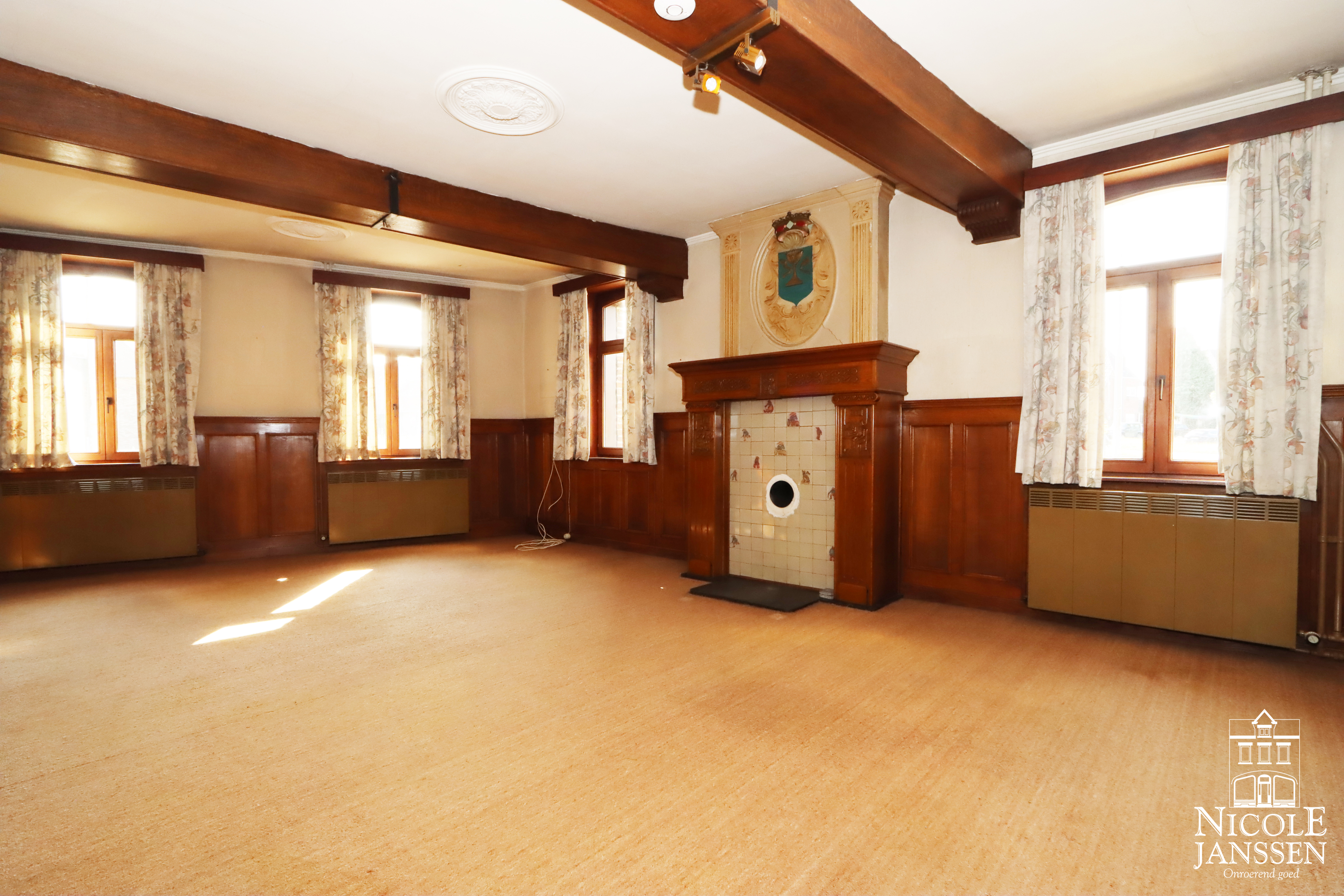 - Leefruimte met authentieke houten schouwmantel