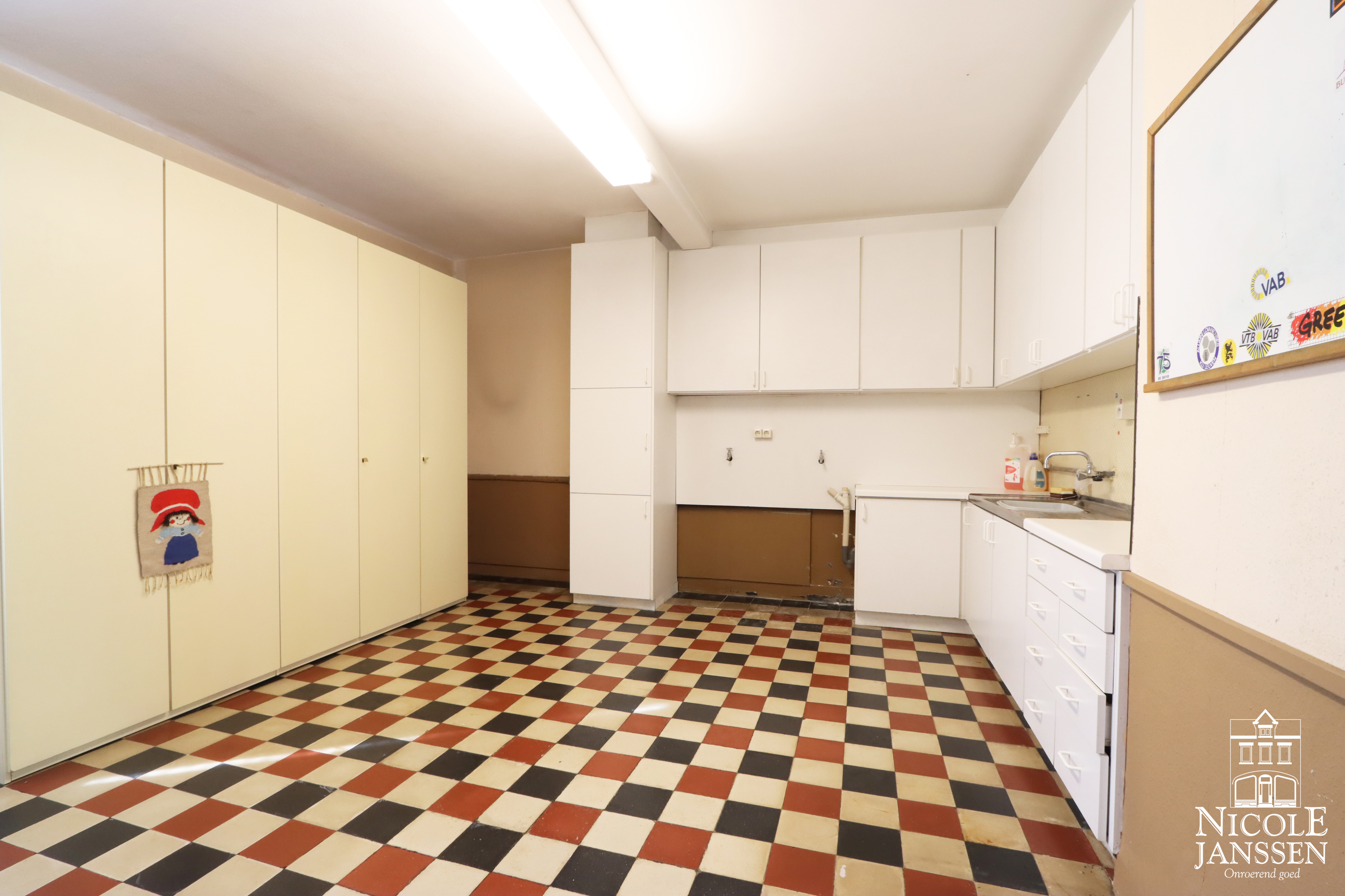 - Berging/wasplaats met vaste kastenwand en spoelbak