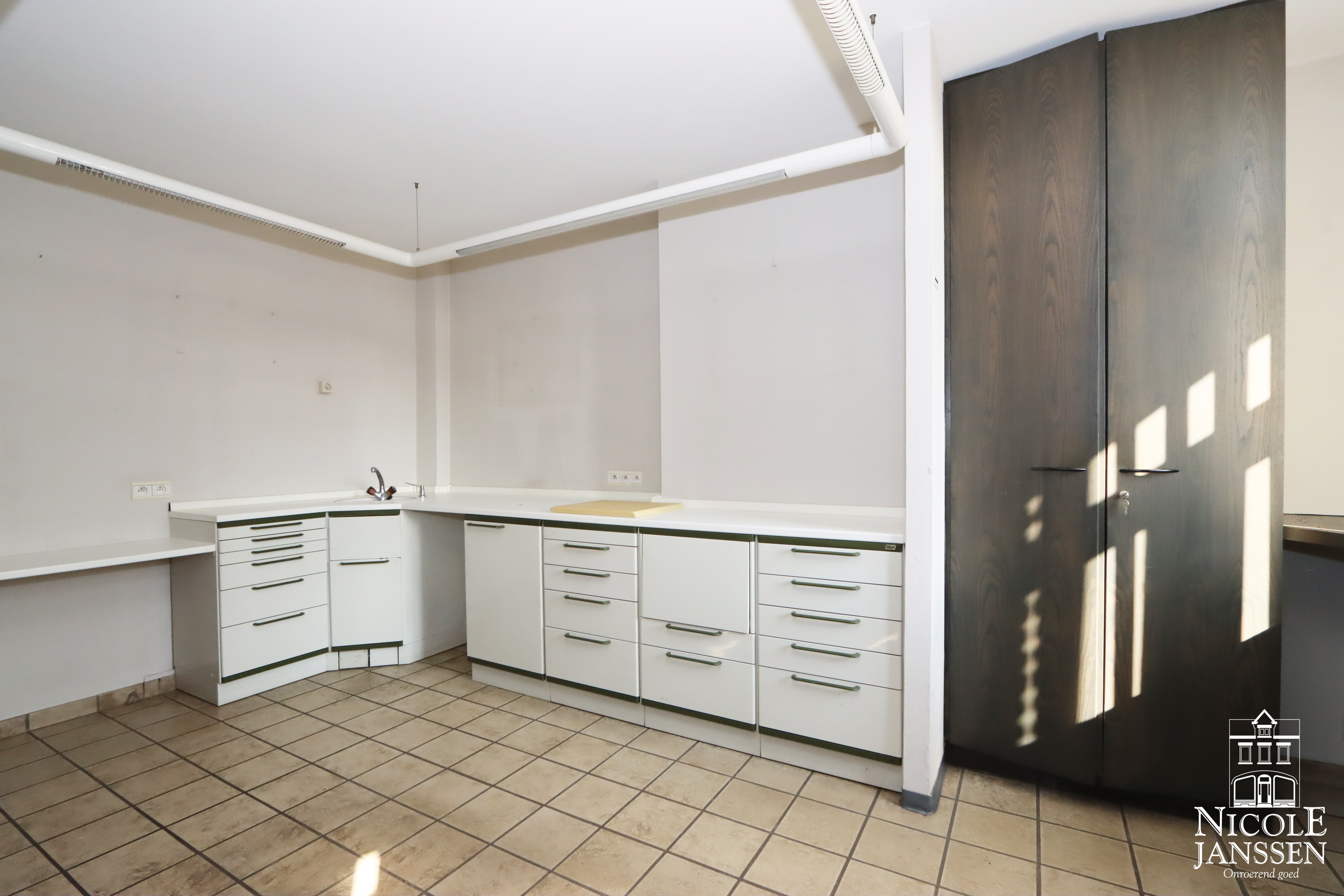 - Praktijkruimte ingericht met vaste kastenwand