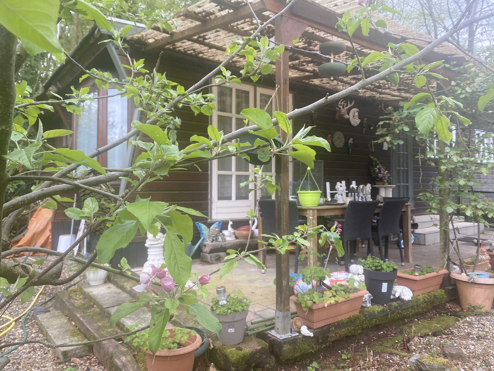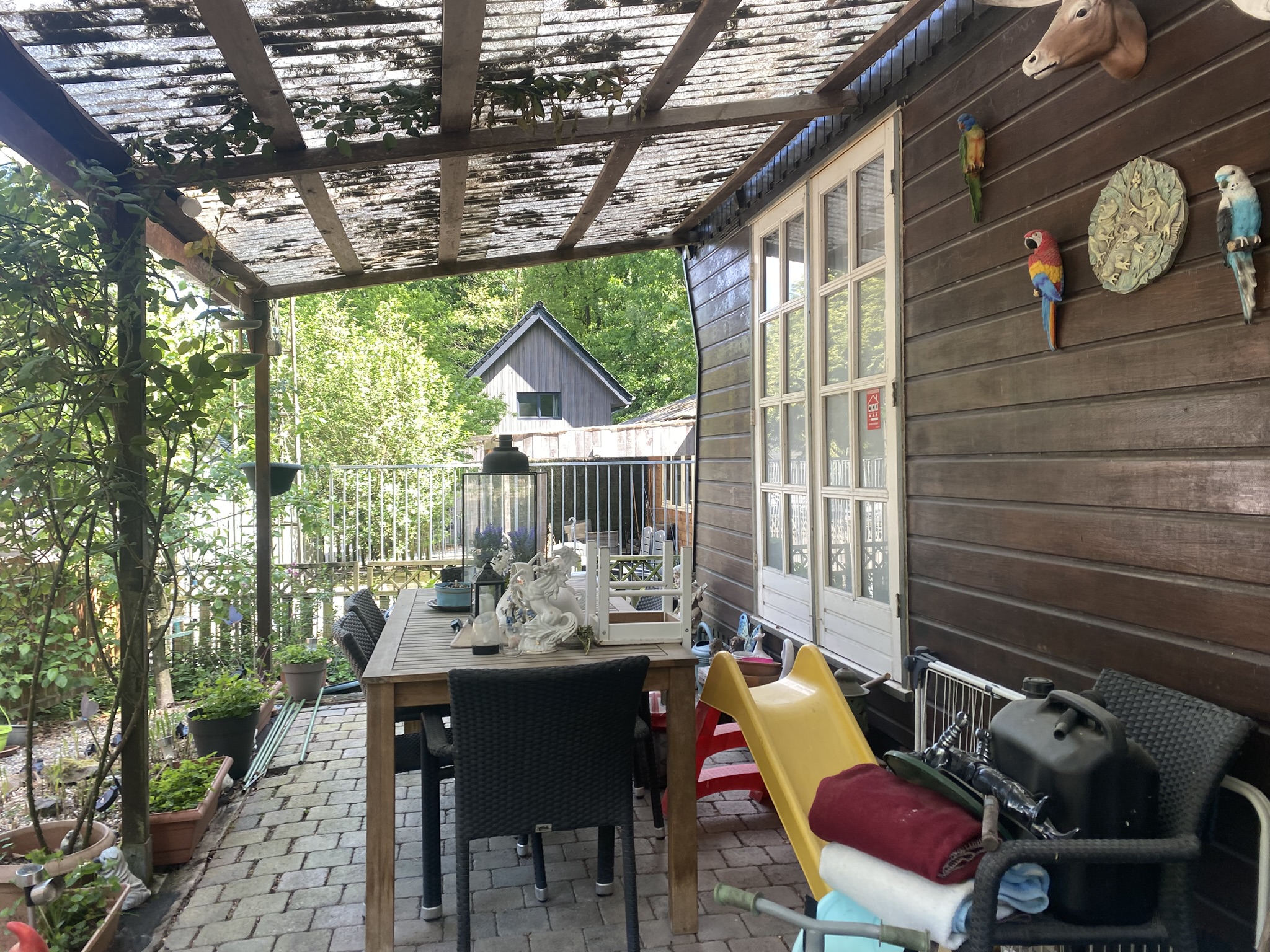 - Overkapte beklinkerde terras aan de voorzijde