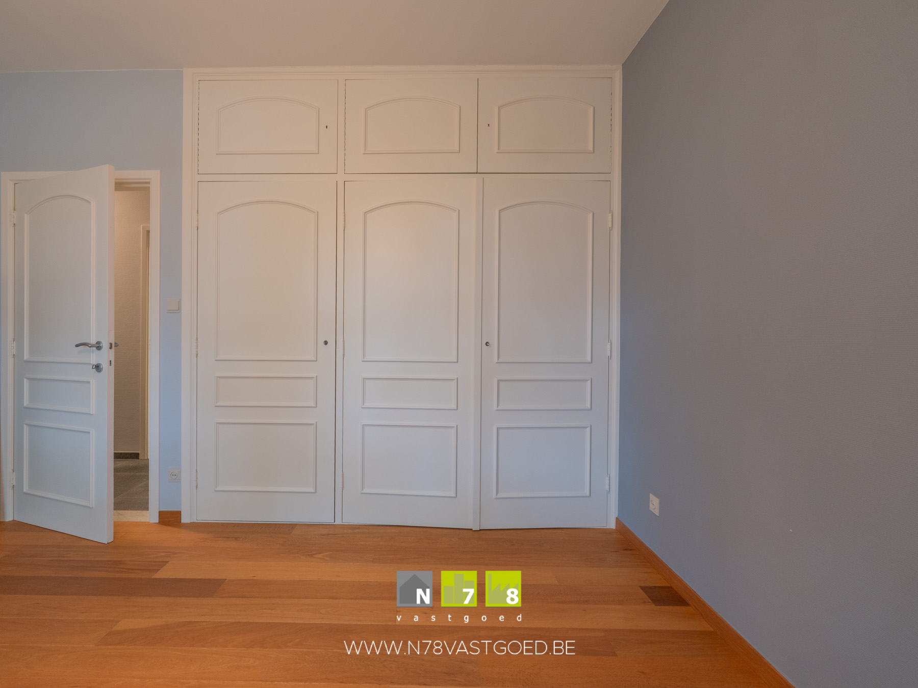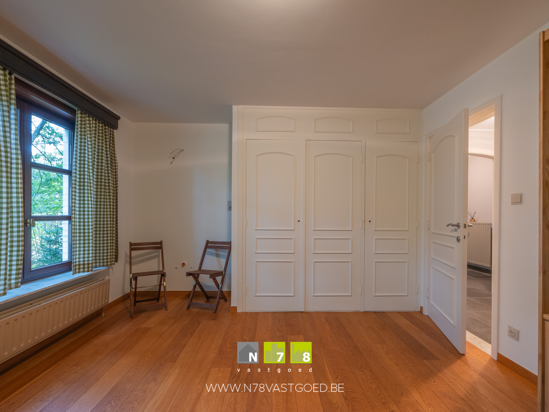 - Slaapkamer 3 (3,70m x 4,60m = 17,02 m²): inbouwkasten, parketvloer.