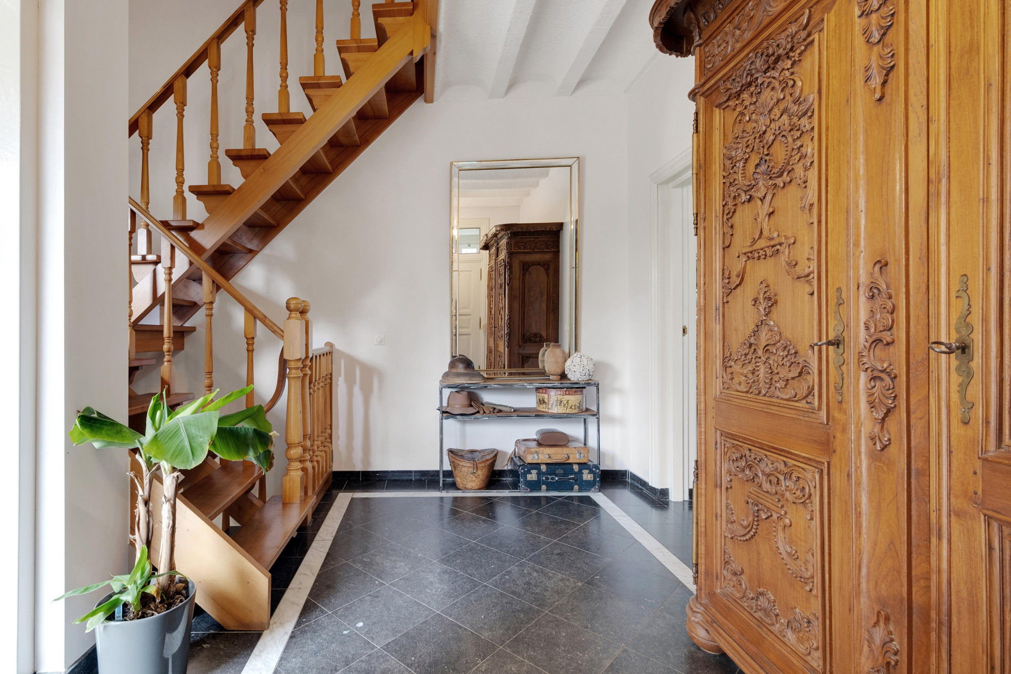 Trappenhuis met stijlvolle olmenhouten trappen.