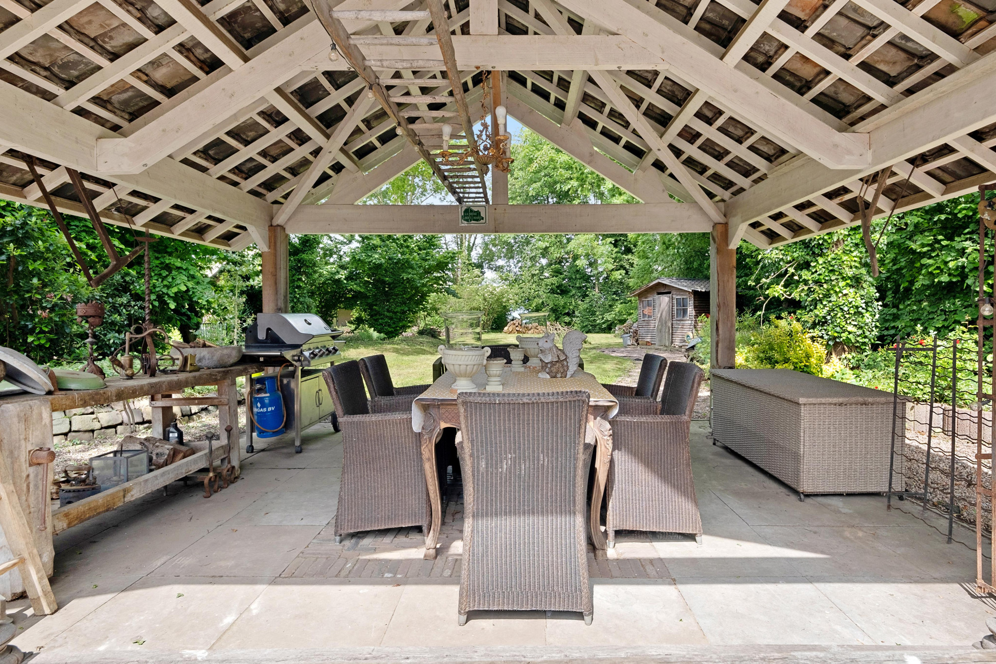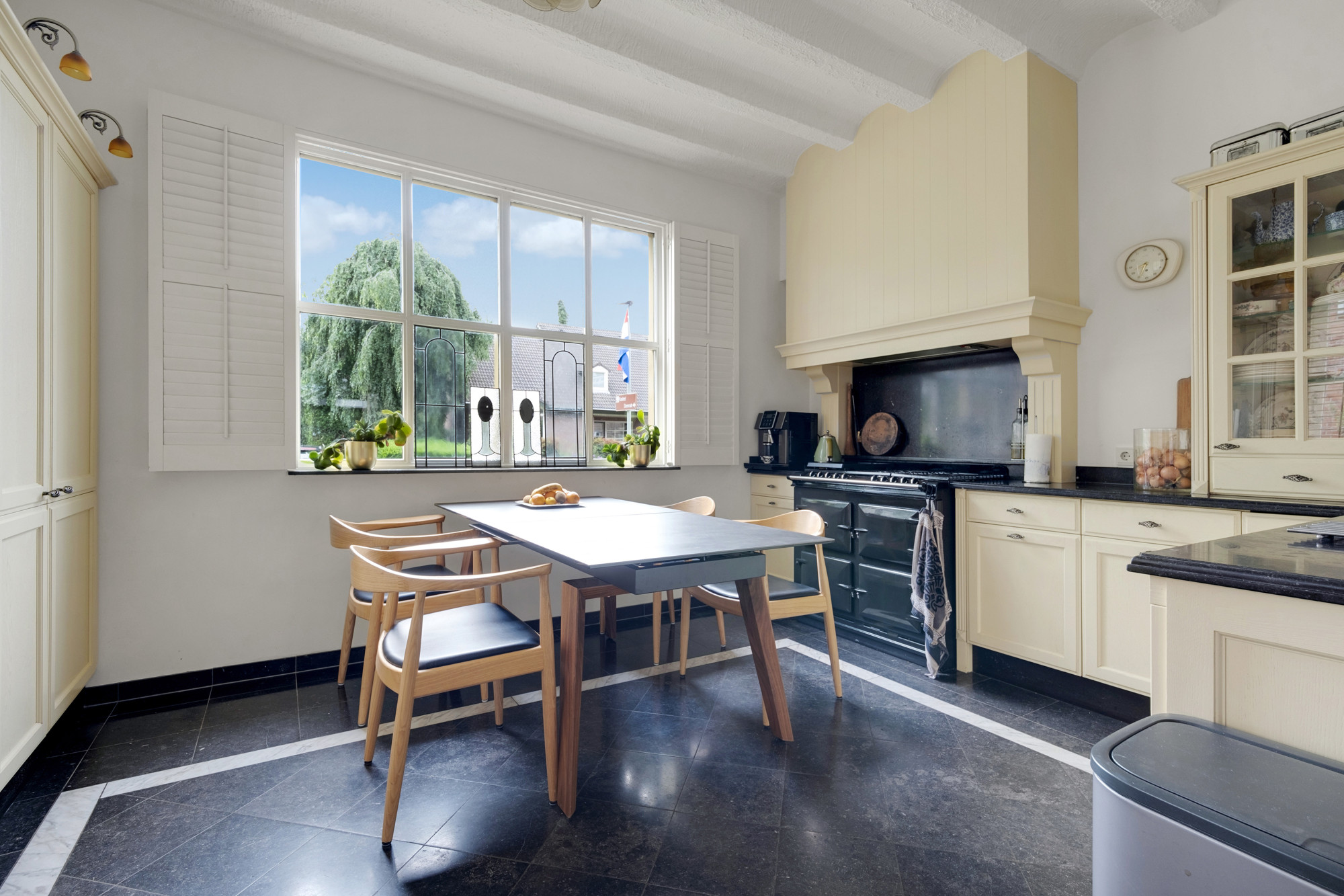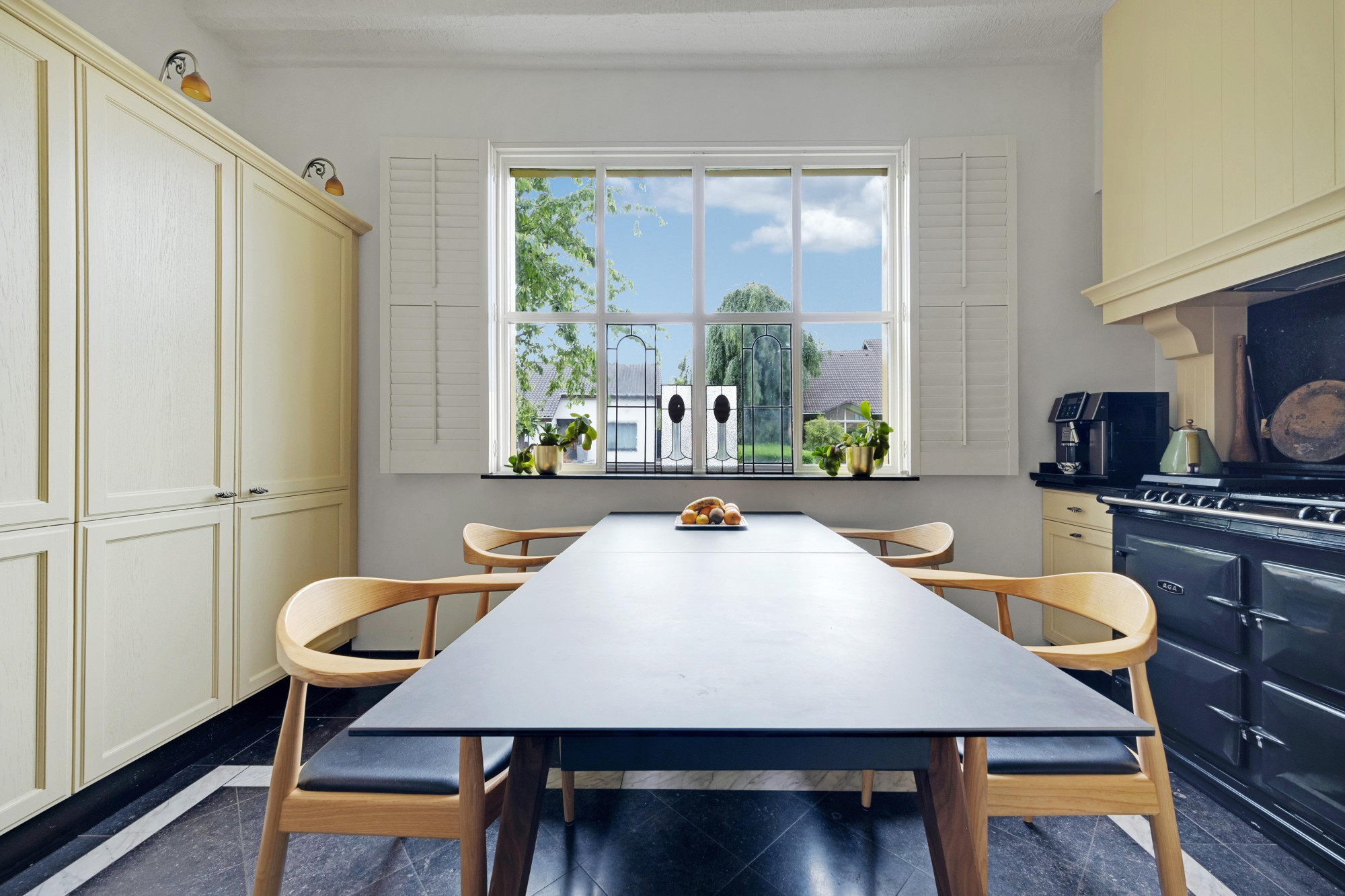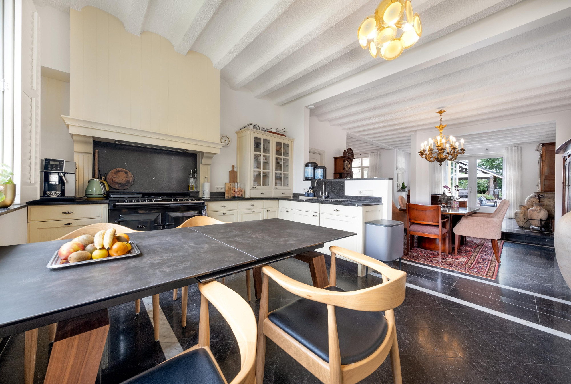 - Grote open leefkeuken in landhuisstijl (4.46mx3.50m) en aanbouwkeuken inclusief apparatuur w.o.: aga fornuis met 6 pitten en 4 electrische ovens, afzuigkap, vaatwasser (1 jr oud), koelkast.