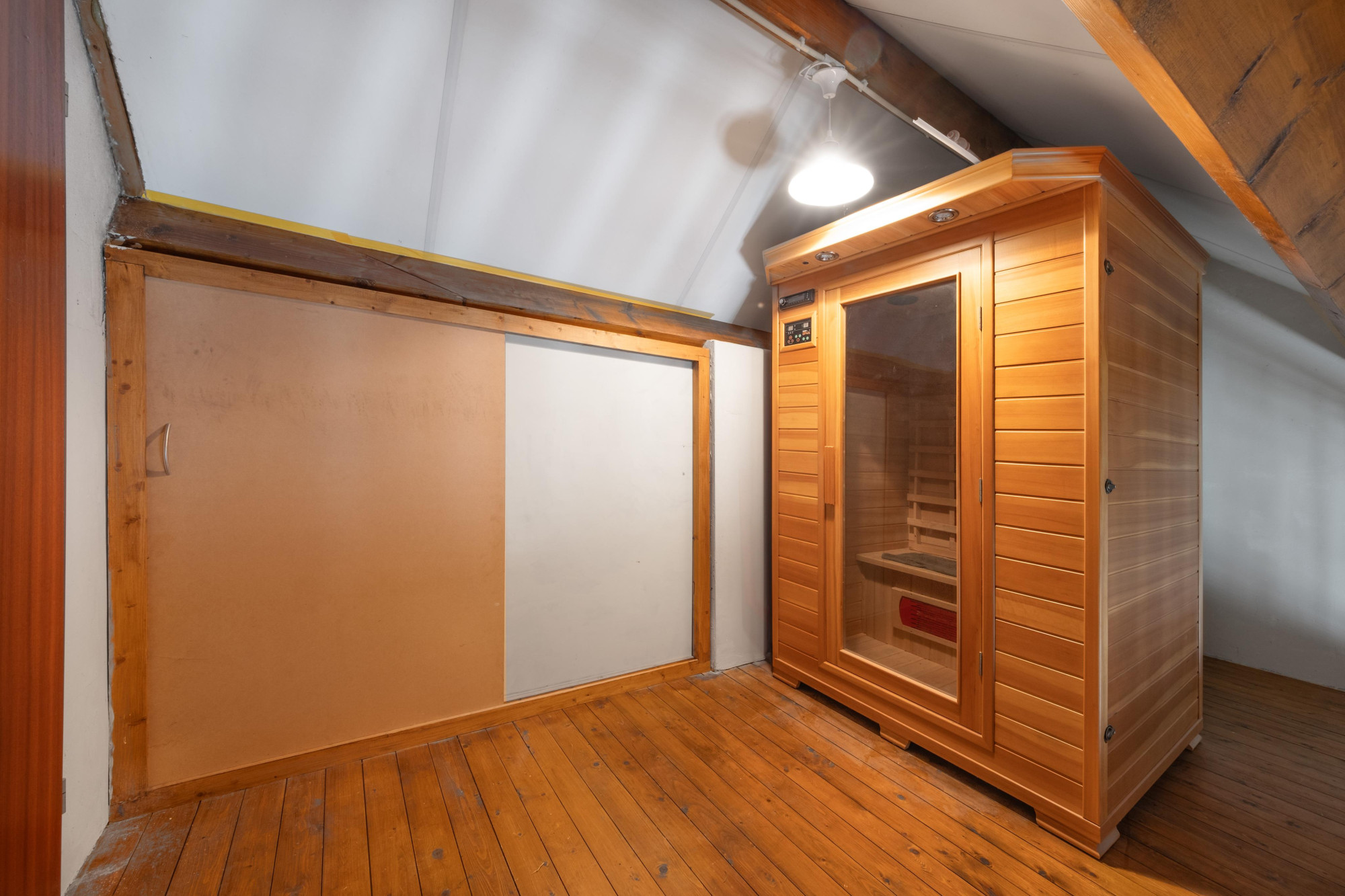 - Vaste trap naar zolderberging(3.47mx3.25m) opstelplaats cv-ketel nefit, (eigendom) en opstelplaats oplader voor de zonnepanelen. (16 stuks, eigendom).
