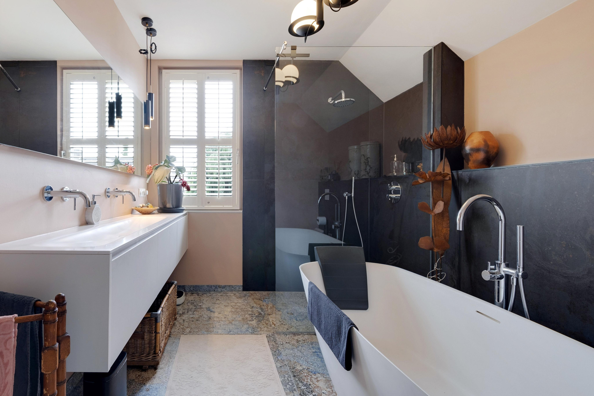 - Schitterende badkamer(3.51mx2.56m) aparte grote inloopdouche, dubbele vaste wastafel, 2e zwevend toilet, vrijstaand ligbad, sierradiator.
