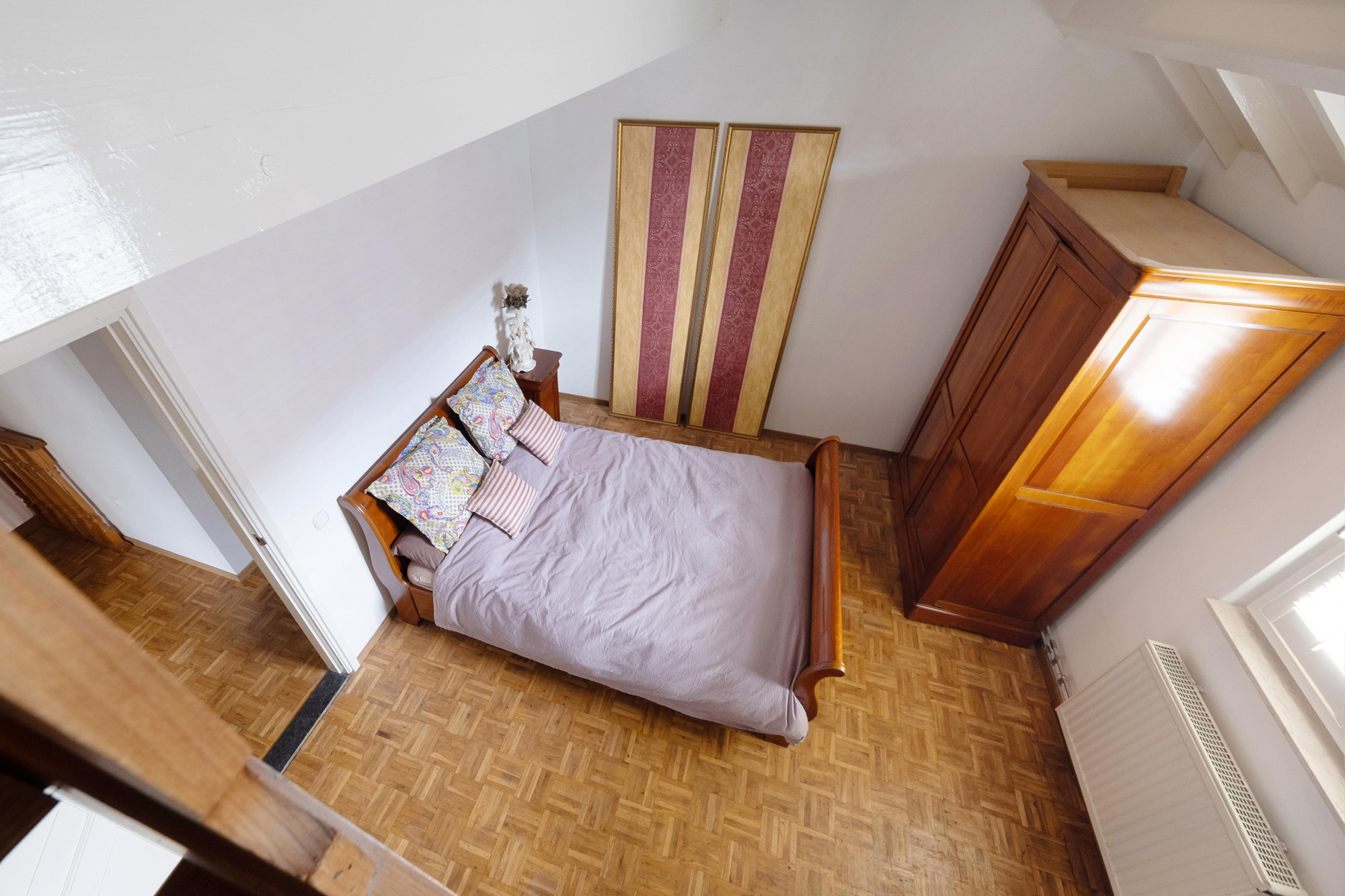 - Slaapkamer (4.48mx3.87m) met parketvloer en vide(4.48mx2.25m) bergruimte.