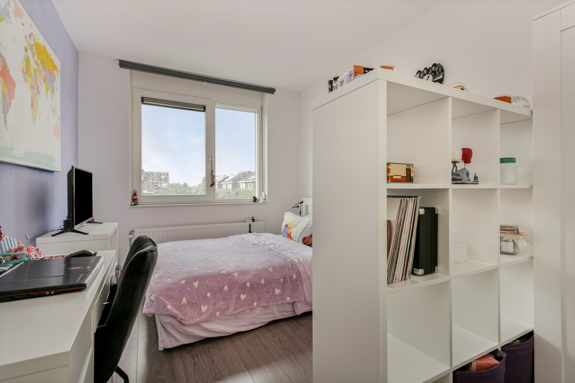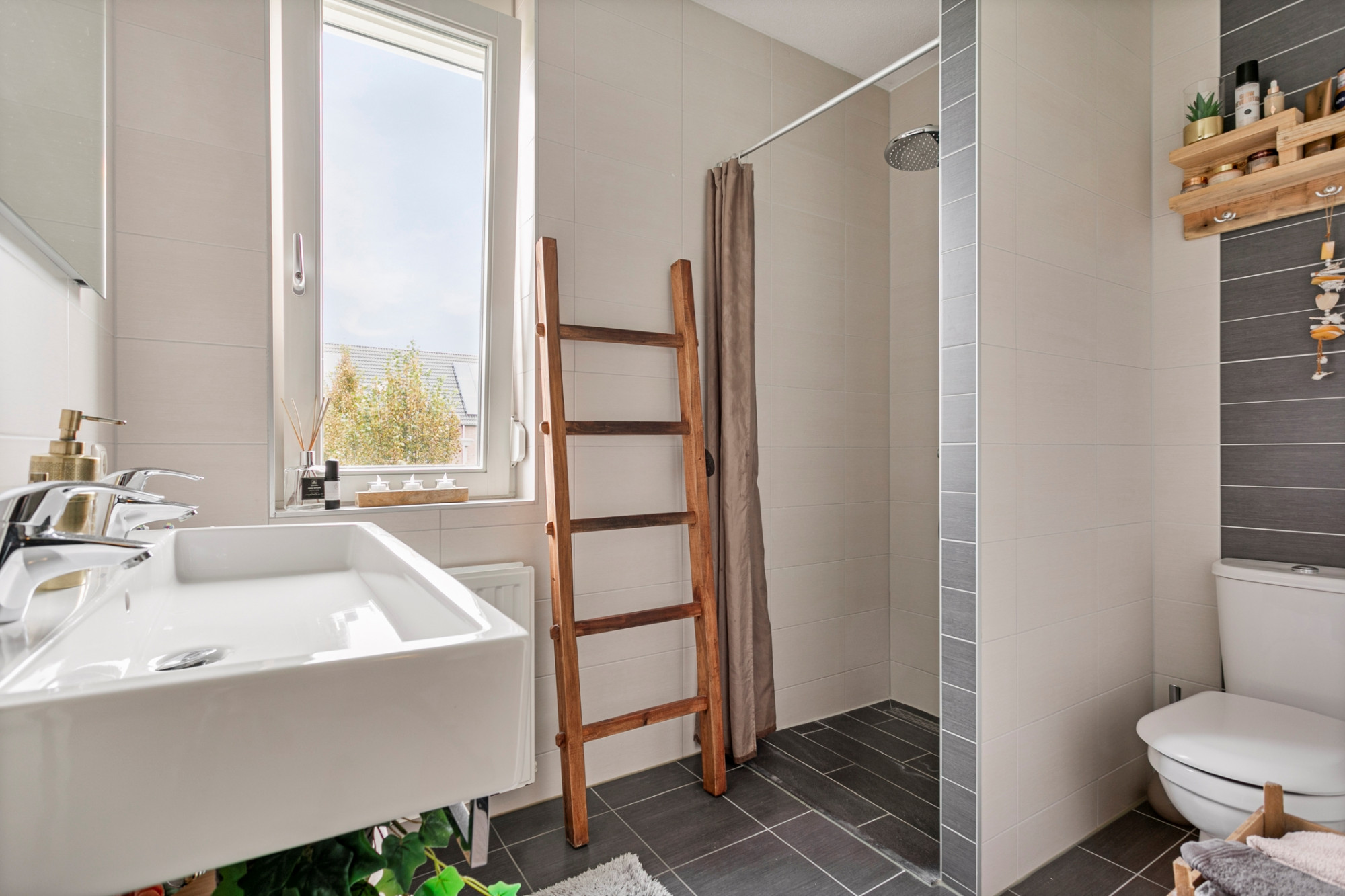 De overloop biedt toegang naar alle vertrekken. Slaapkamer 1 en 2 (12 m² en 8m²) zijn gelegen aan de achterzijde van de woning. Slaapkamer 3 (9m²) is gelegen aan de voorzijde van de woning. Alle slaapkamers op deze verdieping zijn voorzien van een laminaatvloer. De moderne badkamer (5m²) is voorzien van een inloopdouche, dubbele vaste wastafel en 2e toilet.