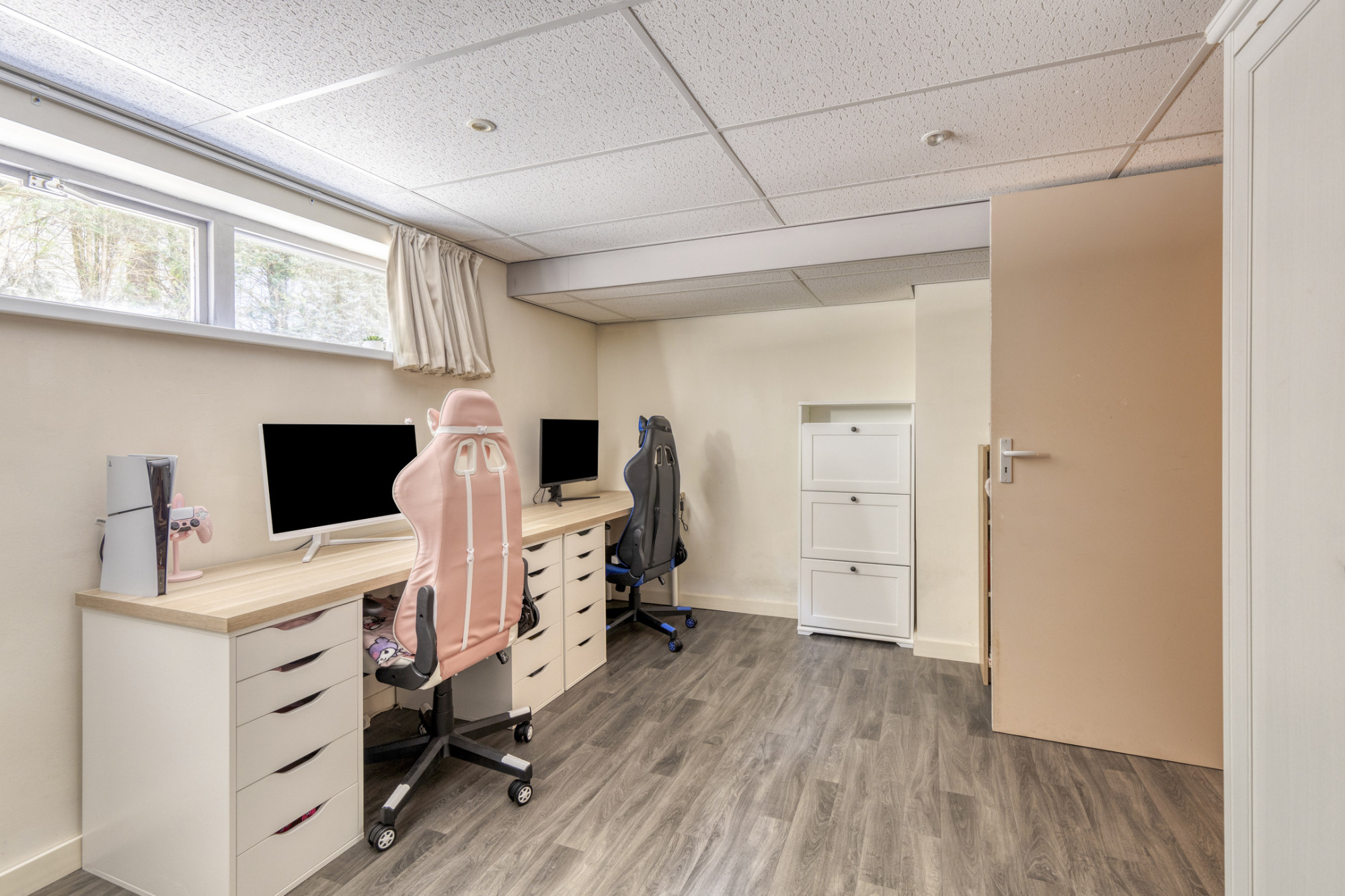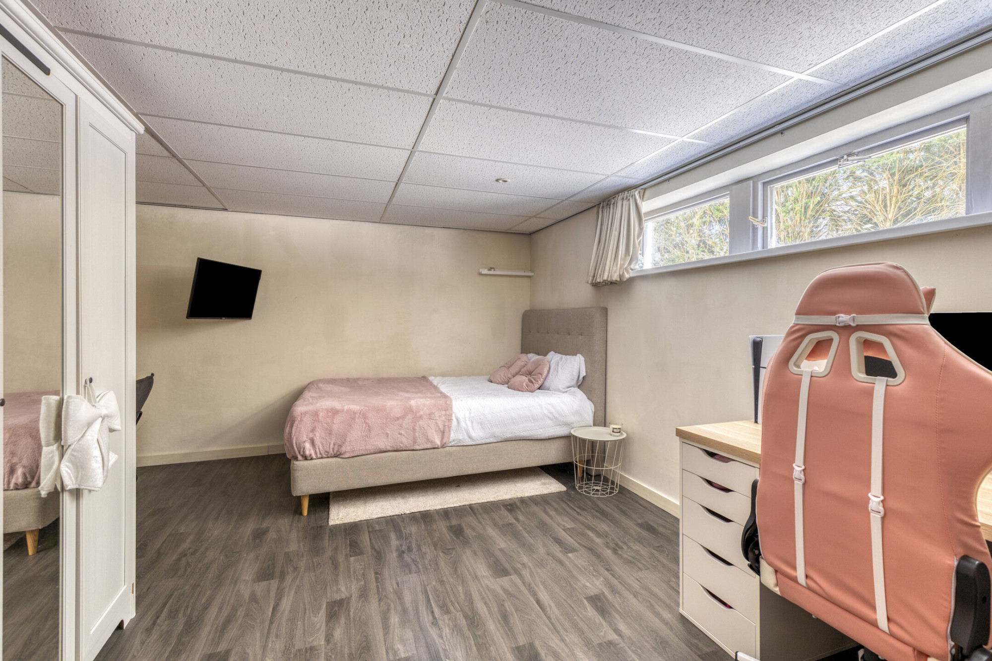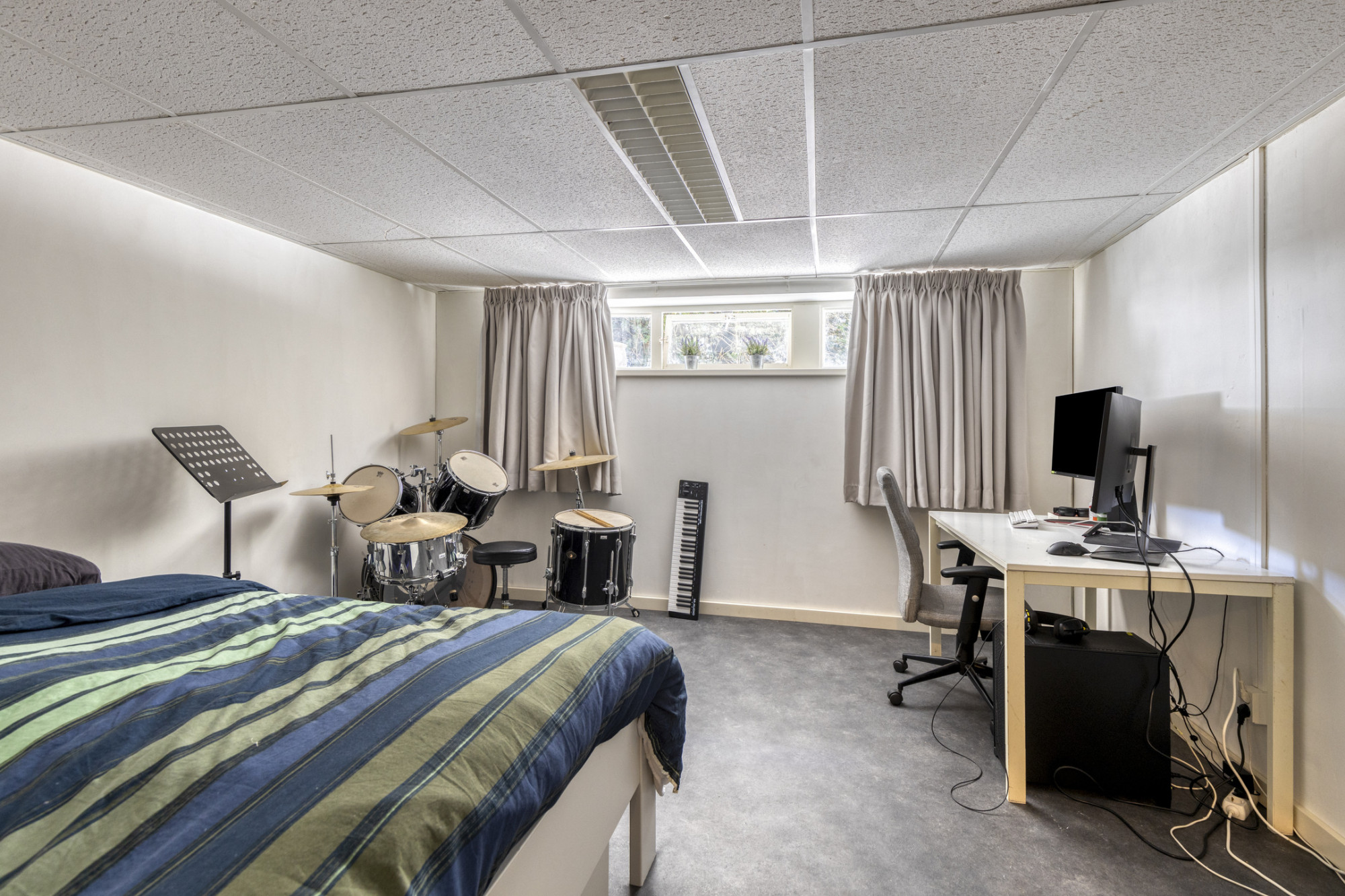 Multi-functionele ruimte die thans wordt gebruikt als tv/hobbykamer. 2 kamers met lichtinval die worden gebruikt als logeerkamer. Provisieruimte. Wasruimte met aansluitpunten wasapparatuur en opstelplaats cv installatie (2008, eigendom heteluchtverwarming Brink Allure) en cv toestel Intergas Prestige (2020, eigendom) die voor het warme water zorgt. Ruime garage met extra fietsenberging. De garage is voorzien van een elektrische, geïsoleerde sectionaalpoort. Vanuit de wasruimte is er een deur naar de achtertuin.