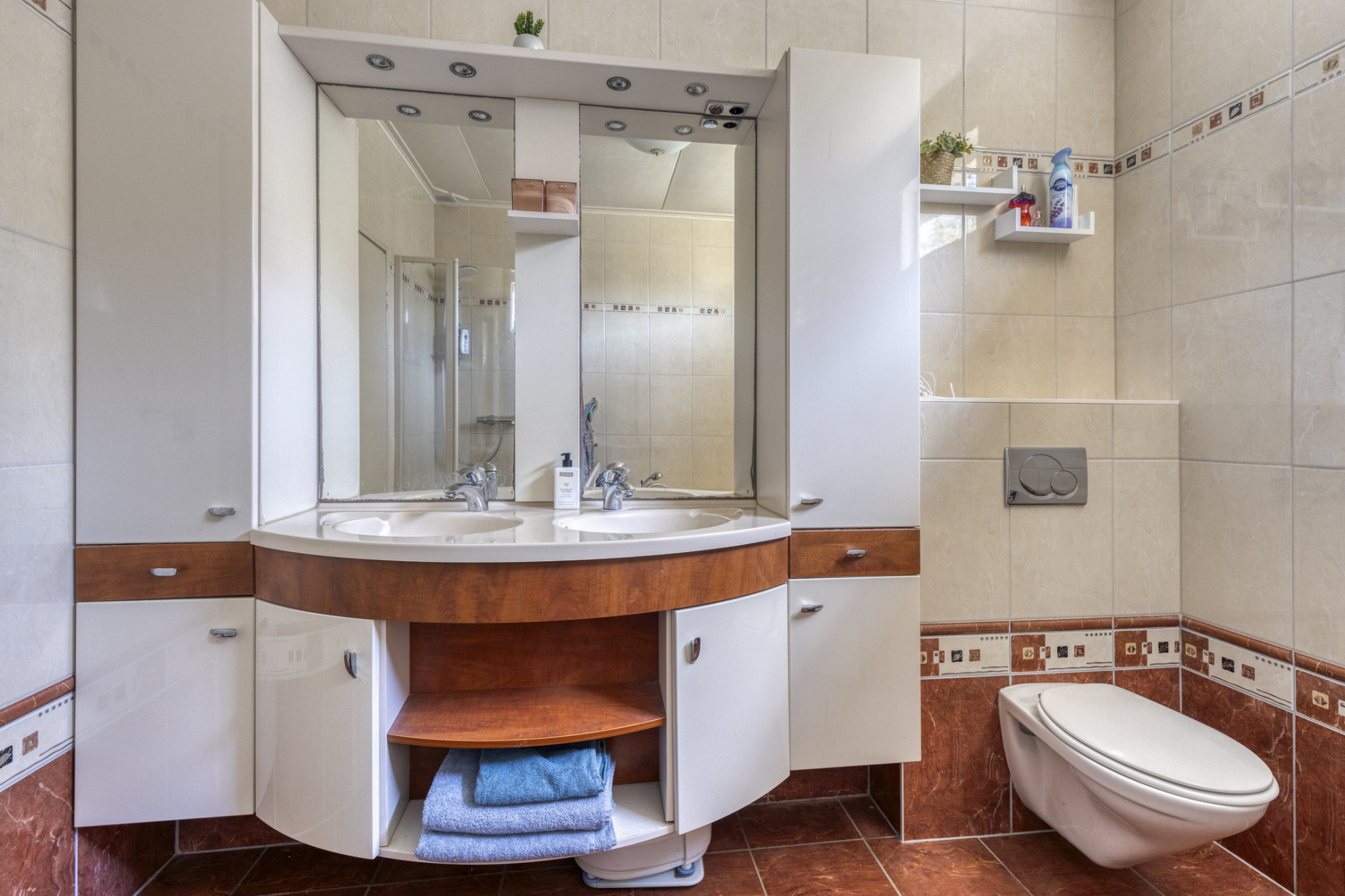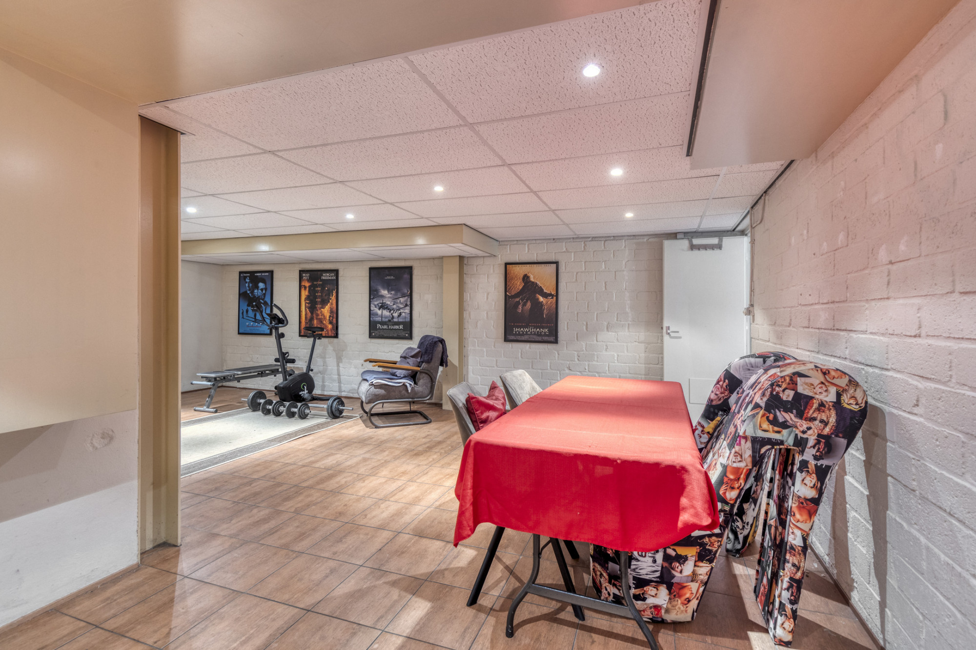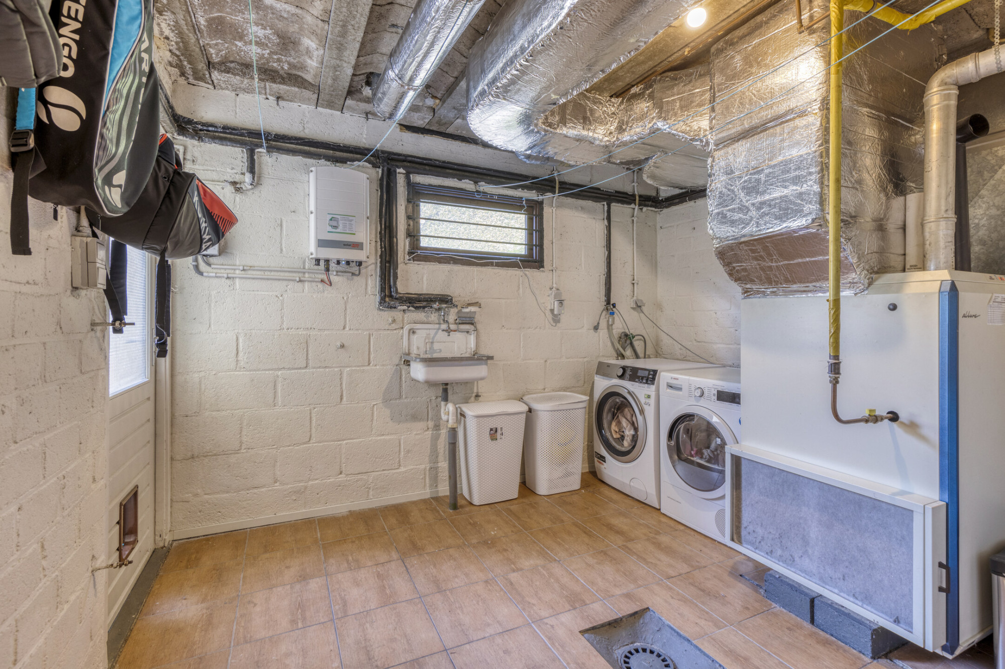 Multi-functionele ruimte die thans wordt gebruikt als tv/hobbykamer. 2 kamers met lichtinval die worden gebruikt als logeerkamer. Provisieruimte. Wasruimte met aansluitpunten wasapparatuur en opstelplaats cv installatie (2008, eigendom heteluchtverwarming Brink Allure) en cv toestel Intergas Prestige (2020, eigendom) die voor het warme water zorgt. Ruime garage met extra fietsenberging. De garage is voorzien van een elektrische, geïsoleerde sectionaalpoort. Vanuit de wasruimte is er een deur naar de achtertuin.