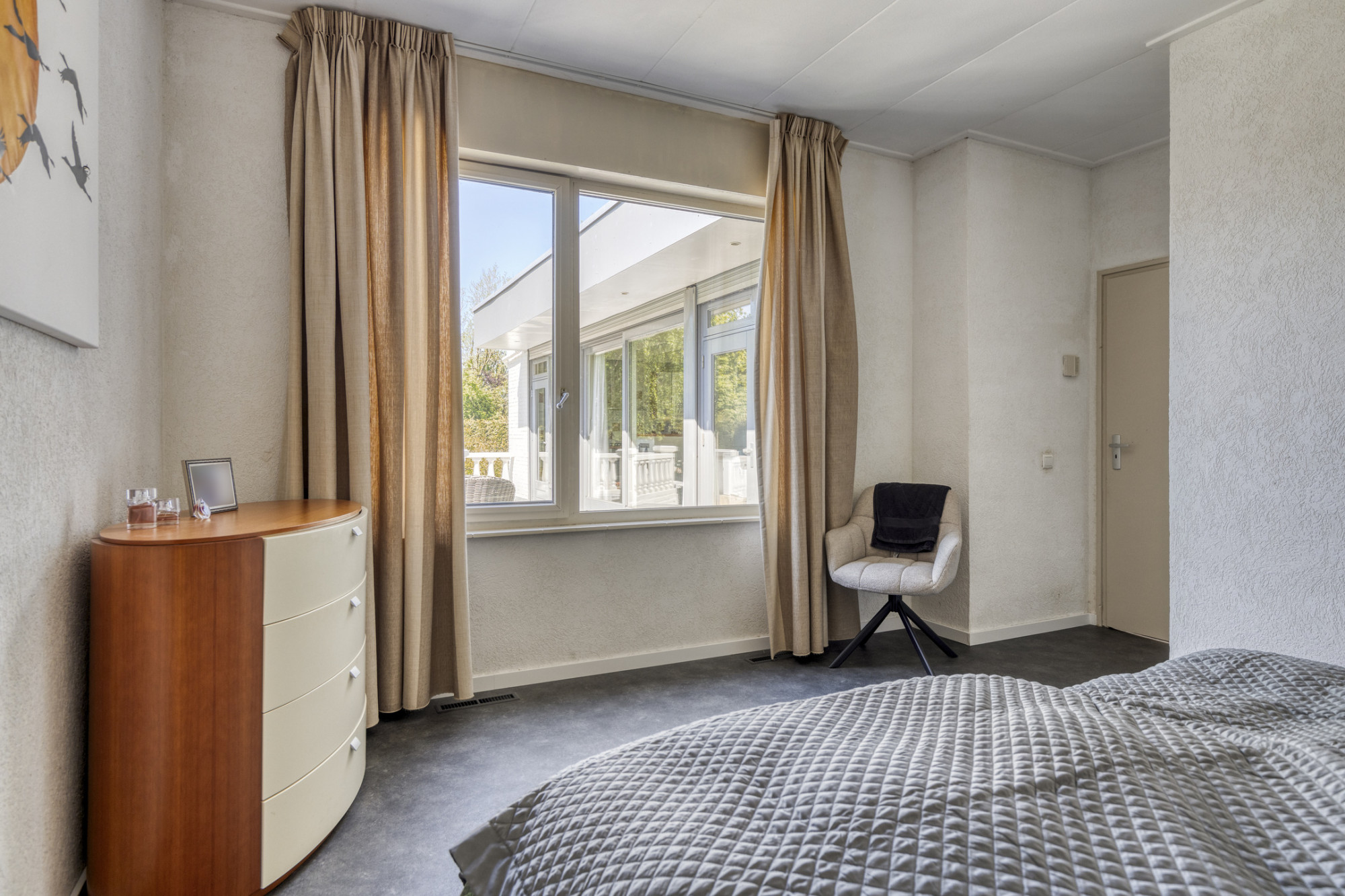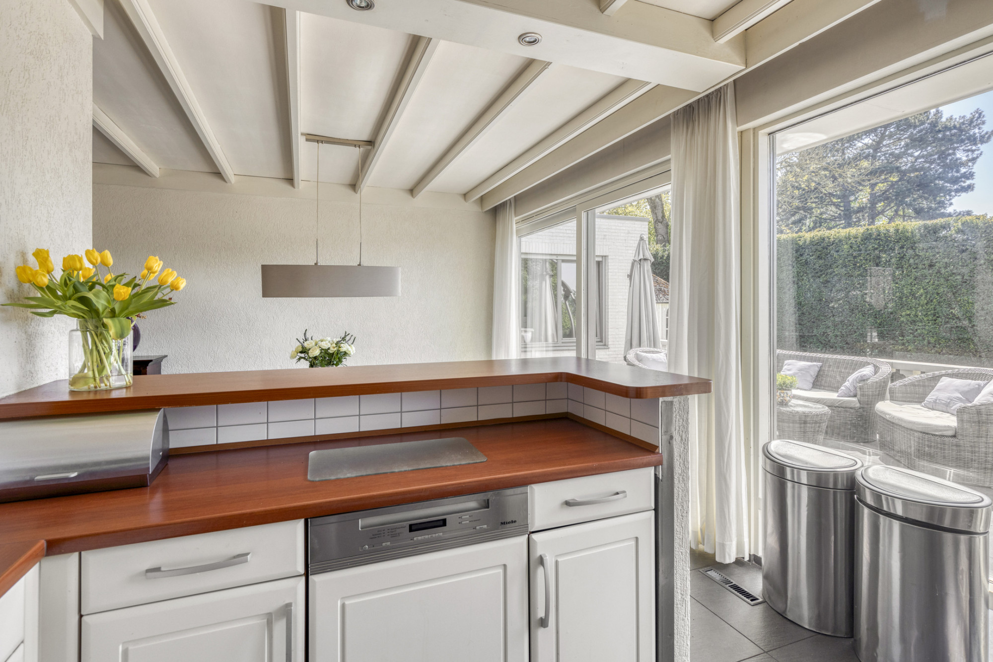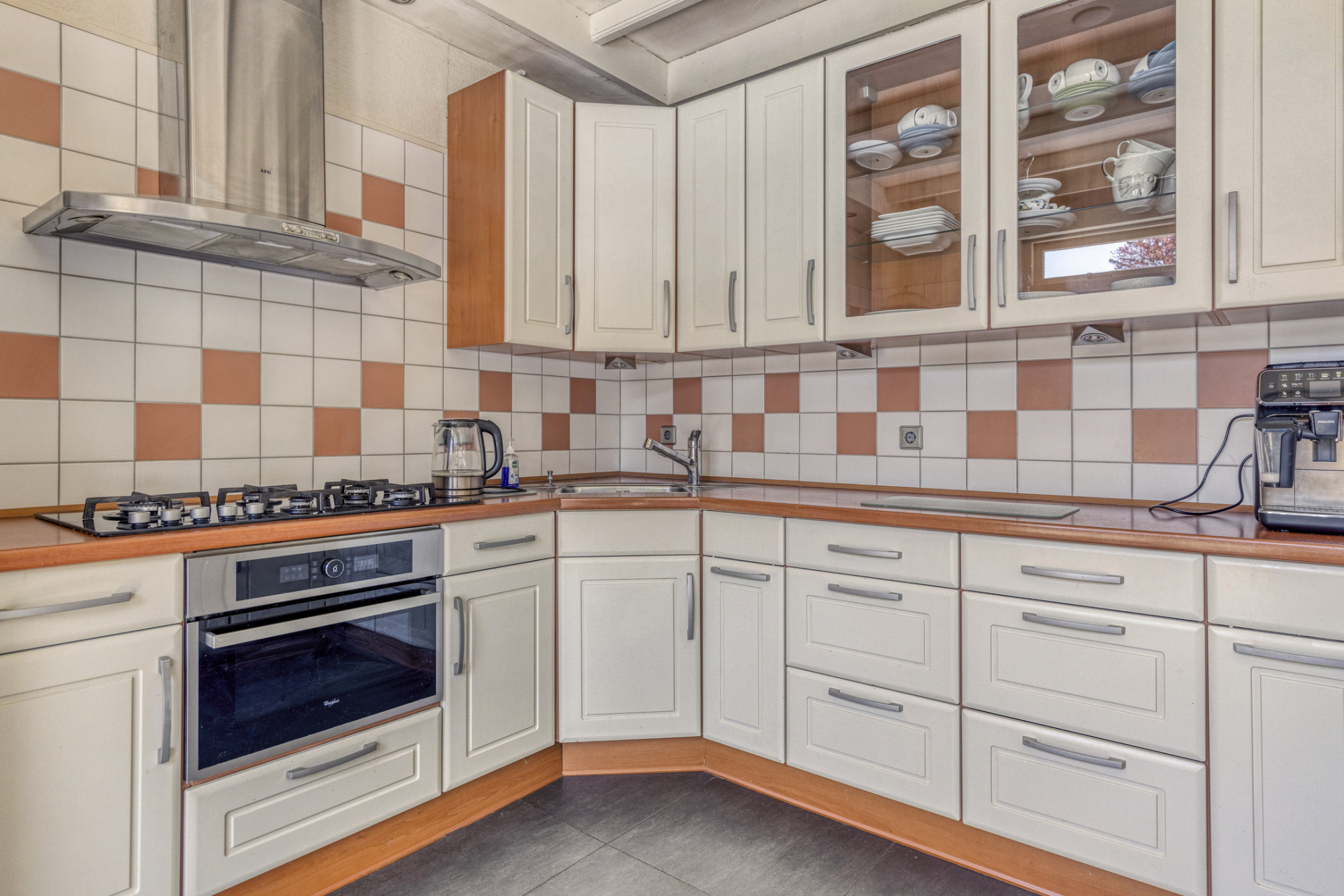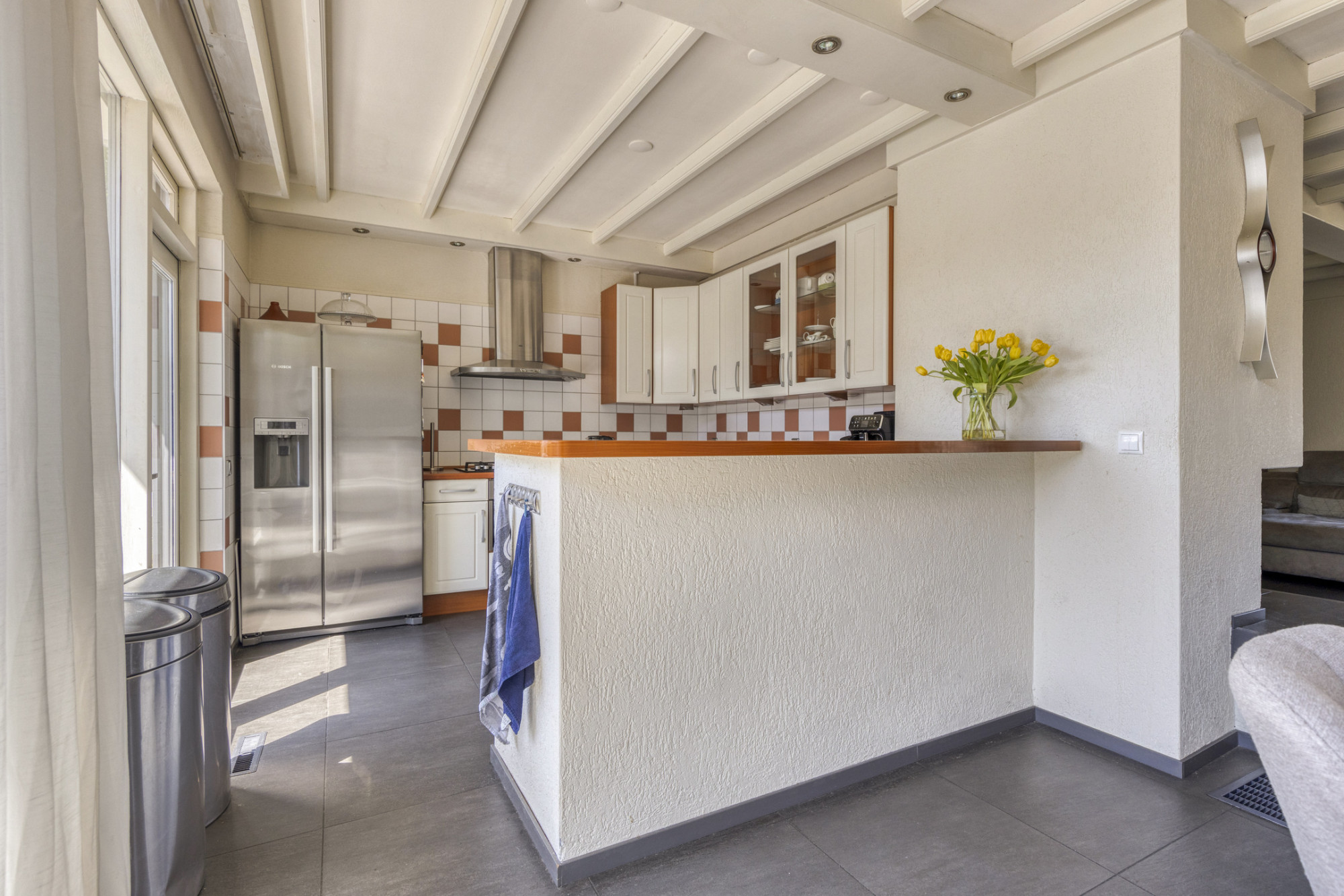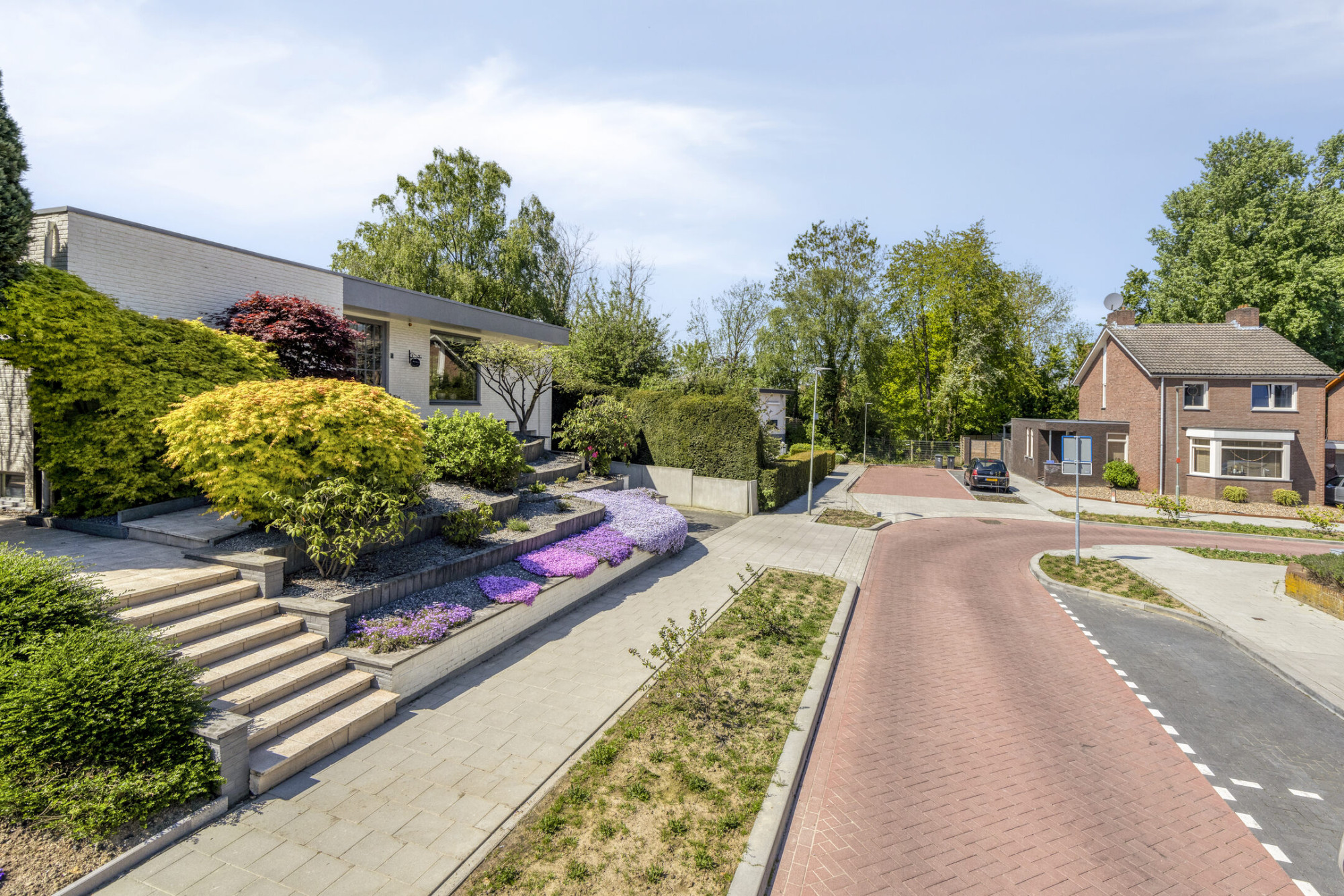 Voortuin met diverse beplantingen en enkele trappen naar de voordeur. Ruime inkomhal met toegang naar de diverse ruimten. Meterkast, toiletruimte en verdiepingstrap naar souterrain. L-vormige woonkamer met open haard en schuifpui naar het zonneterras en de achtertuin. Half open keukenruimte met een keukeninstallatie in hoekopstelling met diverse inbouwapparatuur. Vanuit de keuken is er een toegangsdeur naar het zonneterras. Er zijn een 4-tal slaapkamers waarvan 2 slaapkamers met vaste wastafel en muurkast en 1 slaapkamer heeft een toegangsdeur naar het zonneterras.