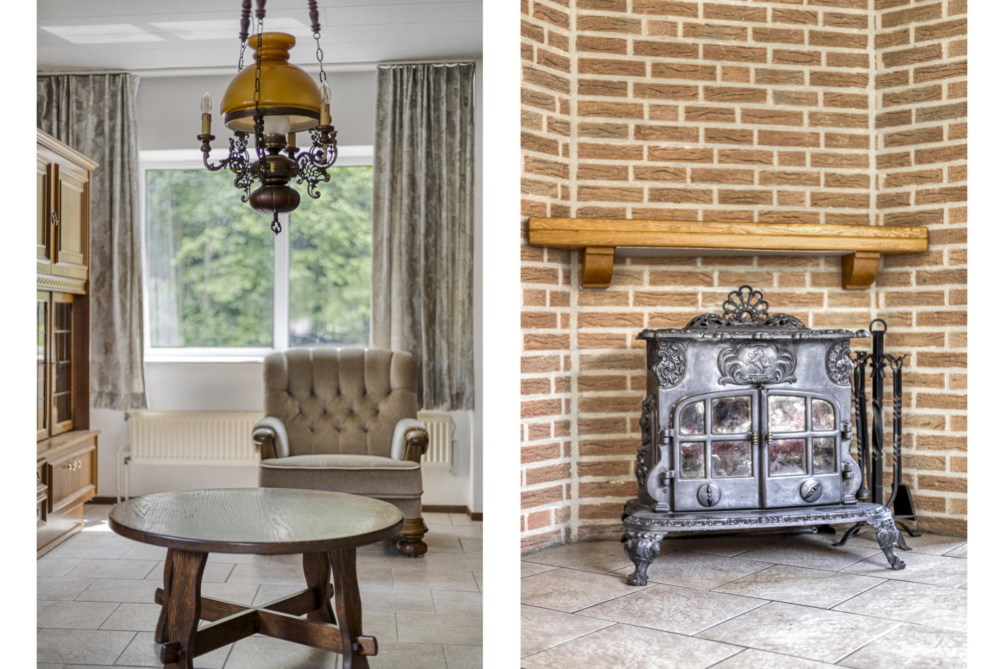 Woonkamer (8.92 x 3.48 m) voorzien van tegelvloer en met houtkachel. Vanuit de woonkamer is het balkon met uitzicht te bereiken.