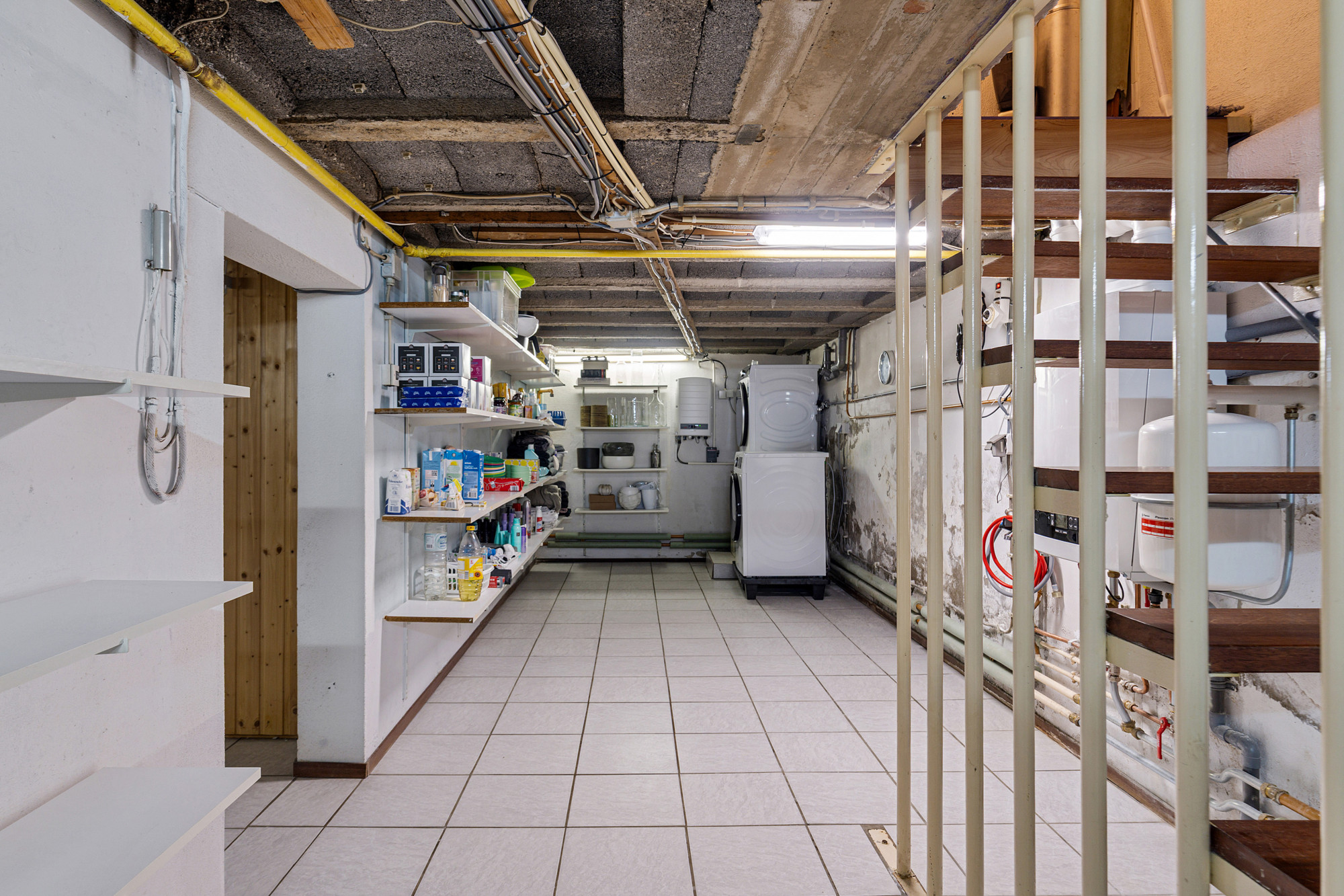 De keldervloer is geheel betegeld en de ruimte is verwarmd.