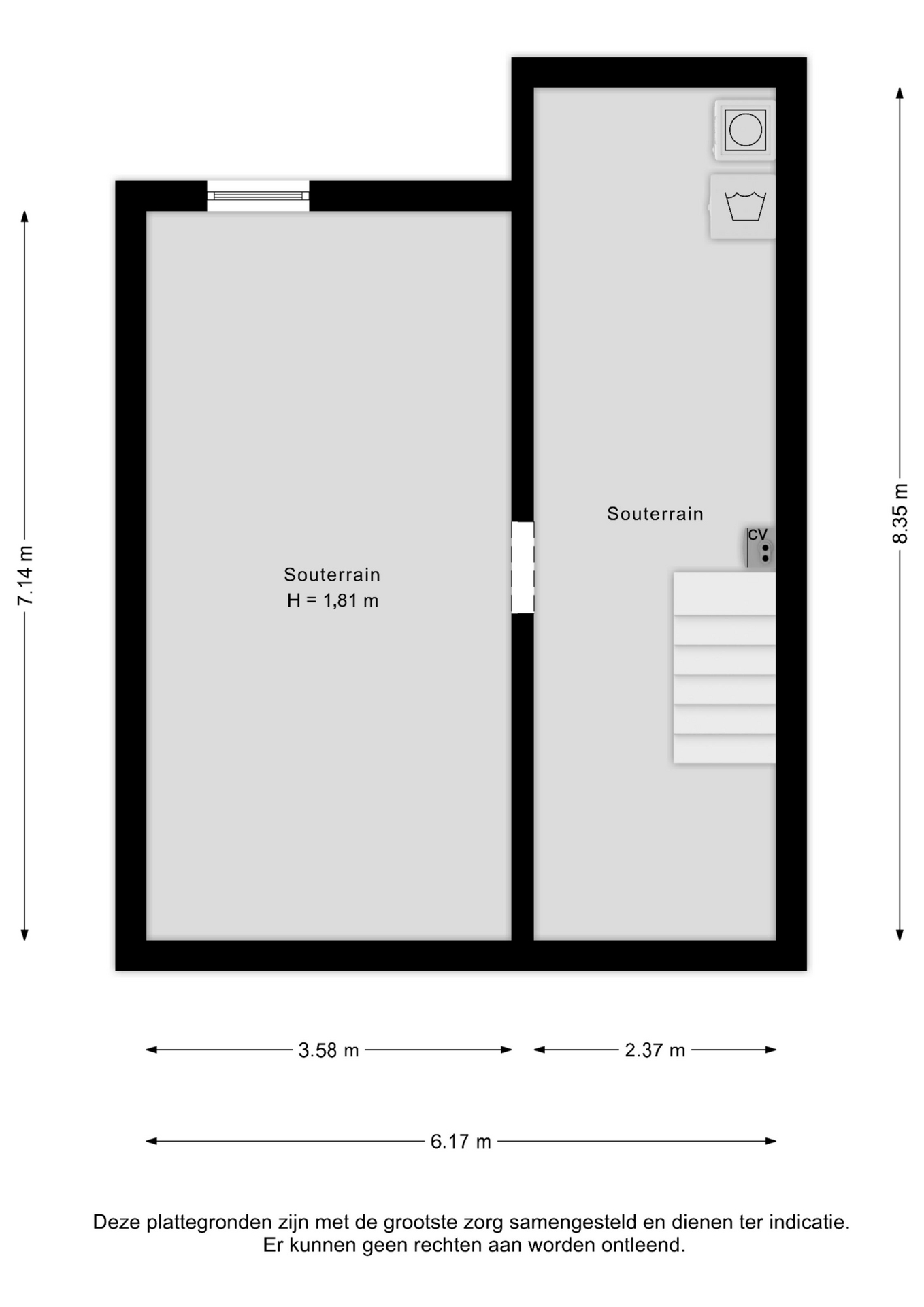 Geheel “onderkelderd verdeeld in twee ruimtes, alwaar standplaats c.v. (eigendom, 2024) en aansluiting wasautomaat.