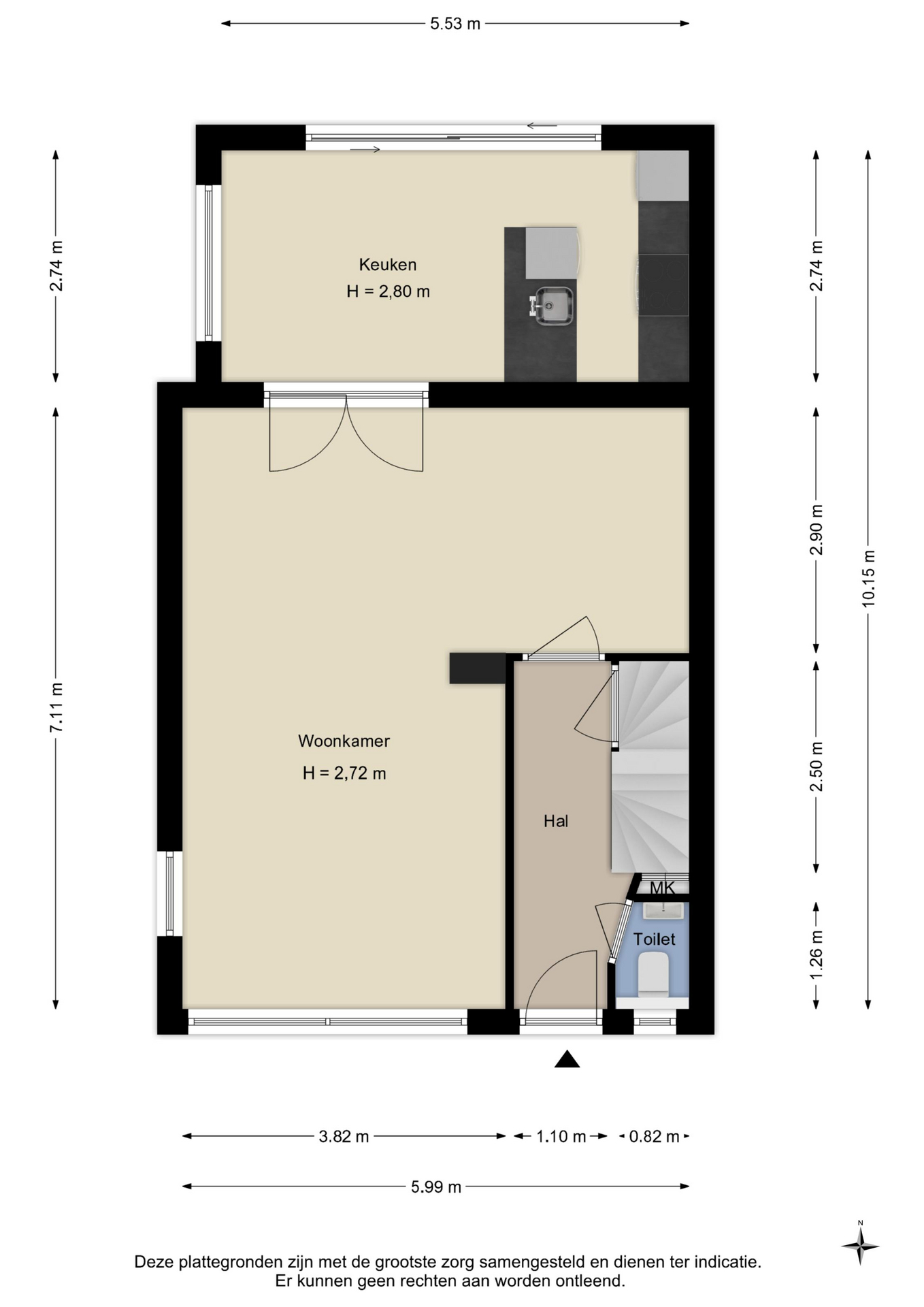 Alle door ons kantoor verstrekte informatie omtrent onroerende zaken, moet beschouwd worden als een uitnodiging om in onderhandeling te treden, en is geheel vrijblijvend! Alle vermelde maten en afmetingen zijn slechts bij benadering. Aan deze beperkte info kunnen geen rechten worden ontleend. Indien in enige documentatie of op enige website informatie staat die niet overeen komt met de werkelijkheid, dan geldt de feitelijke situatie waarin de woning zich bevindt, zoals koper deze tijdens de bezichtiging heeft kunnen waarnemen, en wordt de woning in deze feitelijke situatie/staat verkocht. Een (eventueel) bijgevoegde plattegrond dient uitsluitend als globale indicatie/visualisatie. Hieraan kunnen uitdrukkelijk geen rechten worden ontleend.