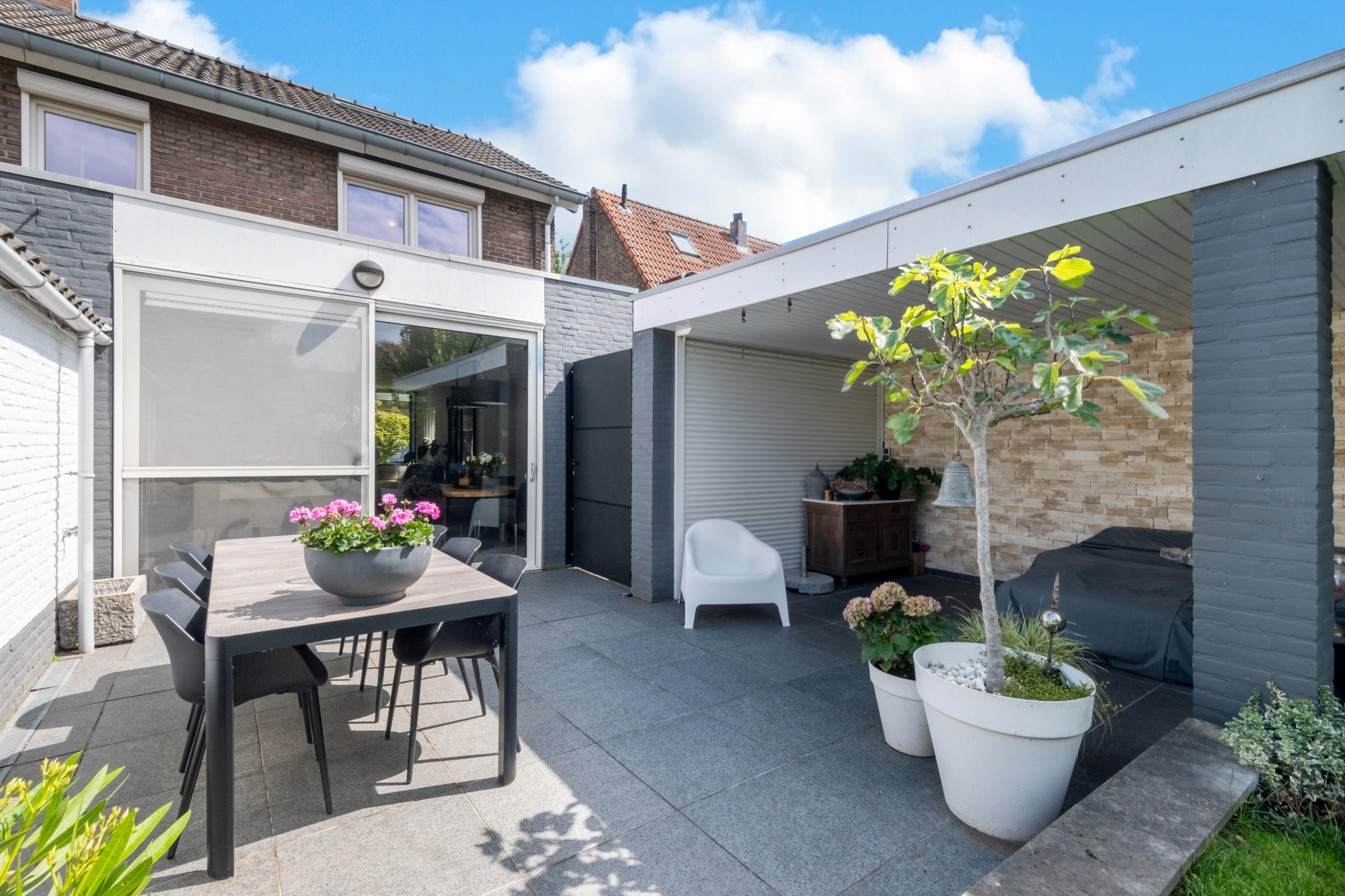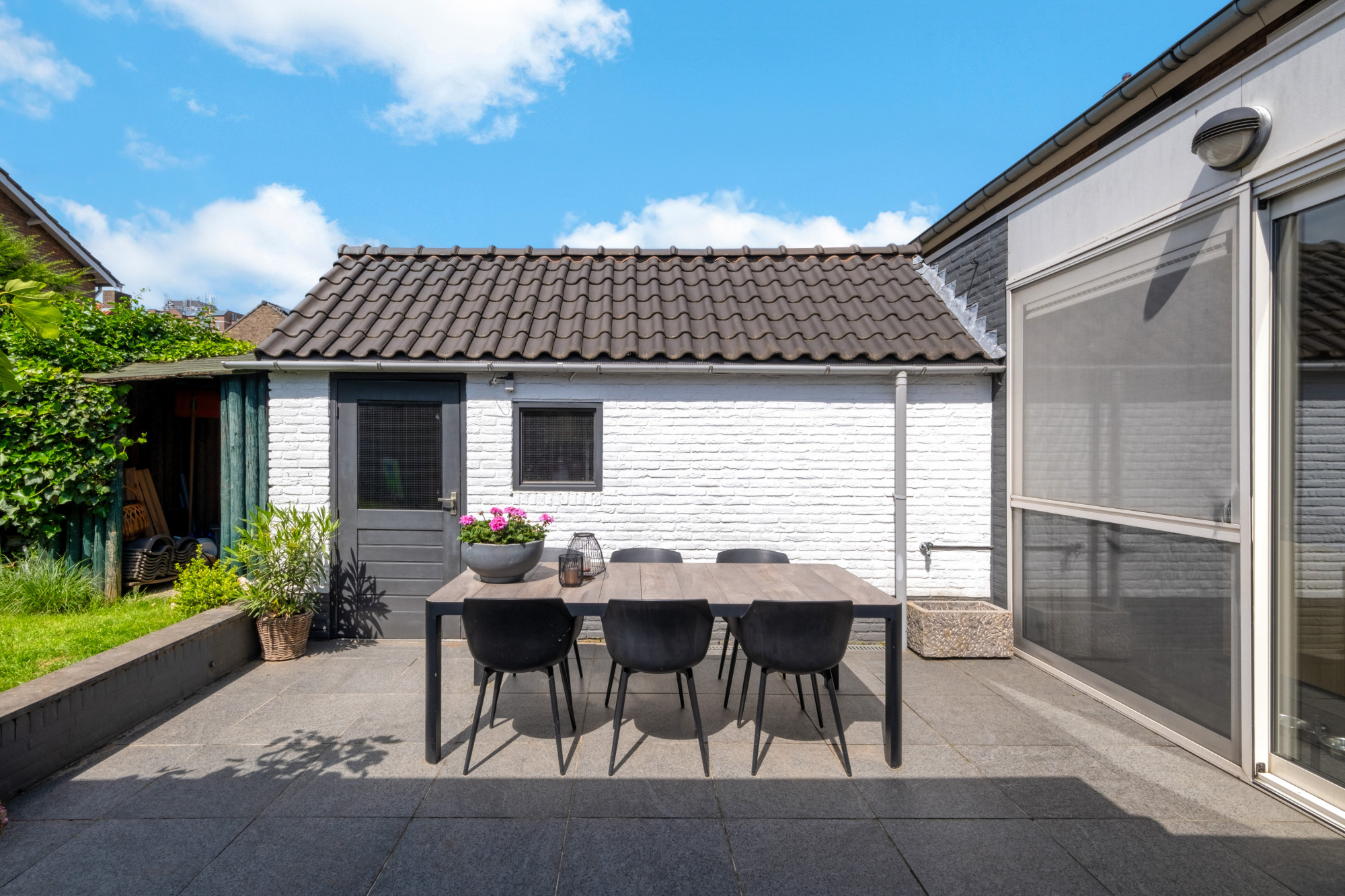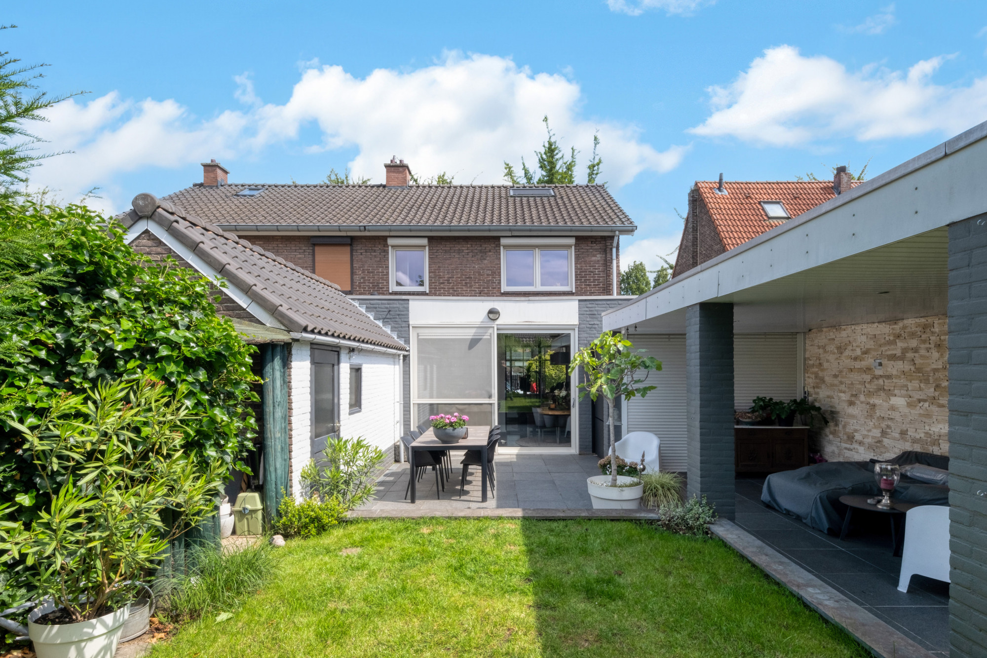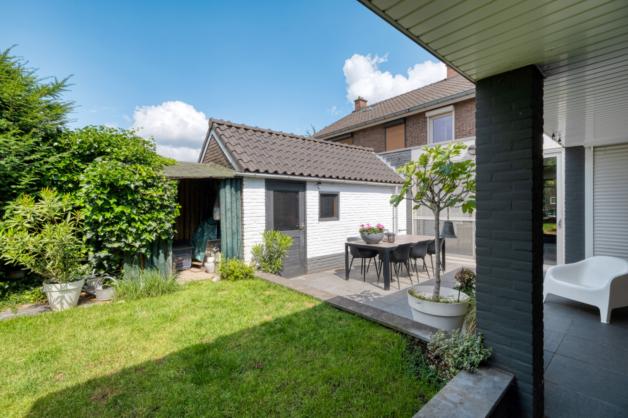 - Tuin met optimale privacy, overkapping en tuinberging;