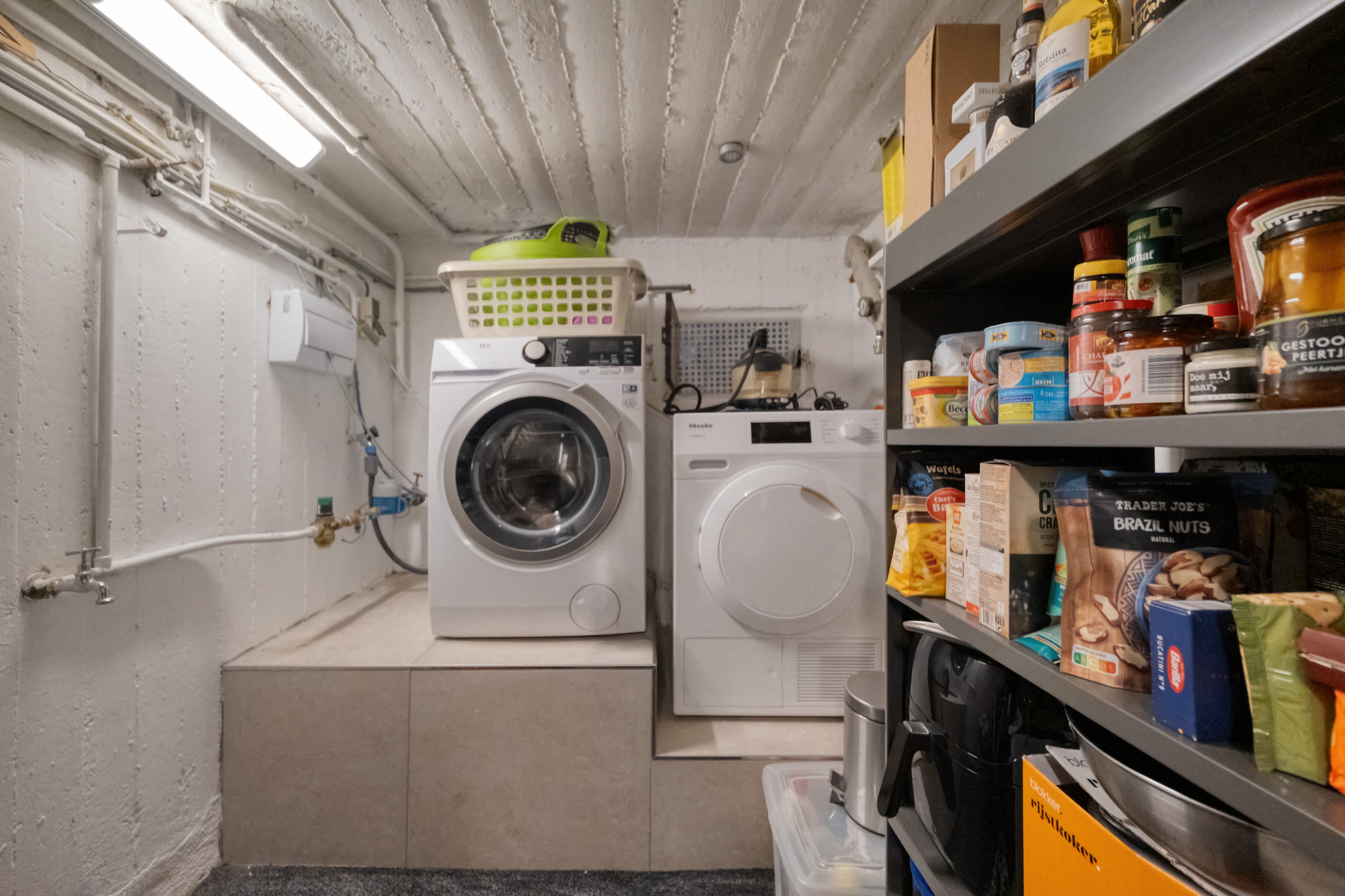 Provisiekelder met witgoedaansluitingen.
