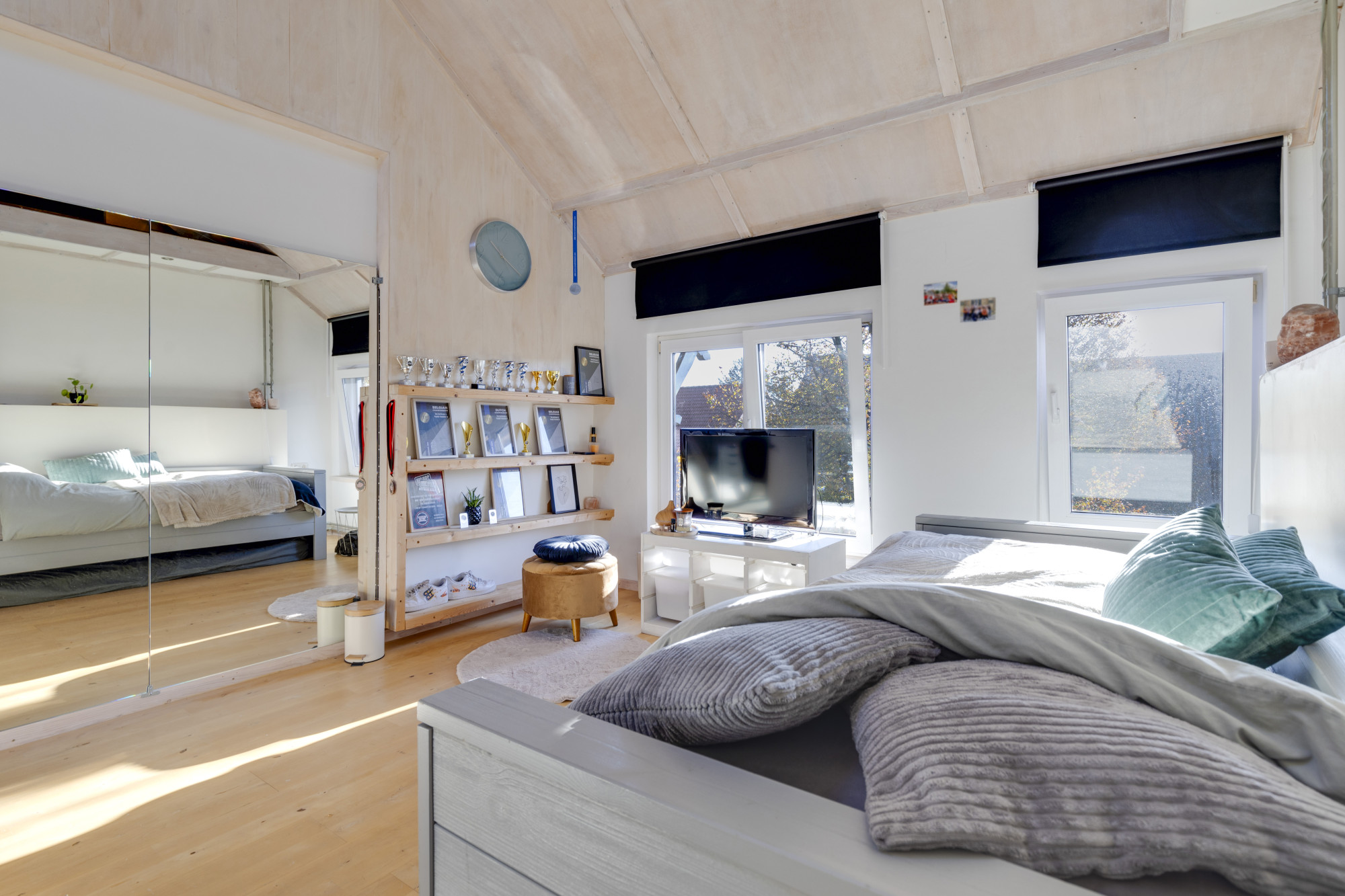- Slaapkamer 1 (10 m²) gelegen aan de achterzijde;
