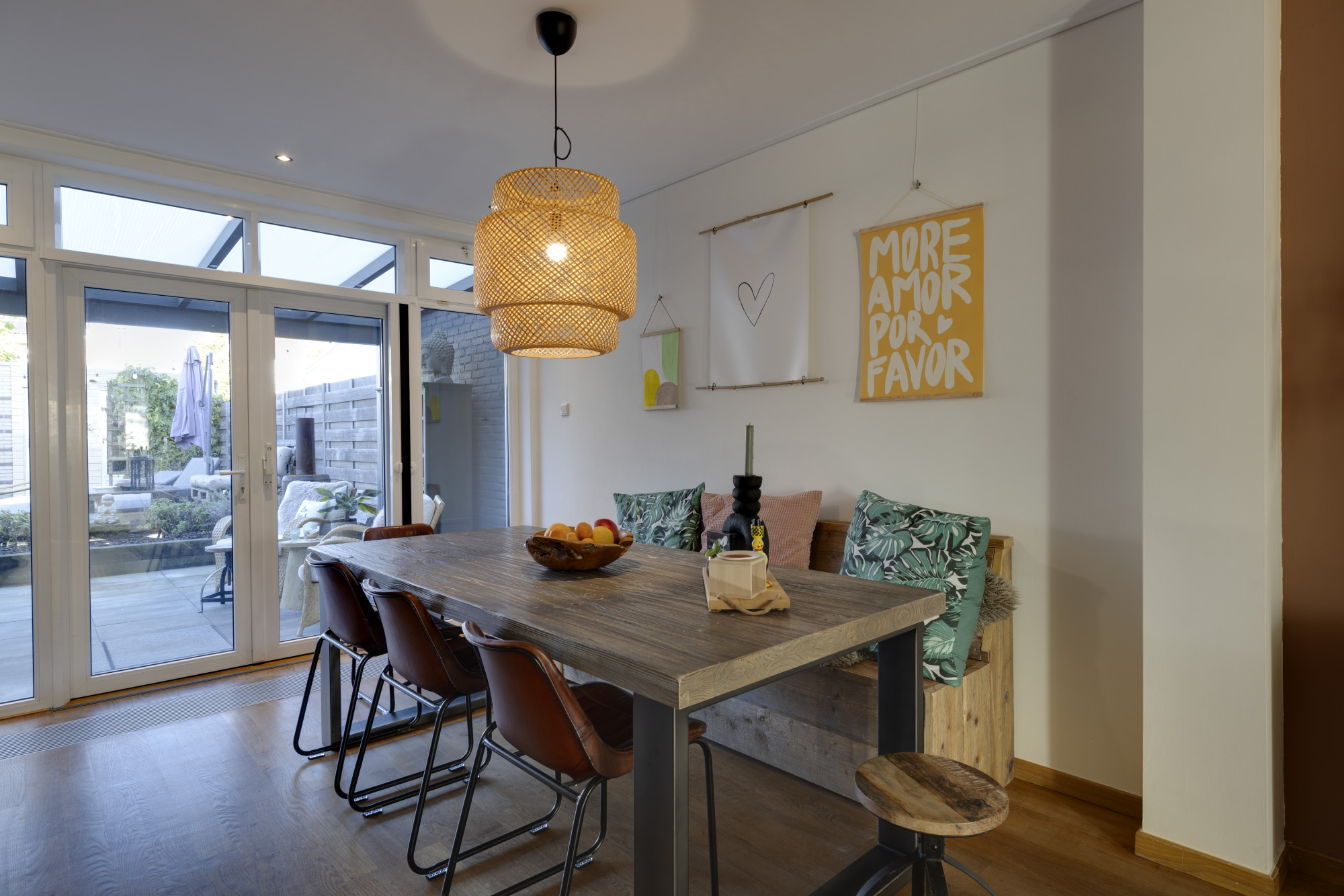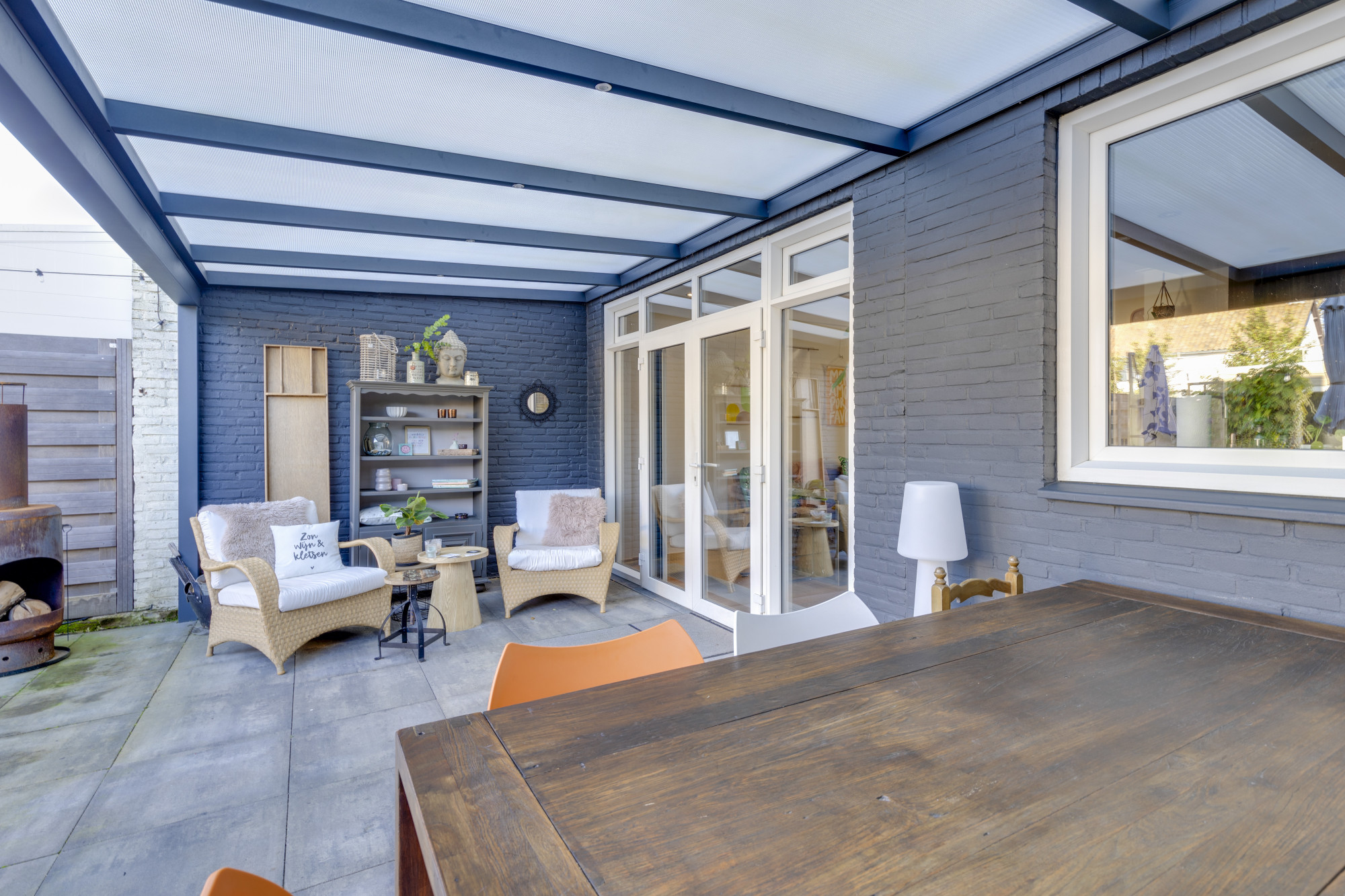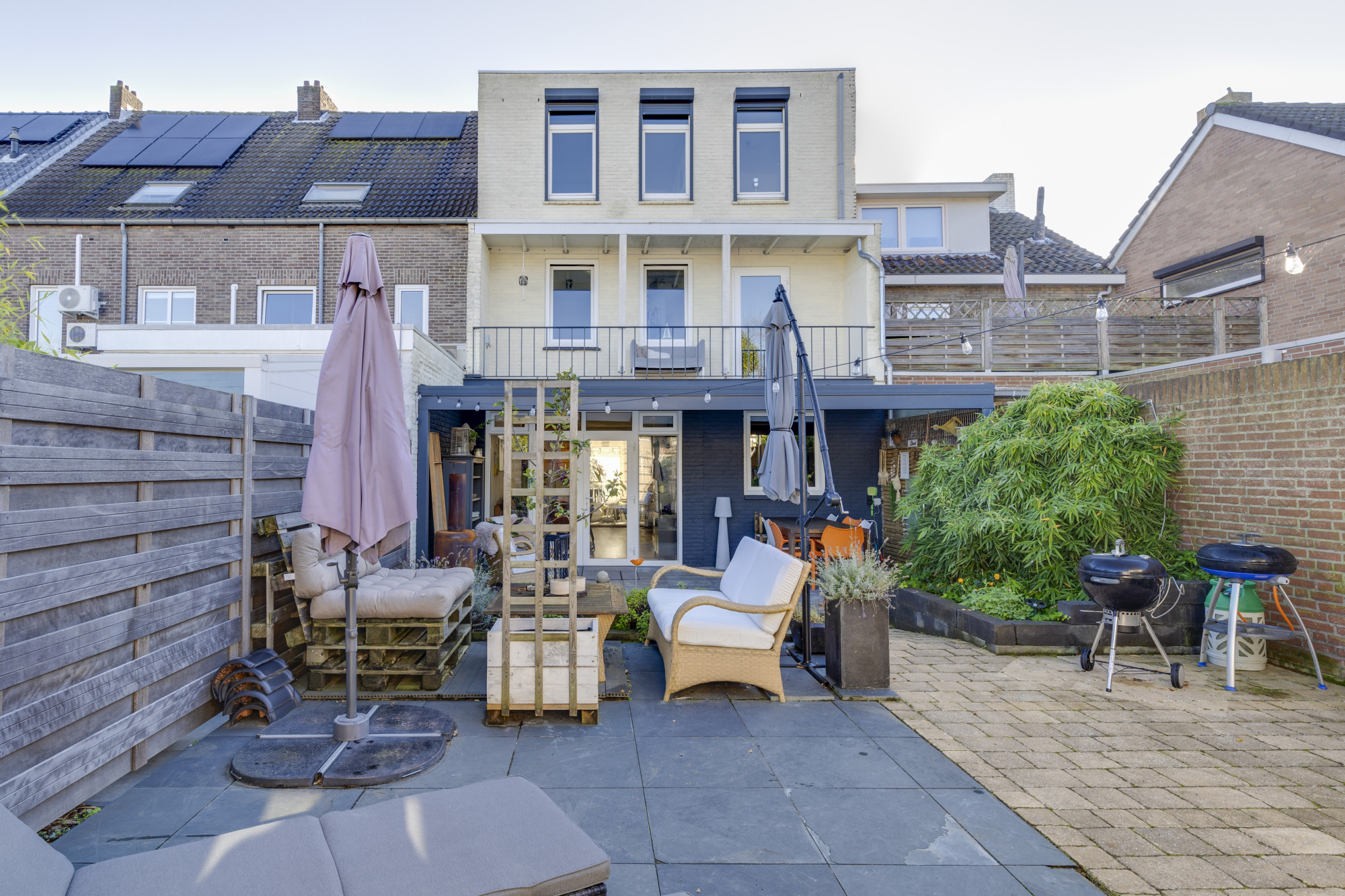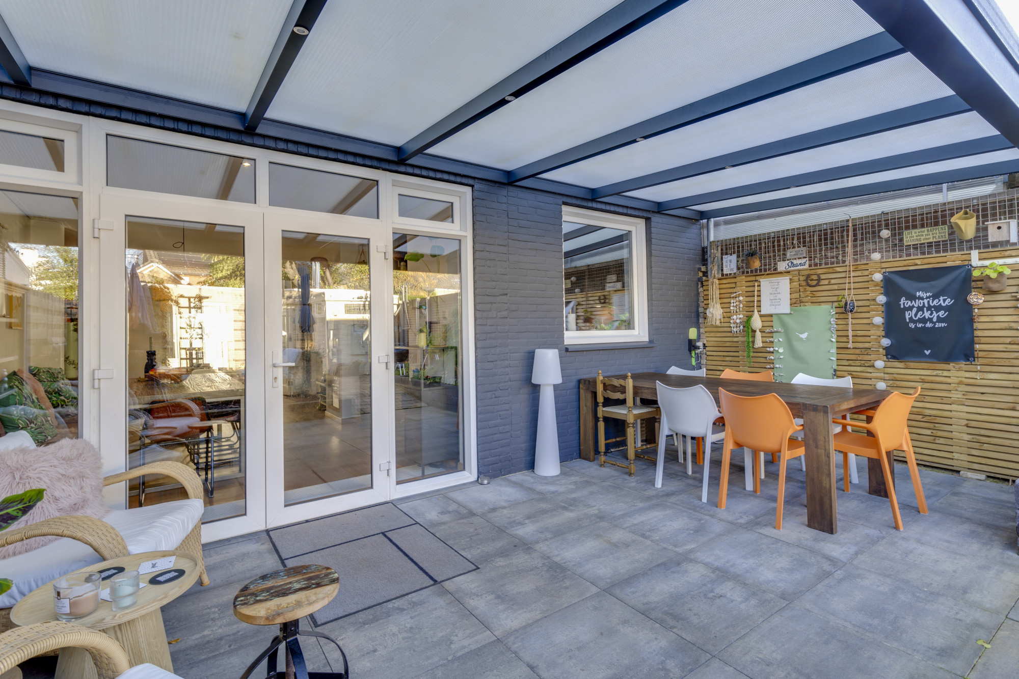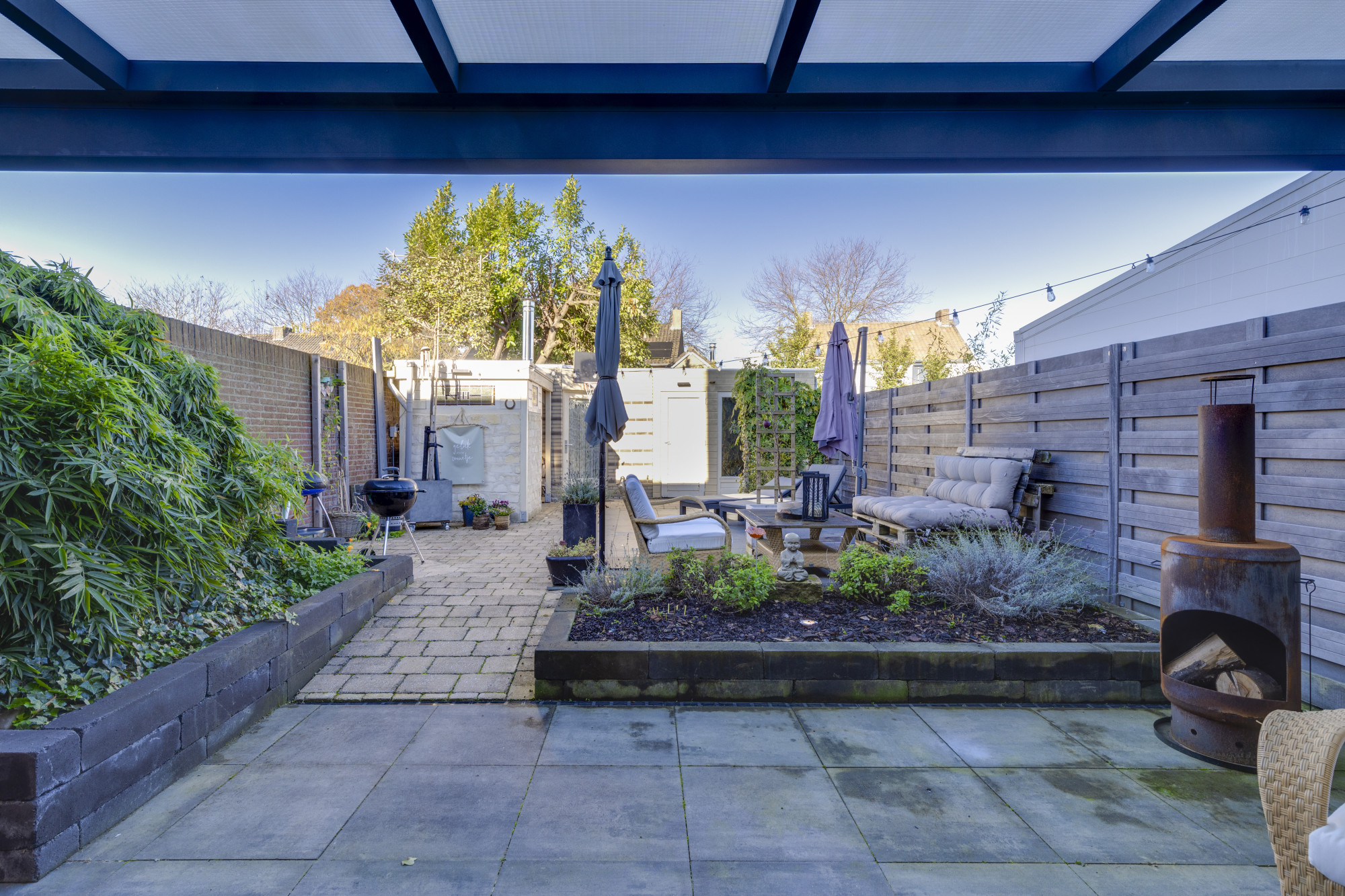 De fraai aangelegde stadstuin is een oase van rust en privacy, met een achteringang, fietsenberging en een multifunctionele ruimte van 22 m². Deze ruimte is deels verwarmd met vloerverwarming en een houtkachel, ideaal voor creatieve of zakelijke activiteiten. Via geïsoleerde serredeuren betreedt u een werkplaats voorzien van krachtstroom en dubbele openslaande deuren, die perfect aansluit bij de mogelijkheden van de woning als werkplek aan huis.