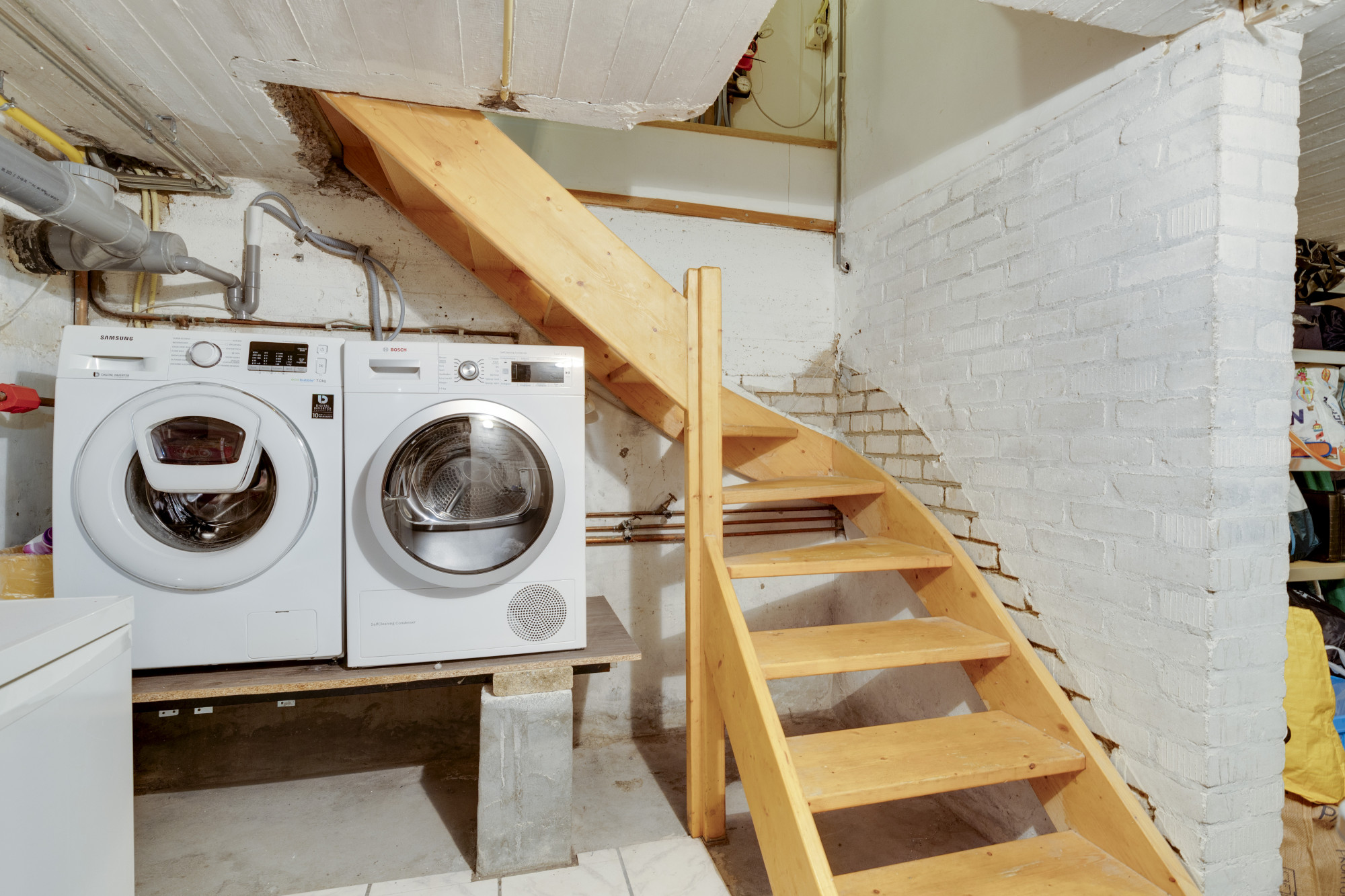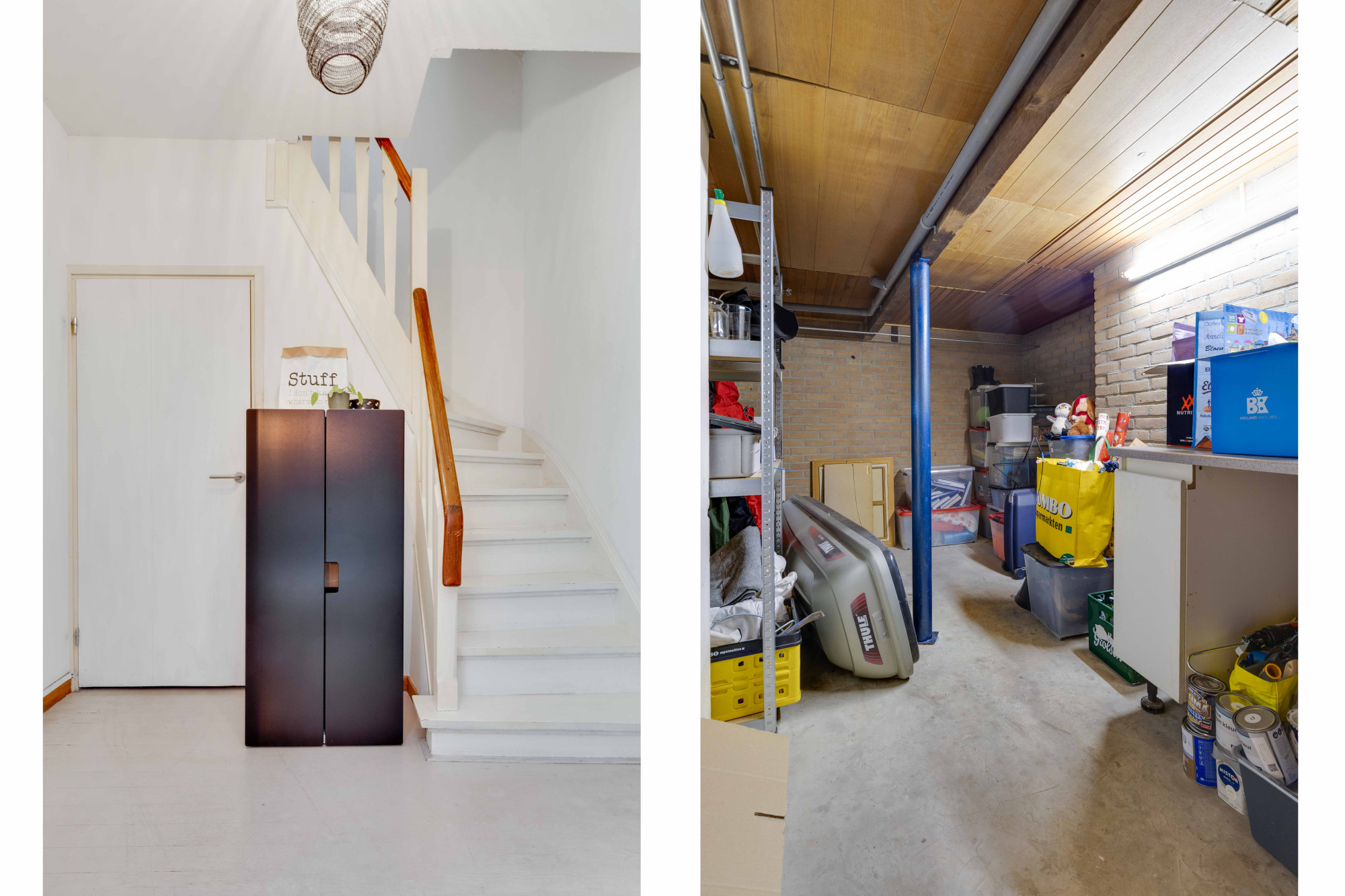 Het souterrain biedt twee ruime en droge kelders (7,5 m² en 6 m²), ideaal voor opslag en voorzien van een wasmachineaansluiting.