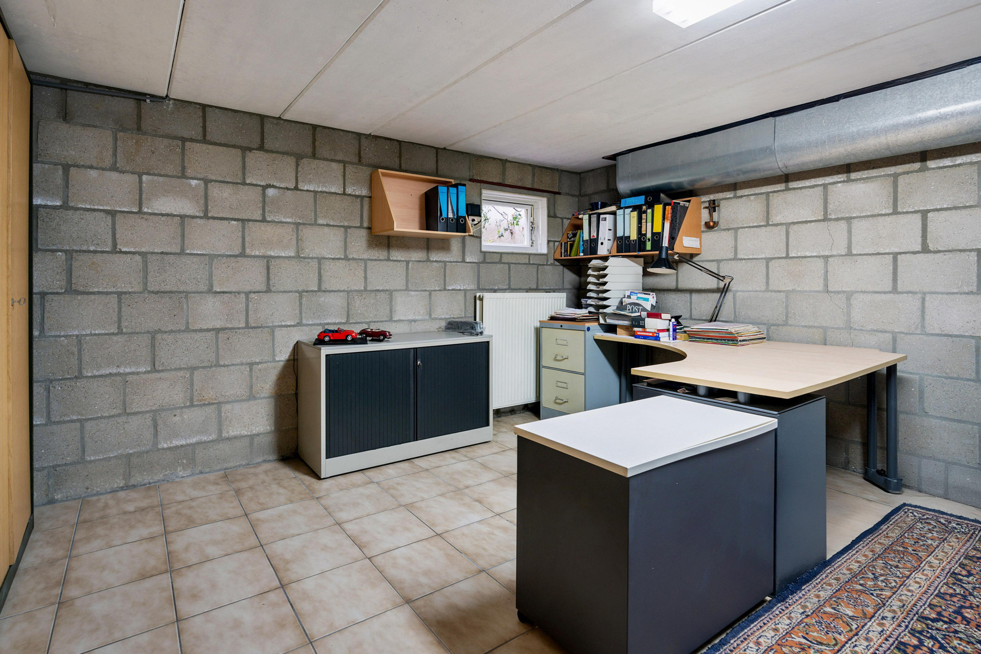 Kantoor c.q. hobbyruimte(4.87mx4.38m) met tegelvloer.