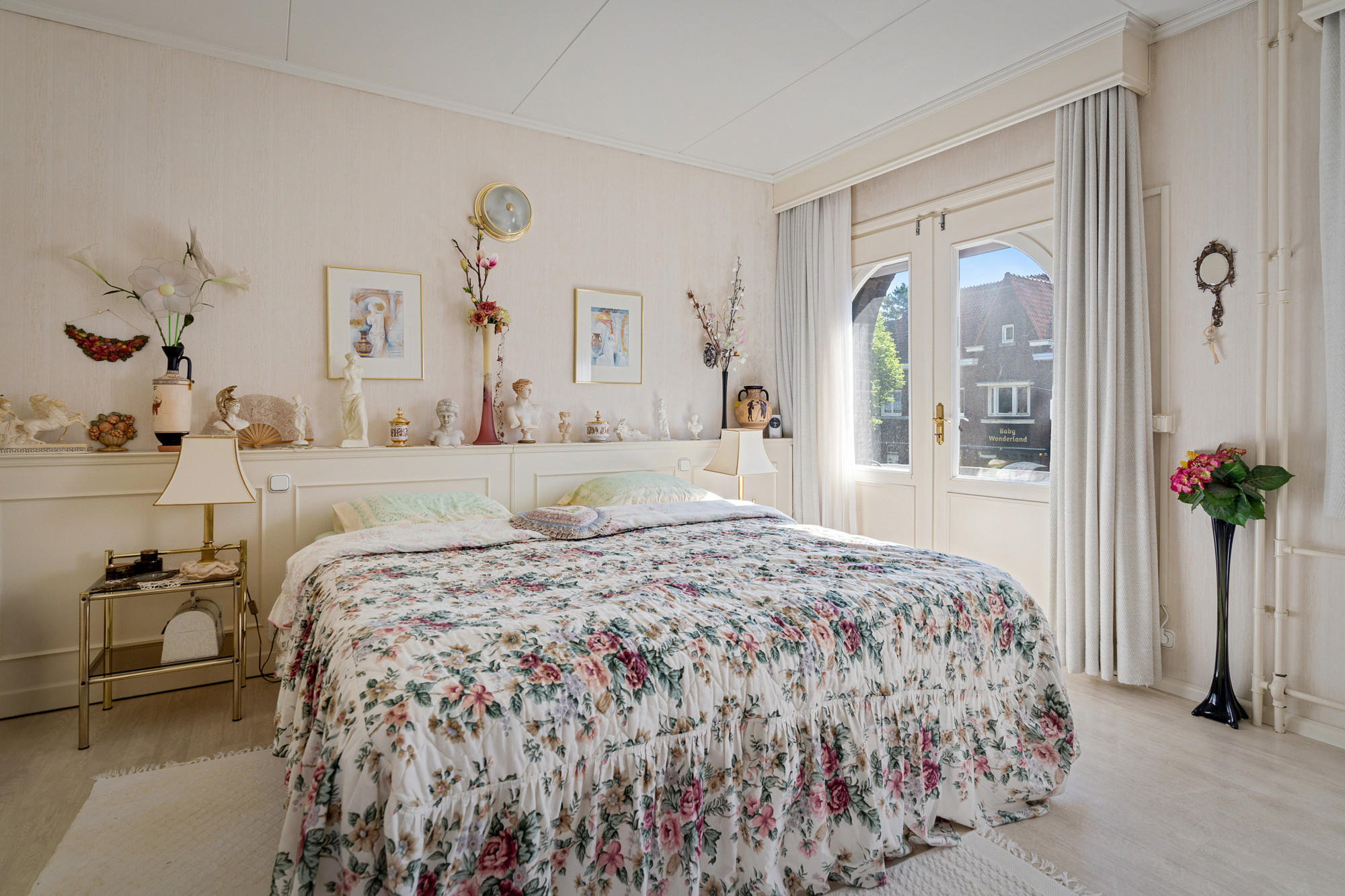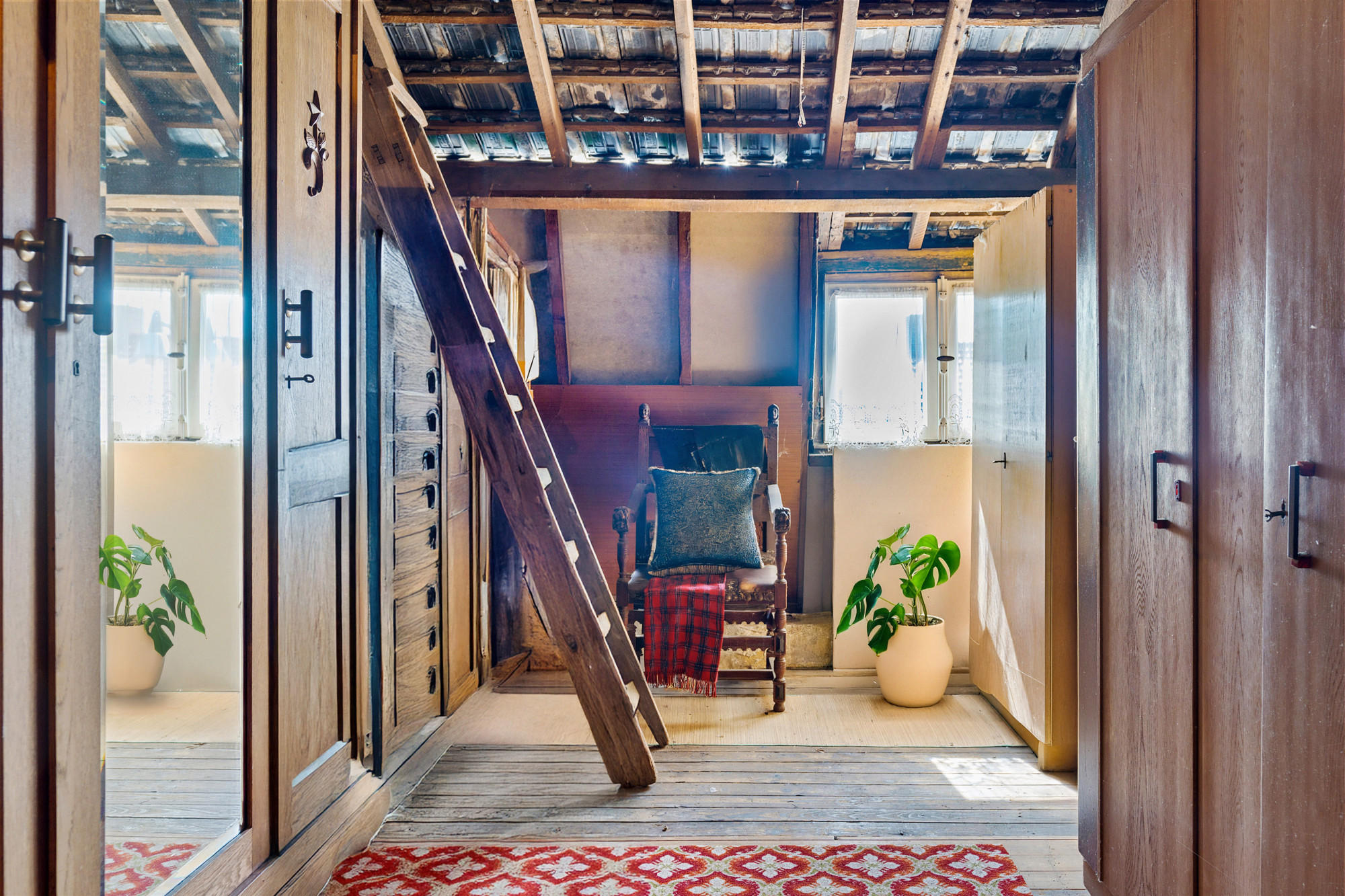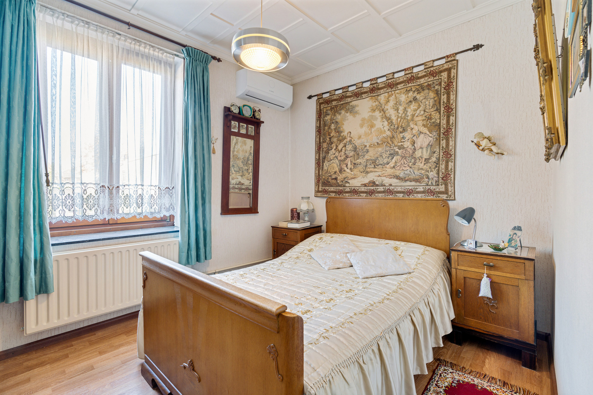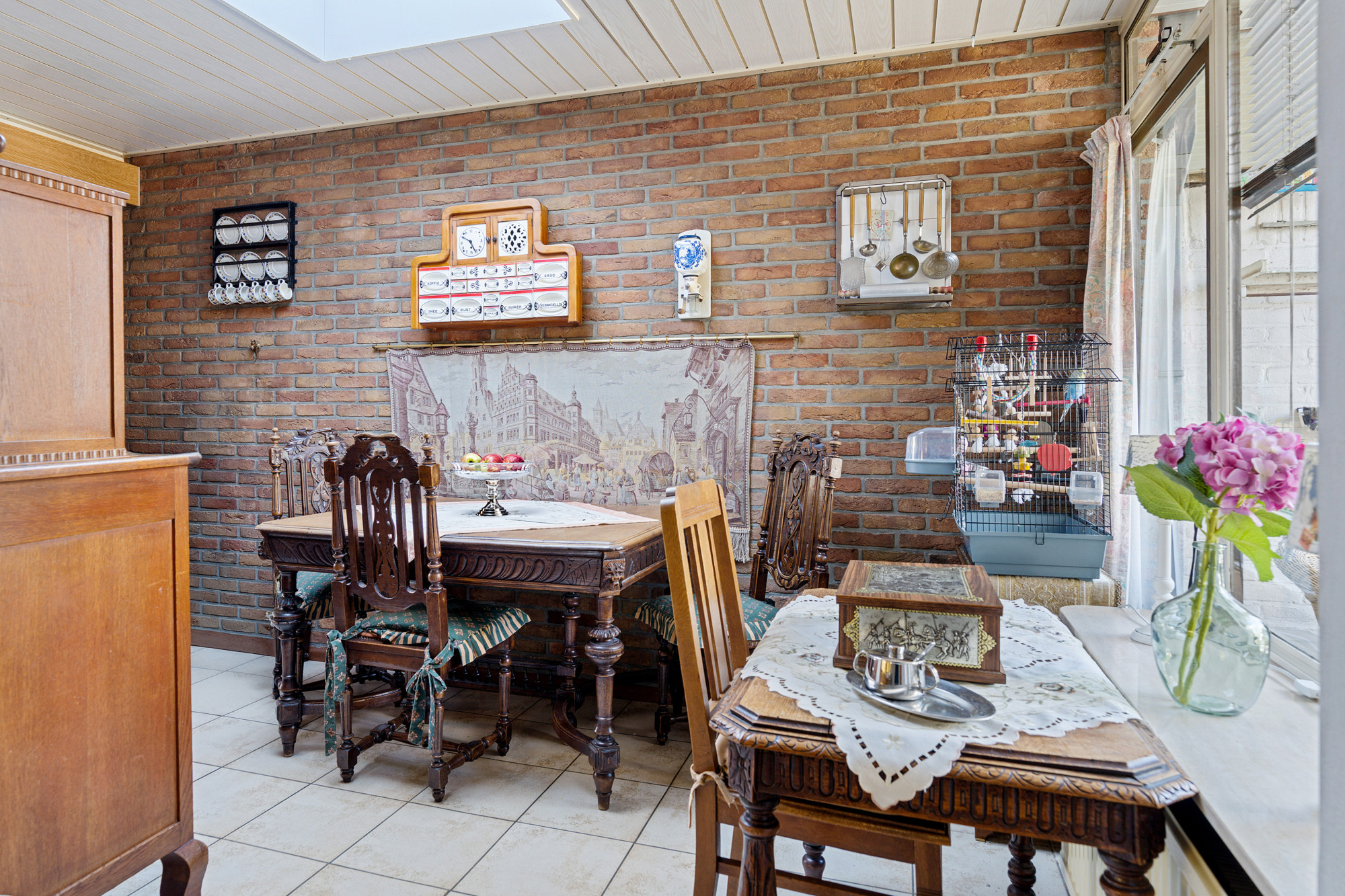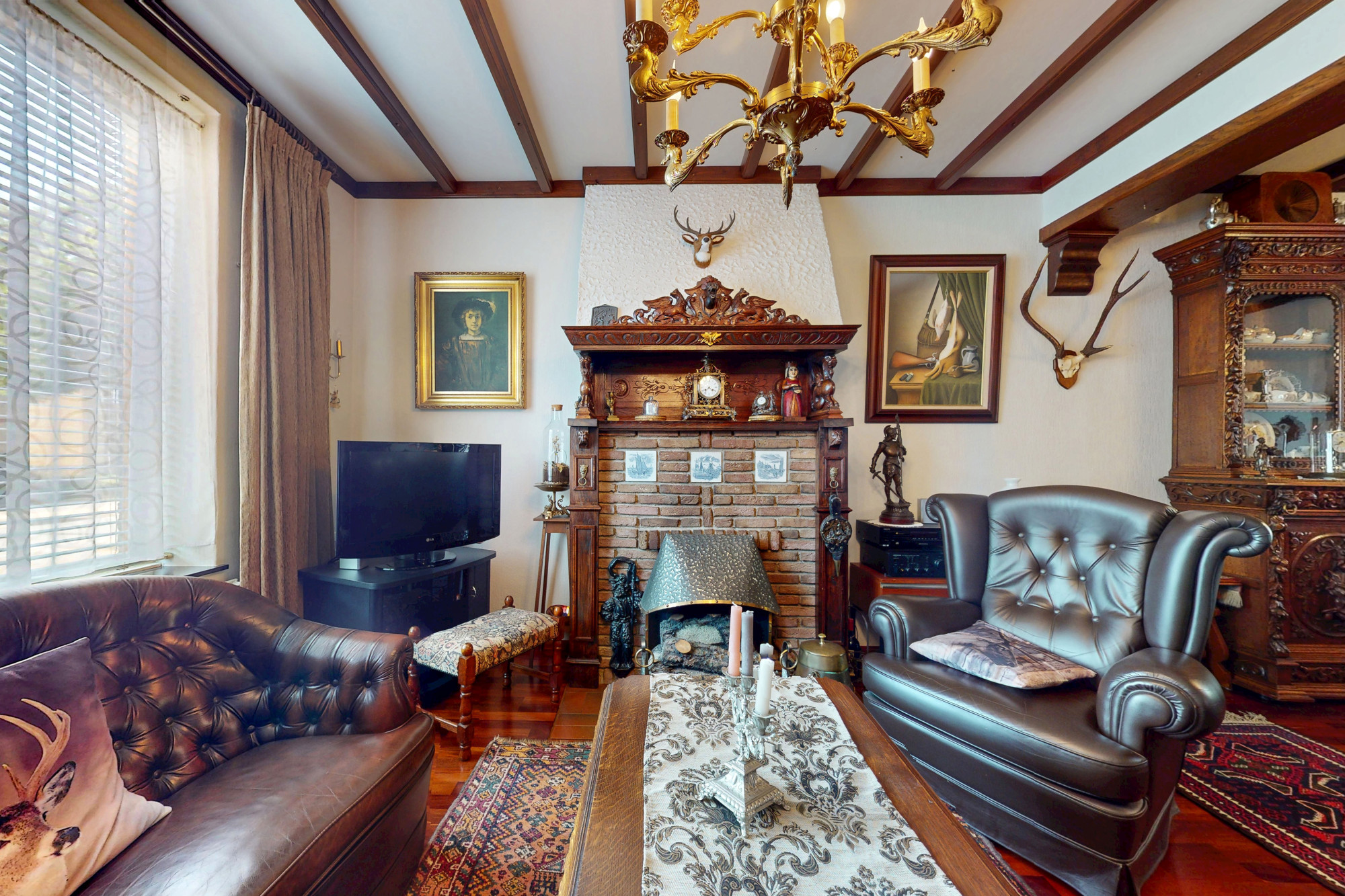 De mahoniehouten binnendeuren door het hele huis versterken de warme en klassieke sfeer.