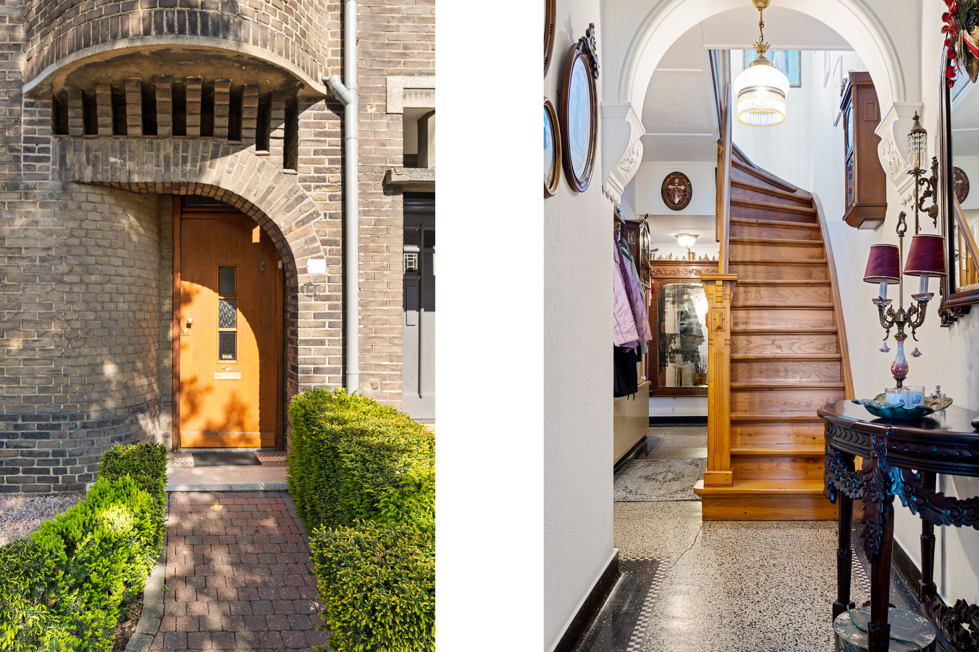 - Authentieke details zoals terrazzo vloer, Olmenhouten trap en mahoniehouten deuren;