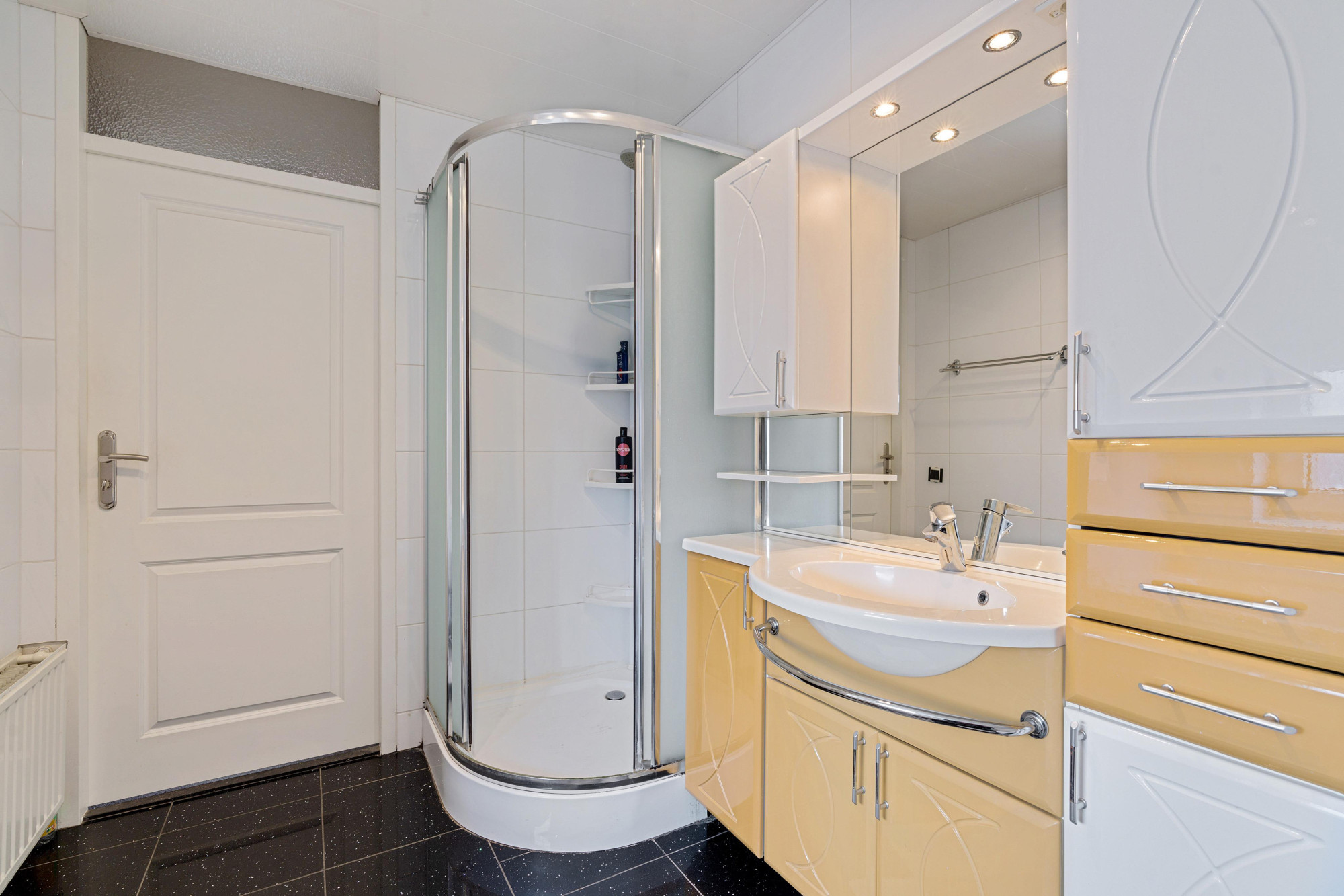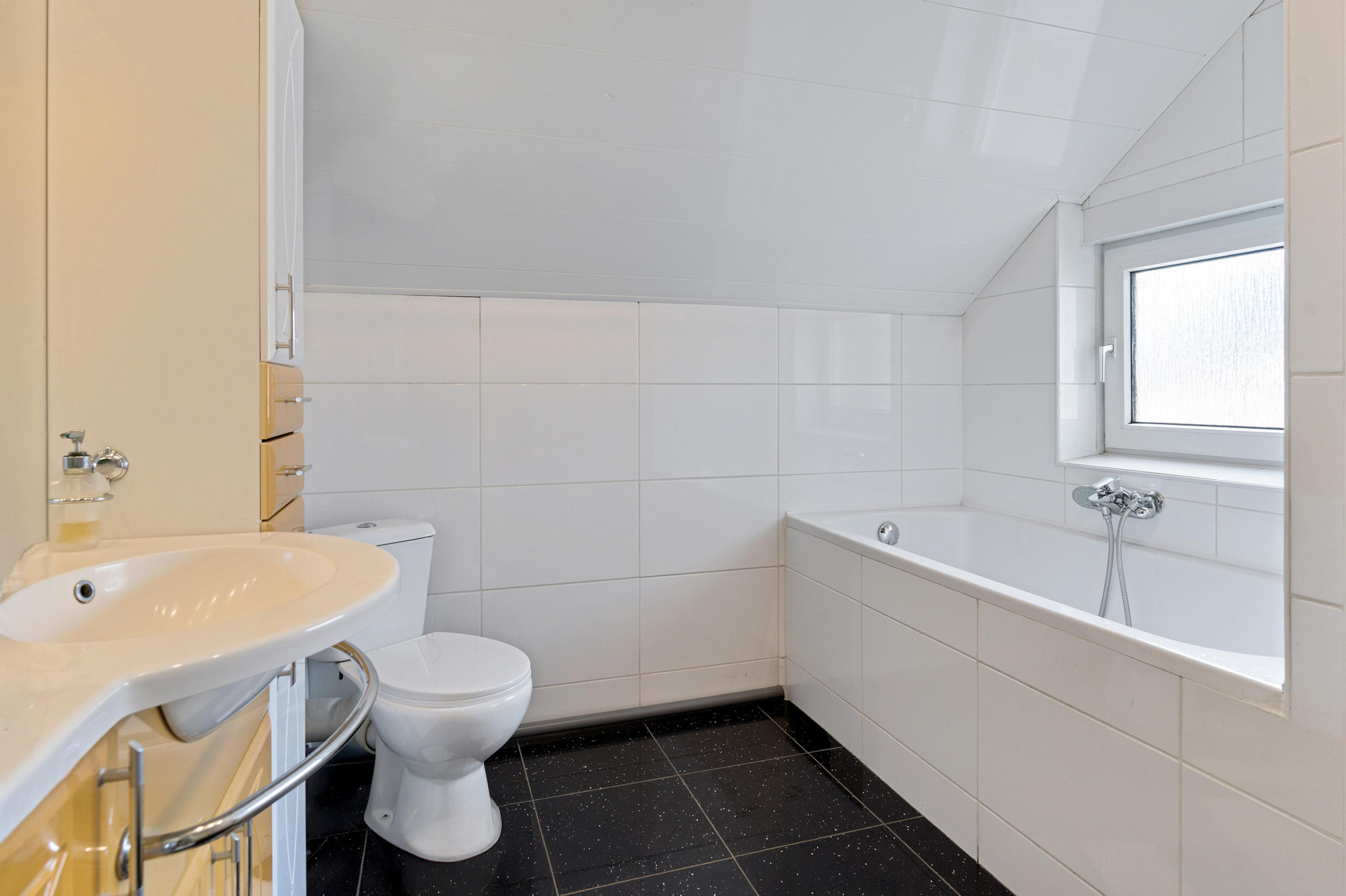 Volledig betegelde badkamer(3.01mx2.50m) met aparte douche, ligbad, 2e toilet en vaste wastafel, aansluiting wasmachine en droger.